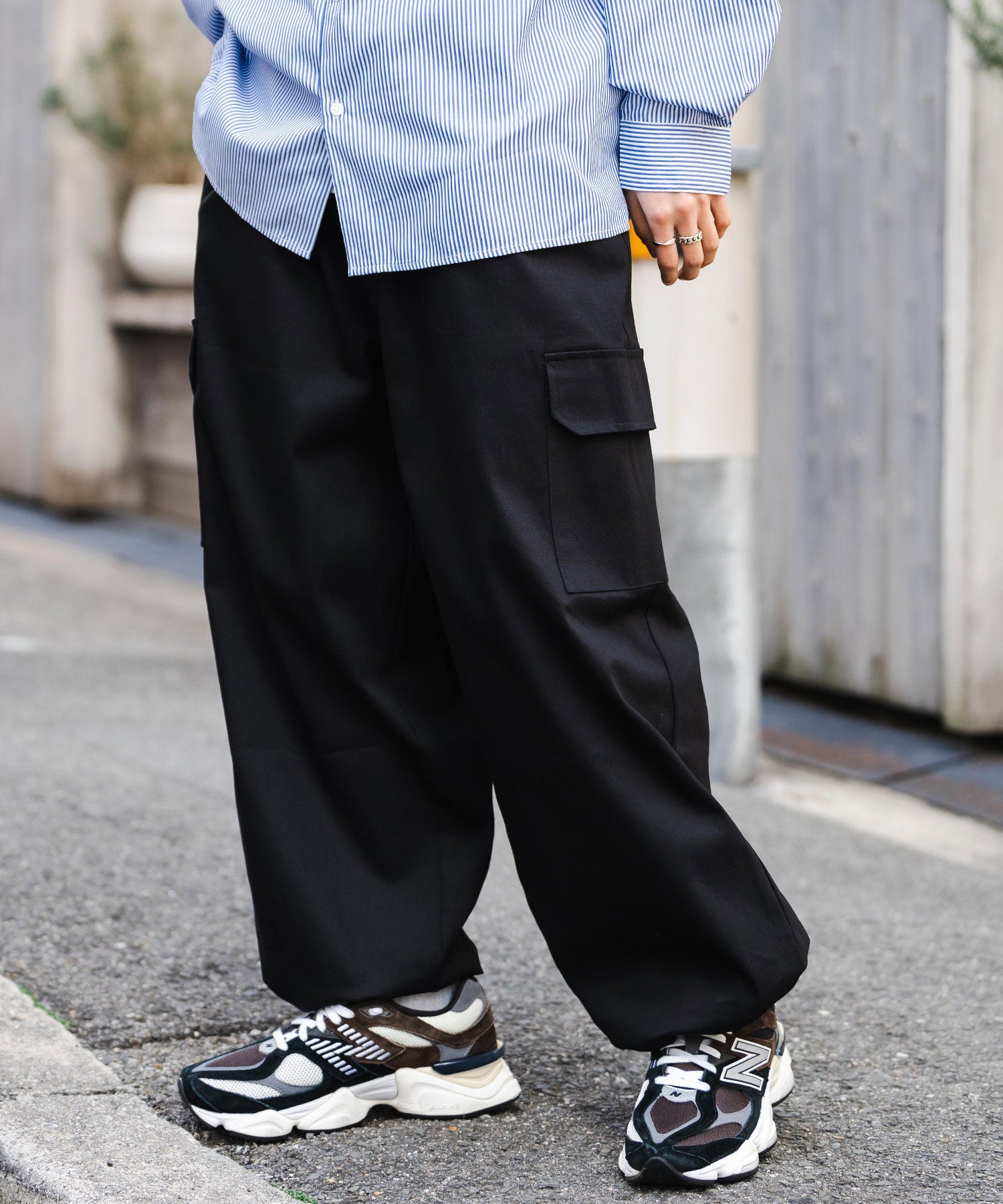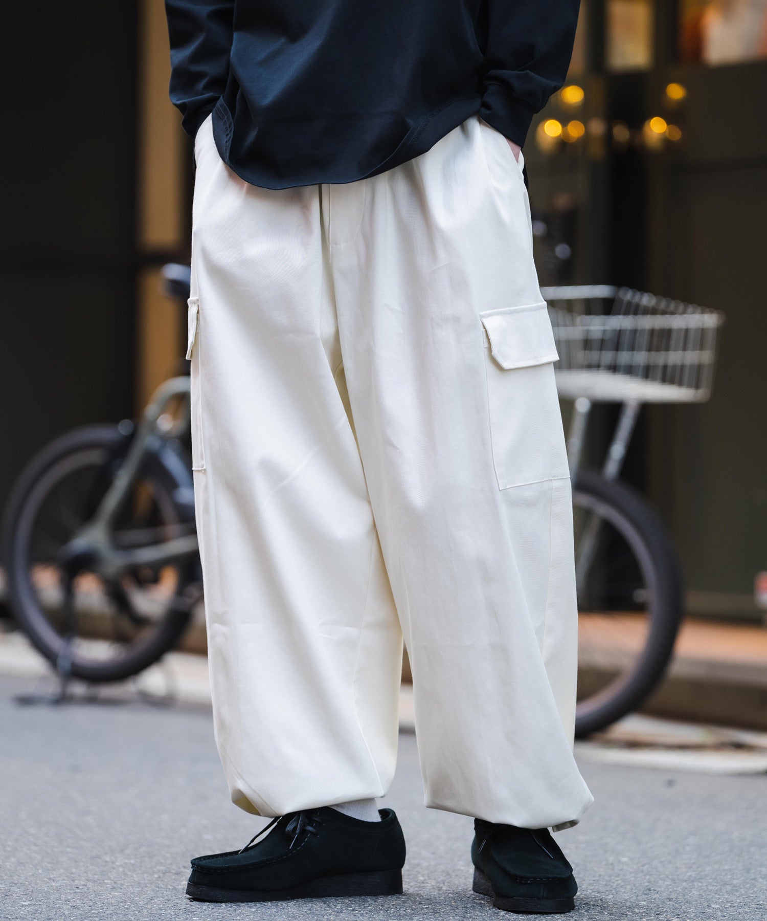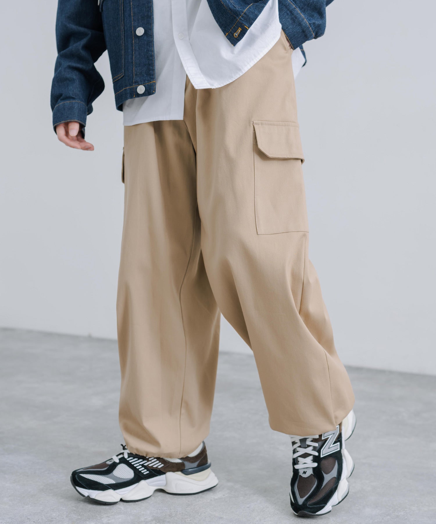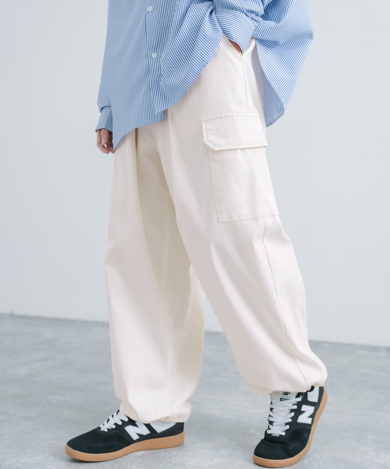 そのままだと、ストンと綺麗なシルエットを楽しめ、裾を絞ると程良いバルーンシルエットとしても楽しめます。