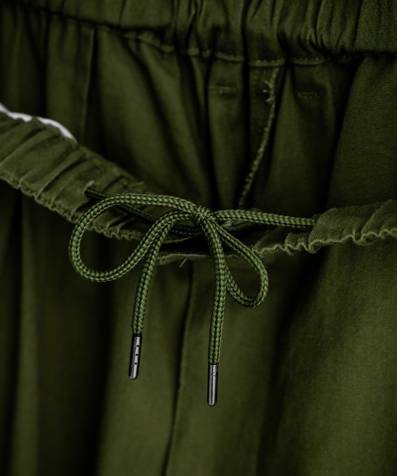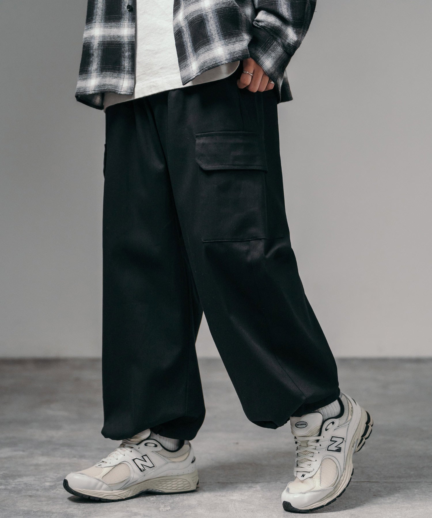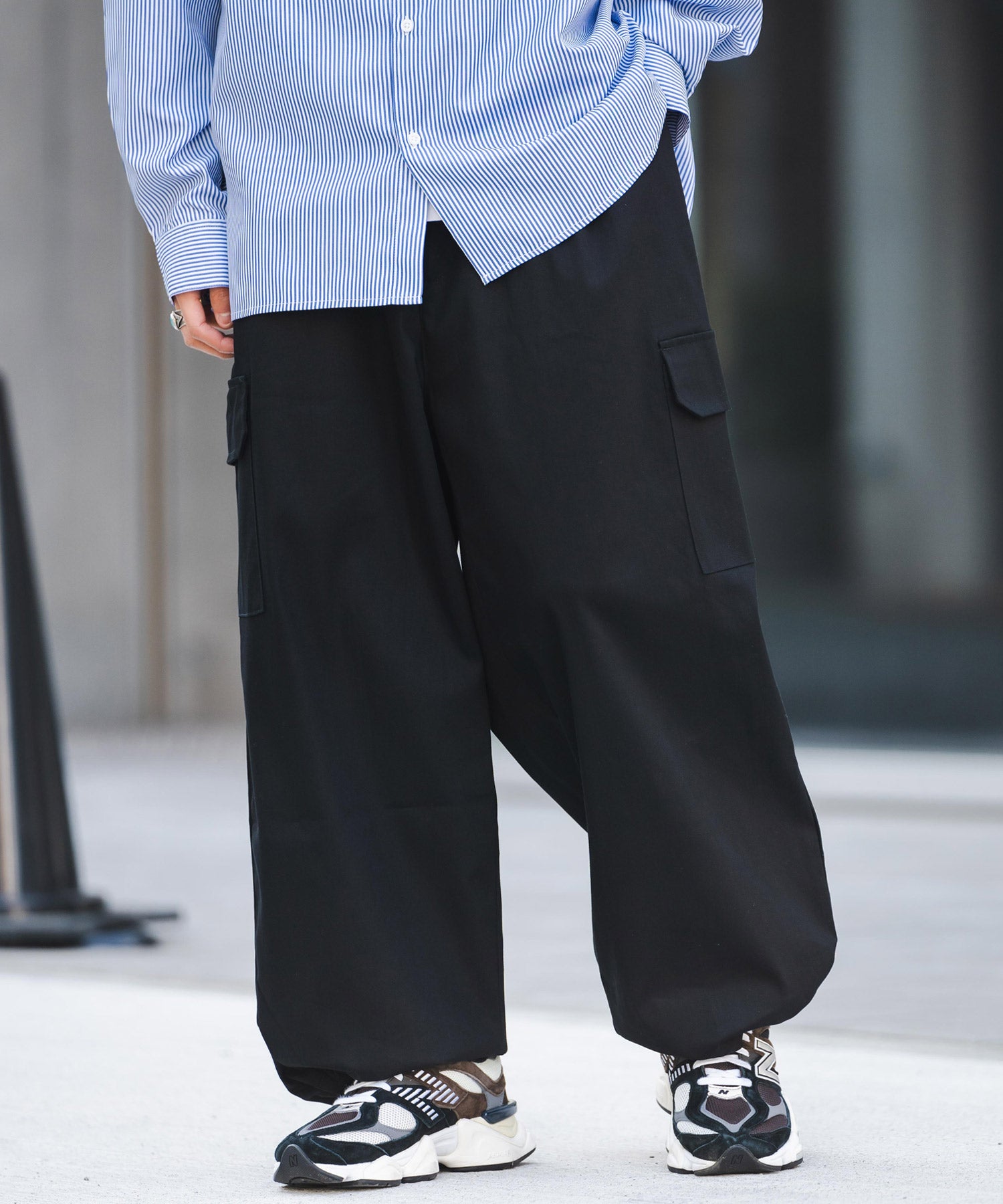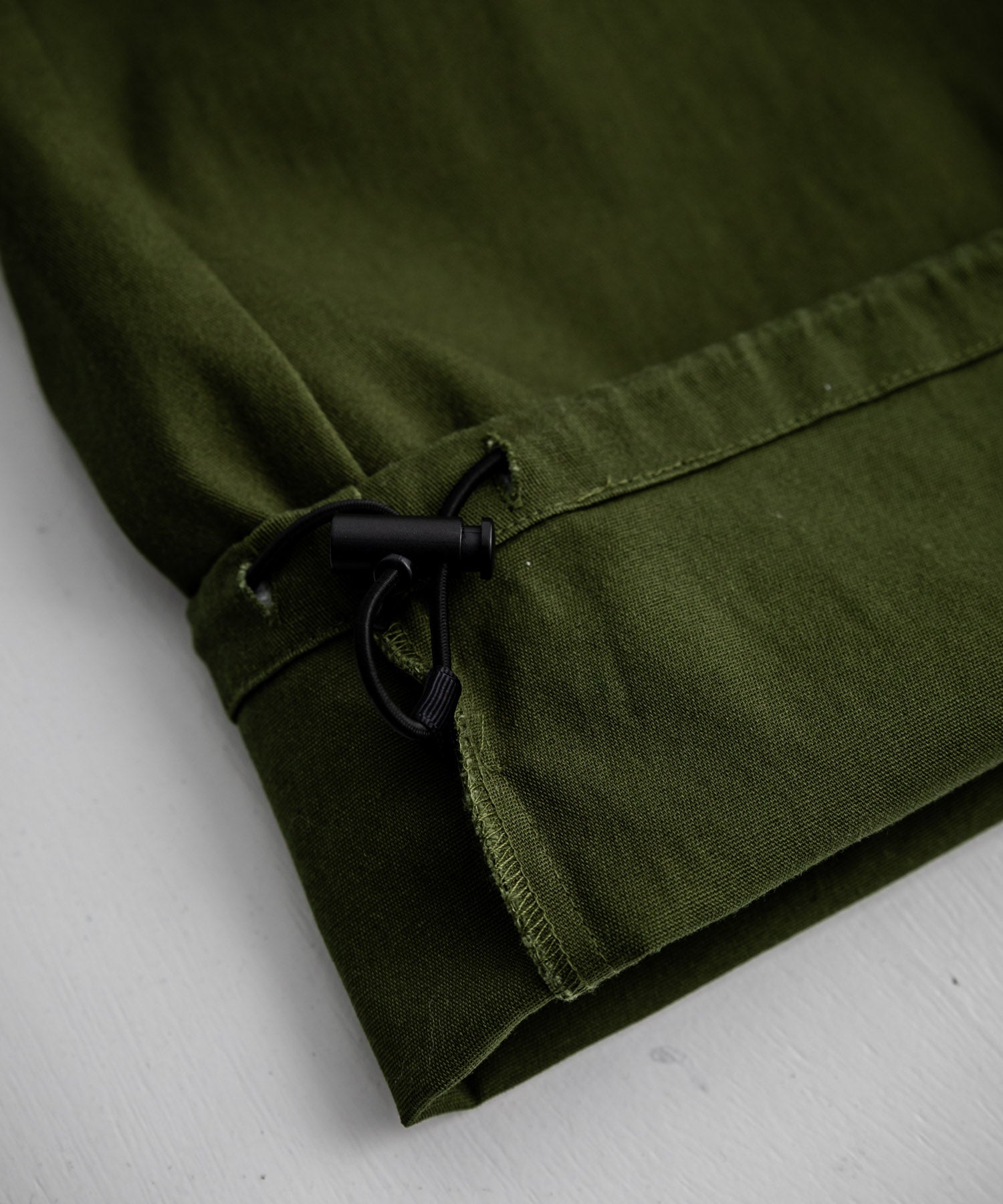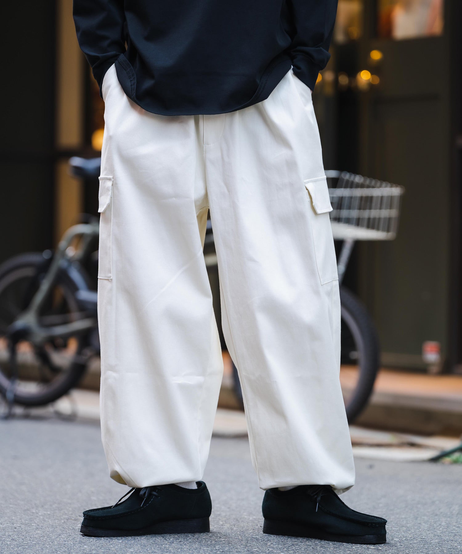 そのままだと、ストンと綺麗なシルエットを楽しめ、裾を絞ると程良いバルーンシルエットとしても楽しめます。