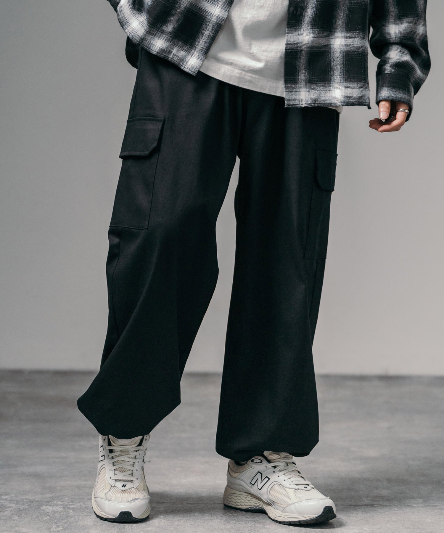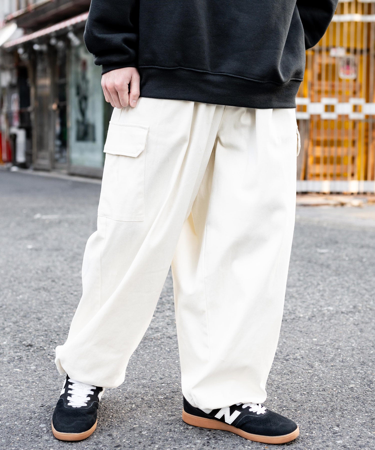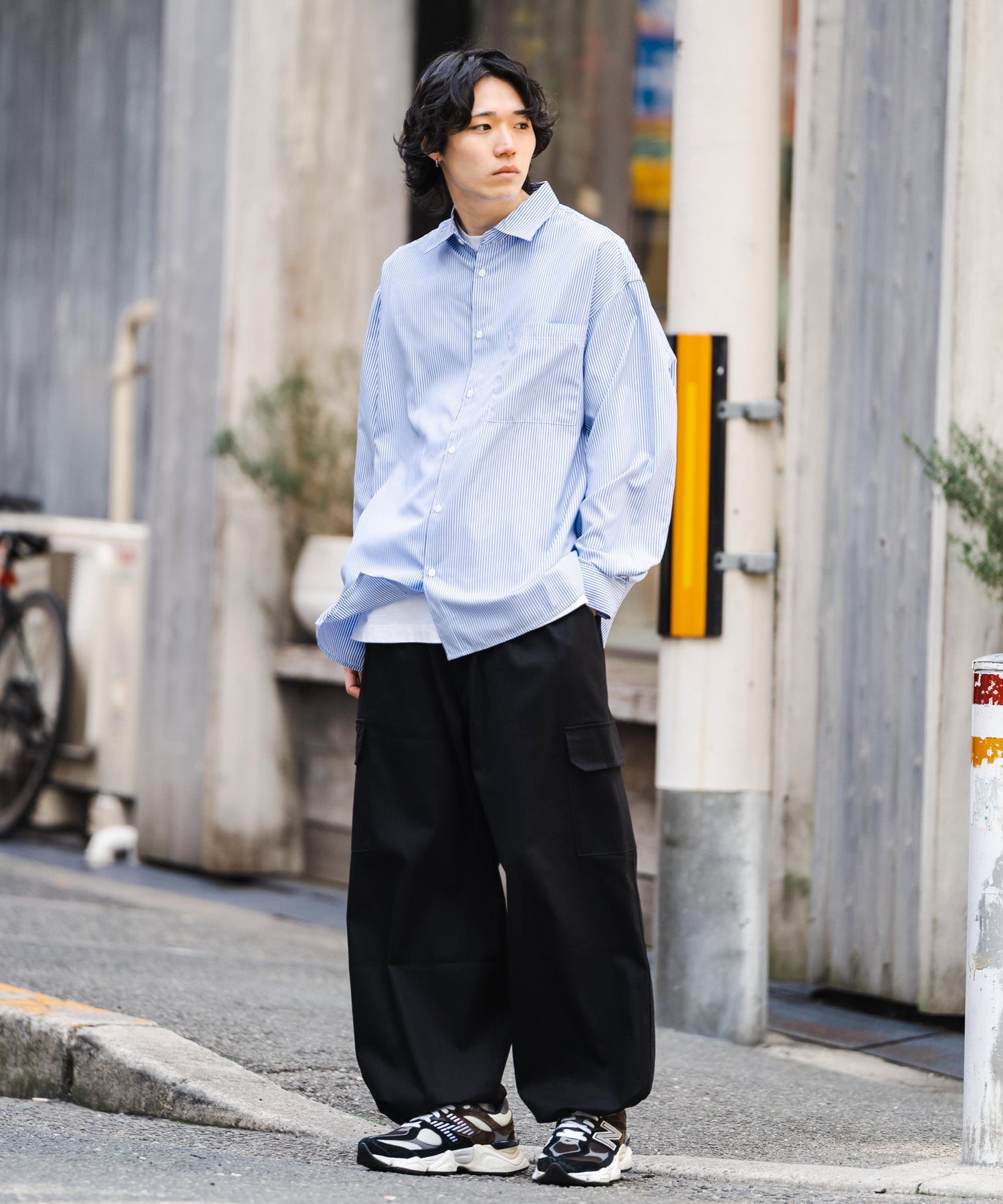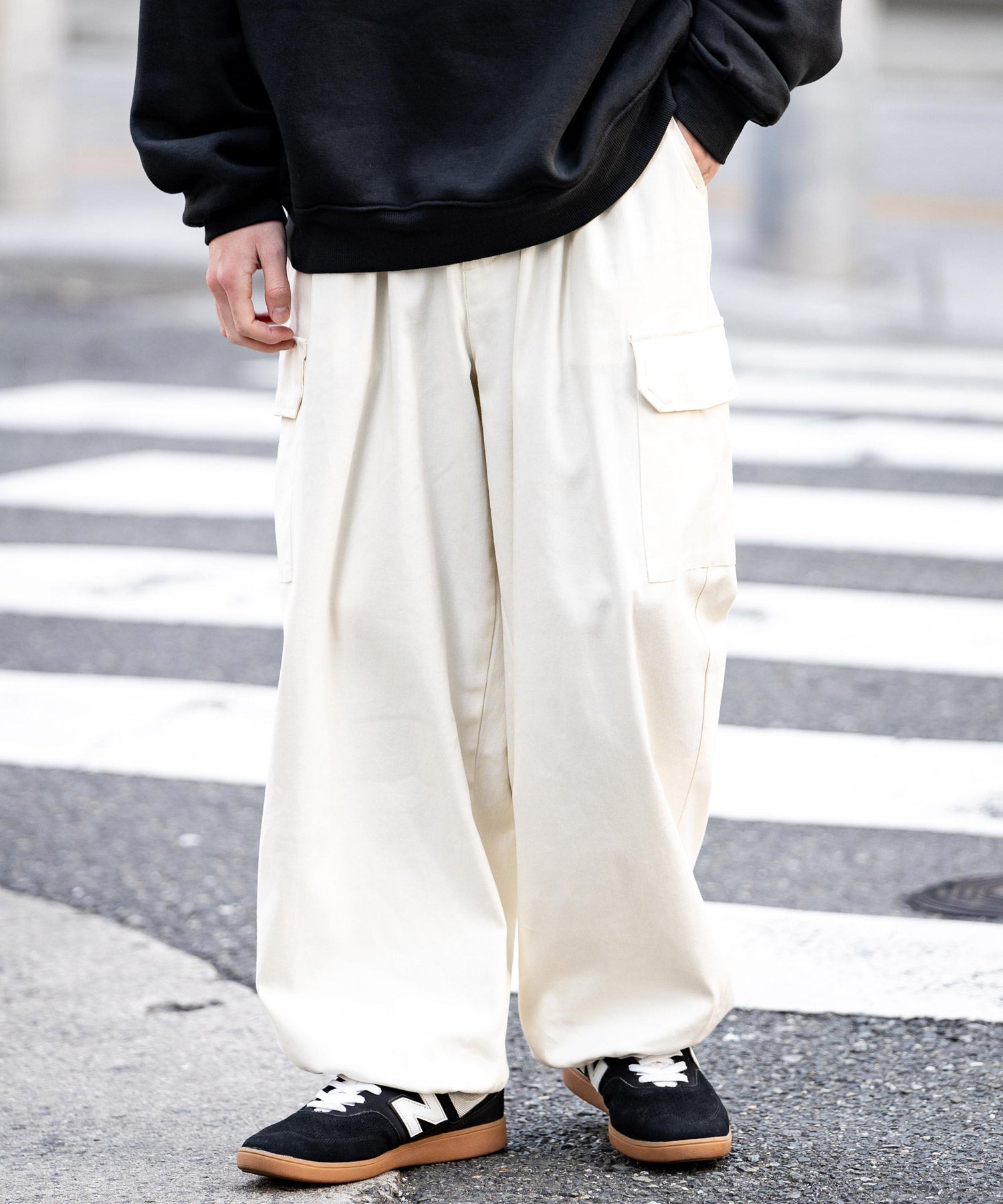 そのままだと、ストンと綺麗なシルエットを楽しめ、裾を絞ると程良いバルーンシルエットとしても楽しめます。