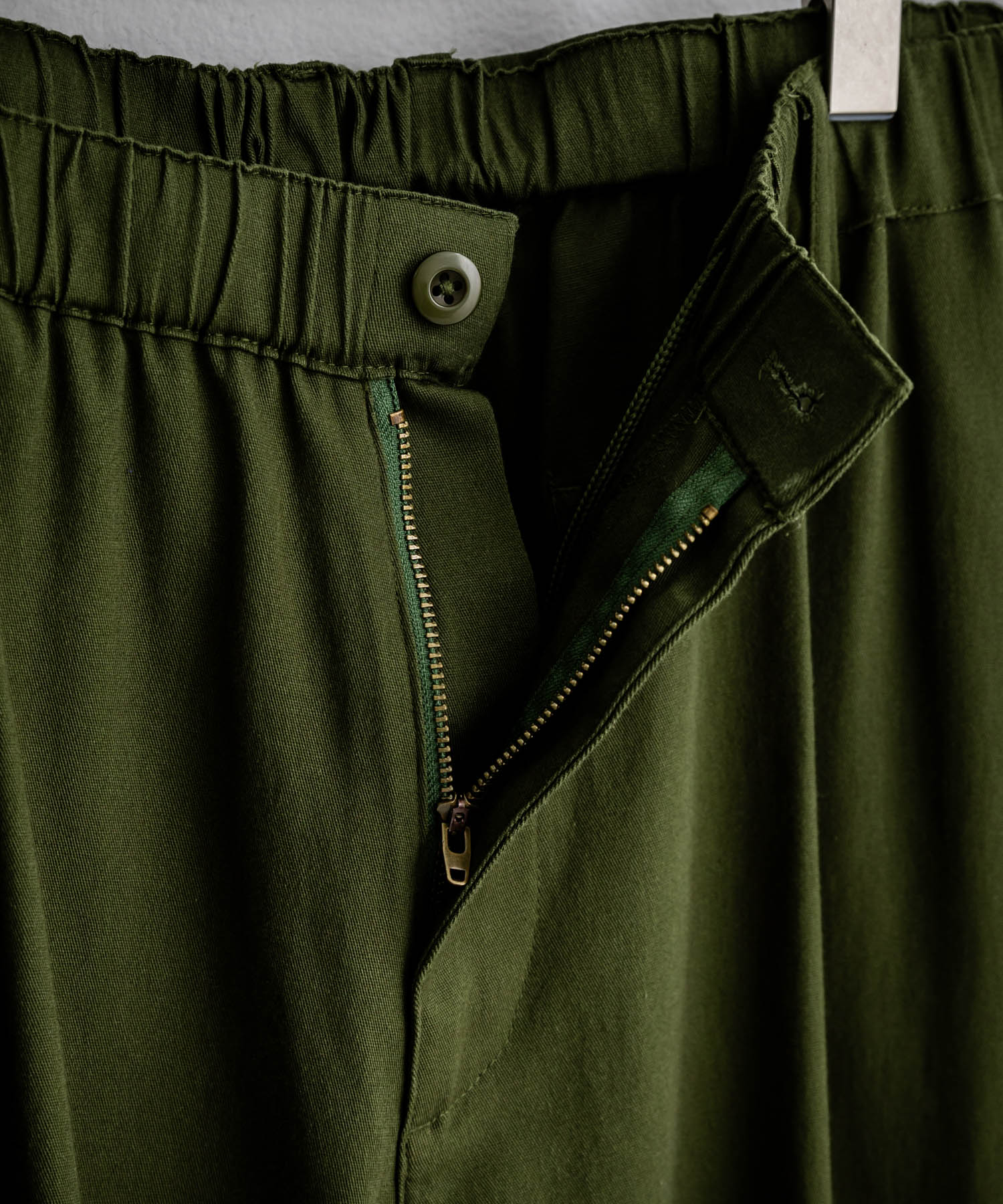 ウエストはゴム仕様で、フロントはボタンとジッパーフライデザインです。