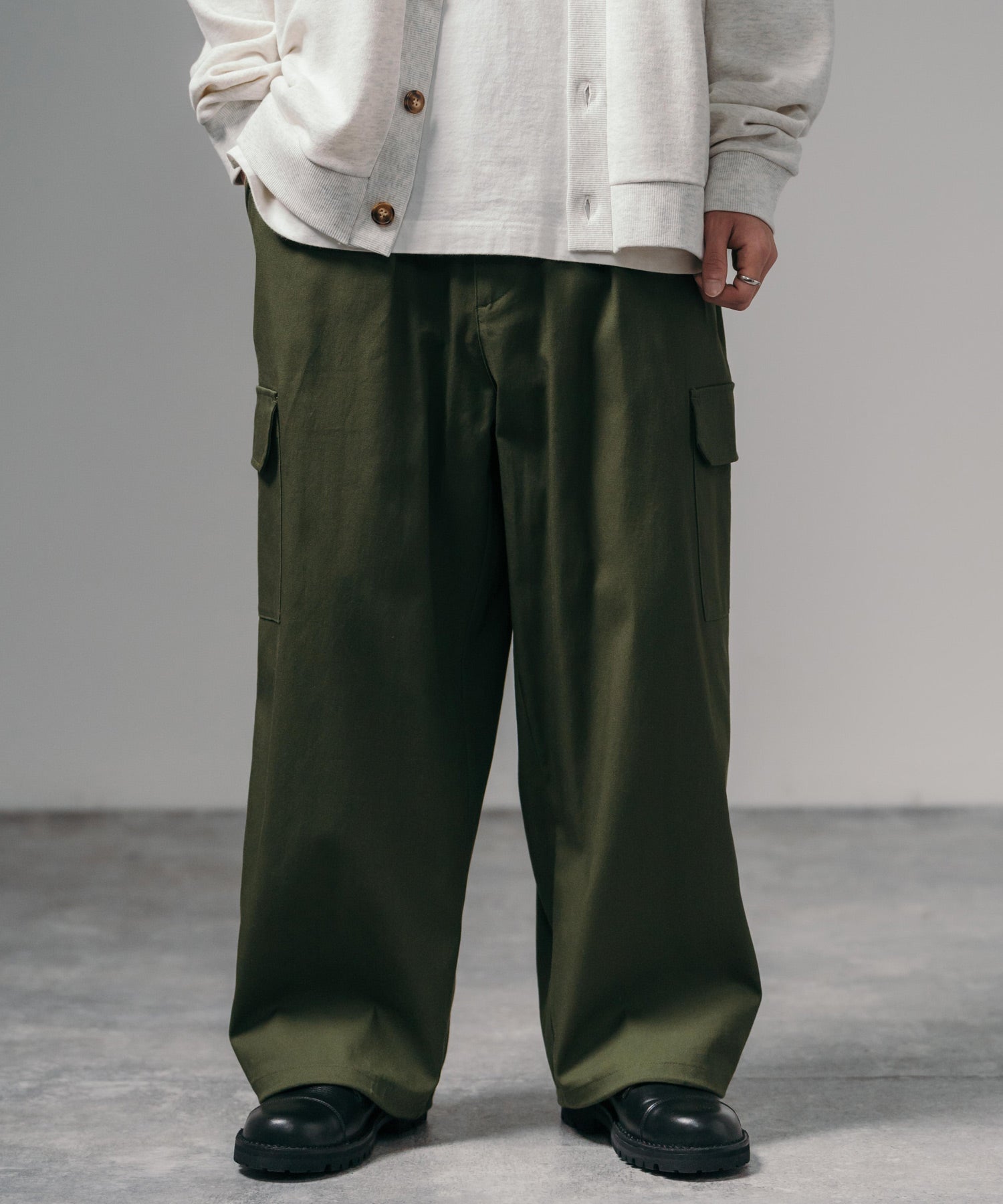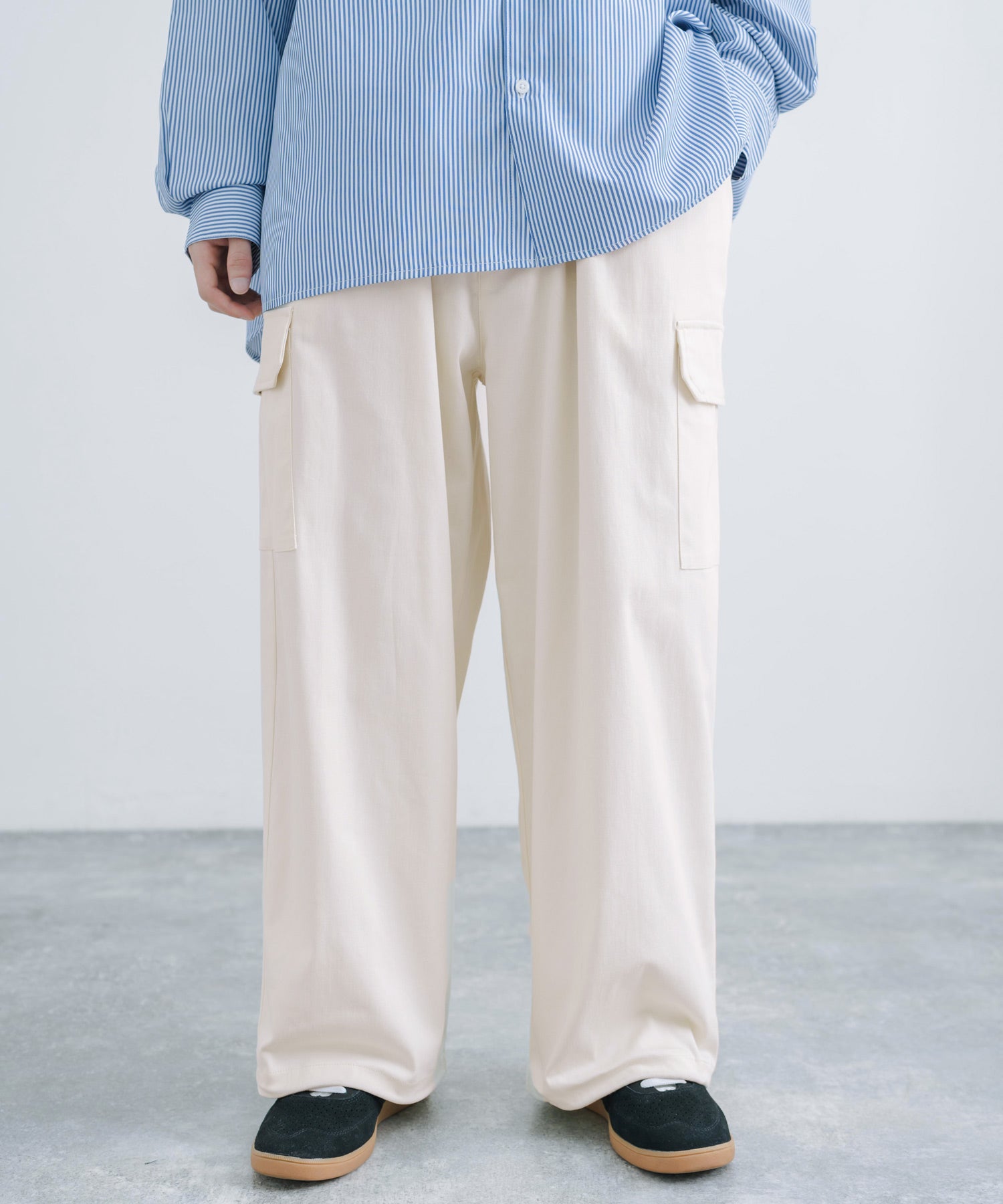 カーゴパンツ定番のフラップポケットをはじめ、前後で合計6つのポケットが配置されています。