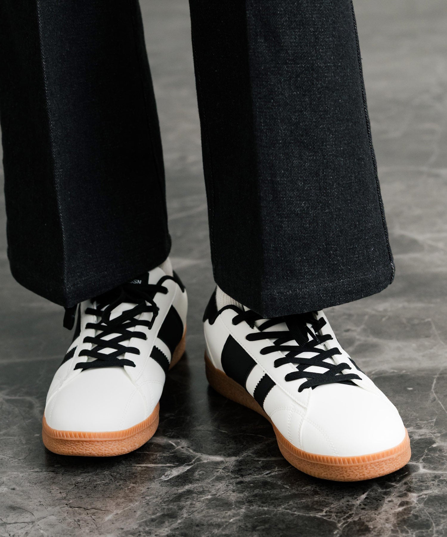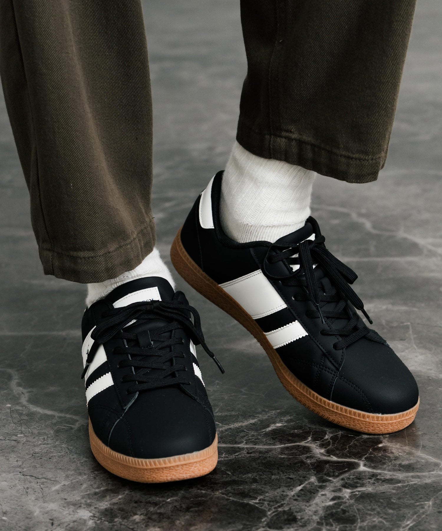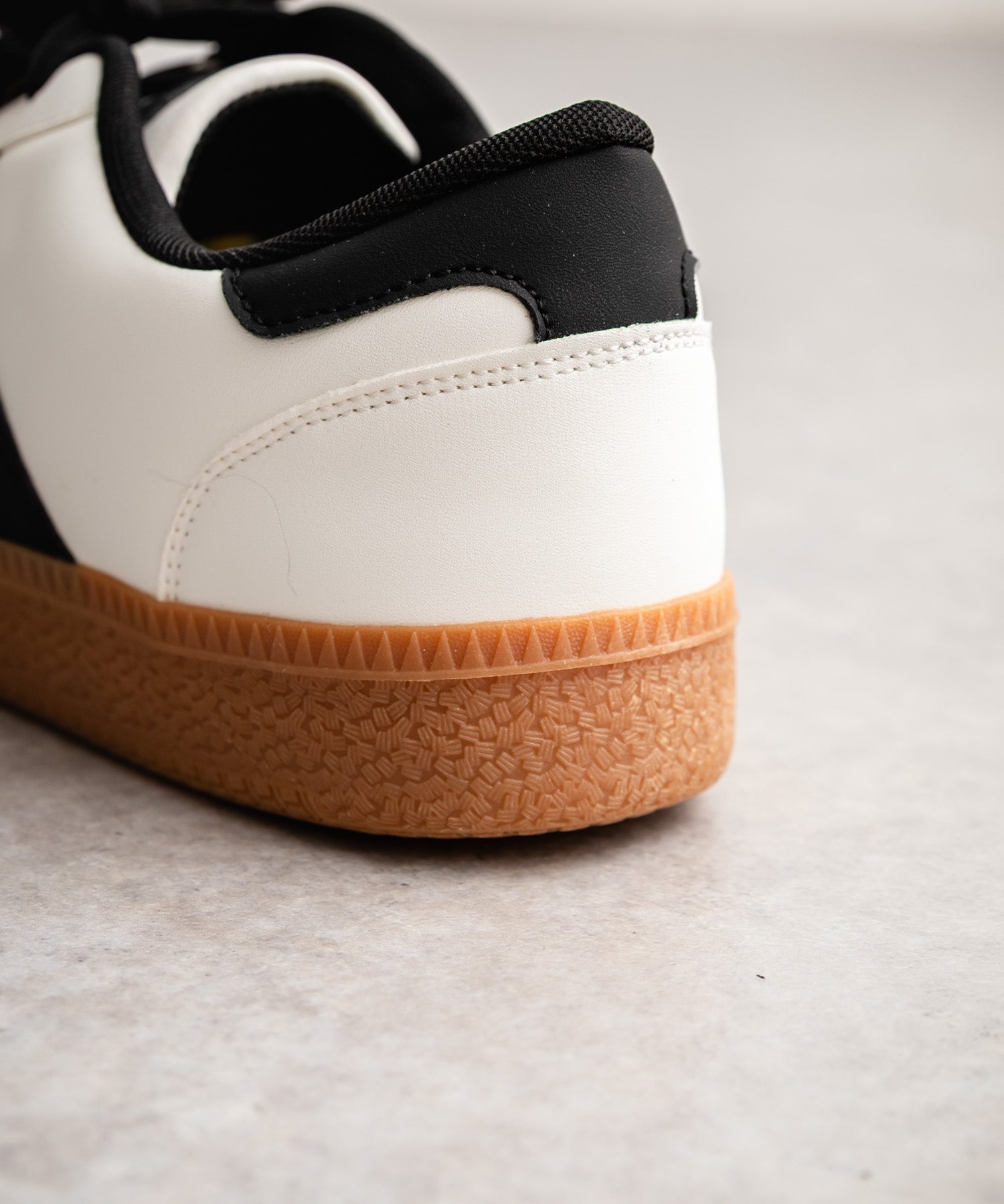 アッパーはマットなフェイクレザーで、絶妙な風合いで本革の質感を再現。
