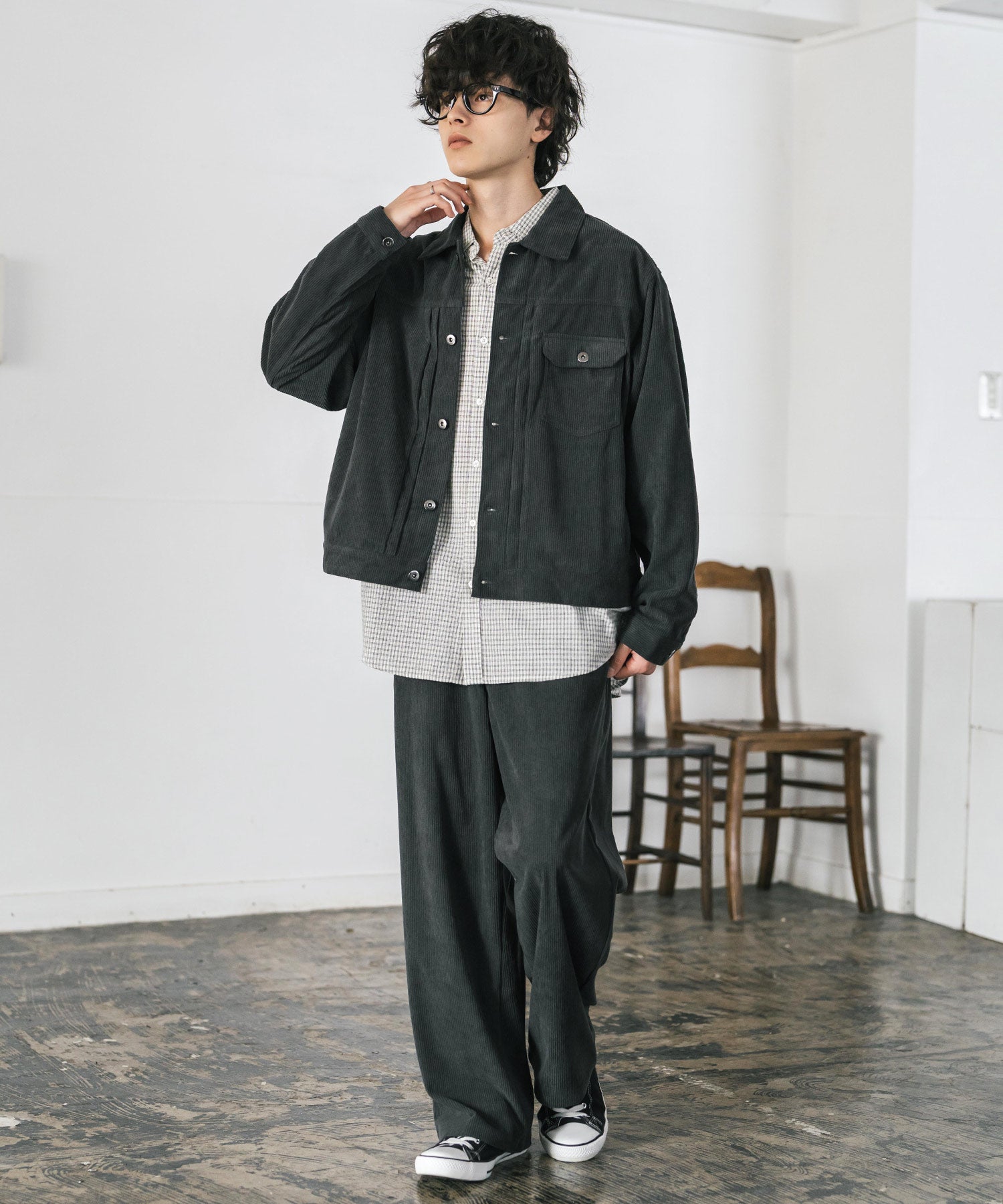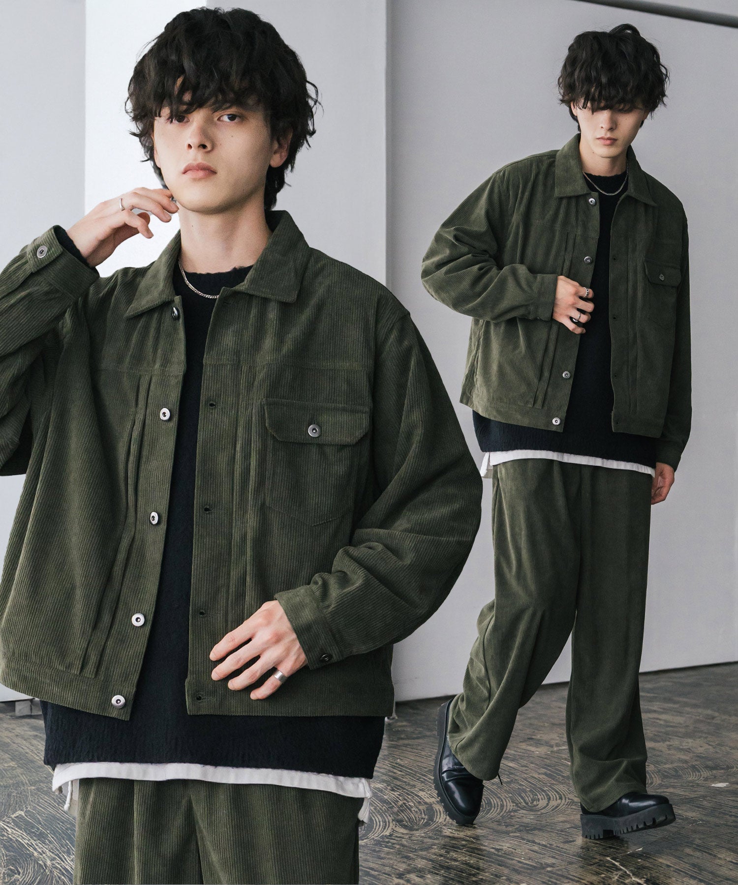 コーデュロイセットアップ 1stショートジャケット/短丈ブルゾン&イージーワイドパンツ 14688