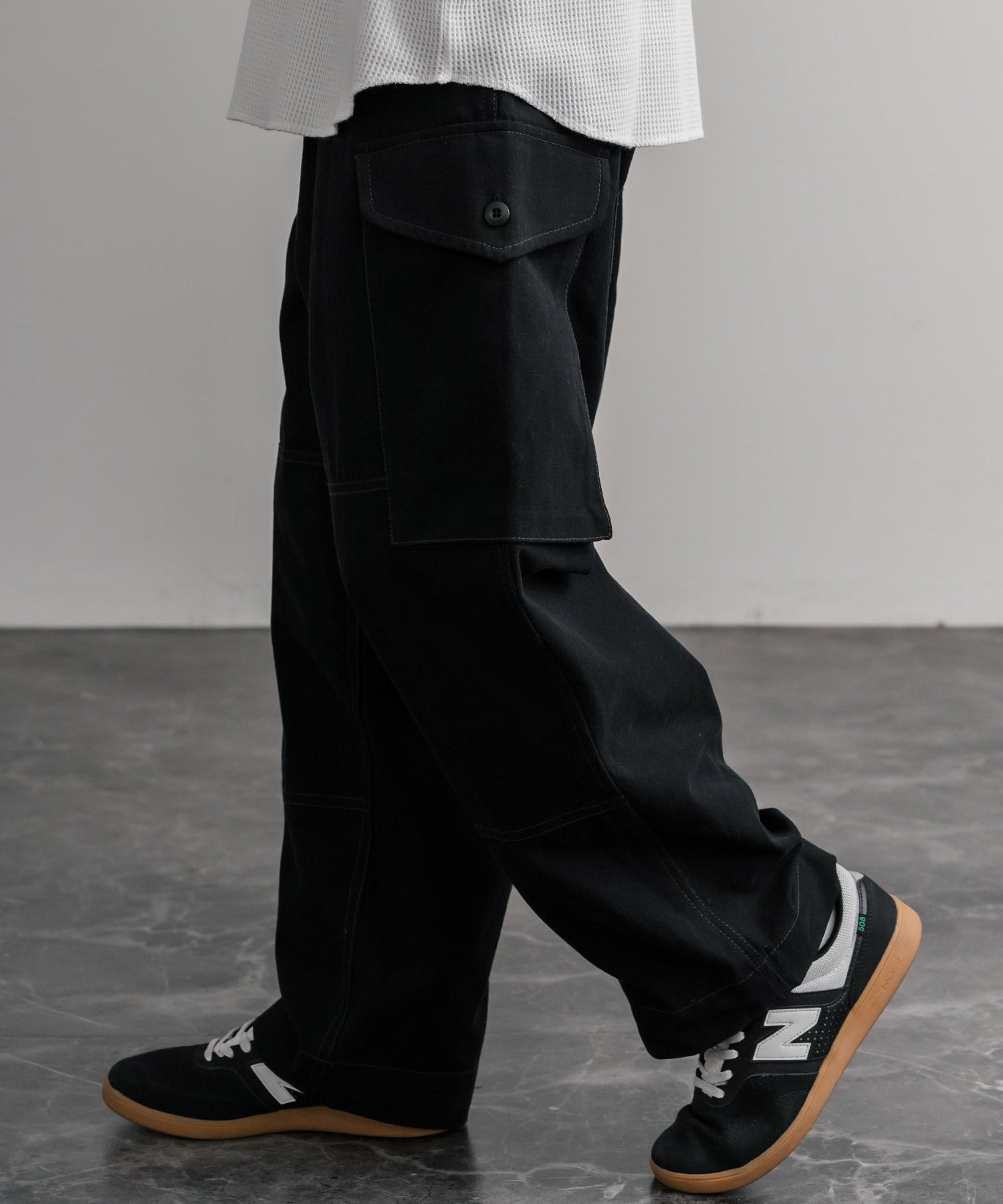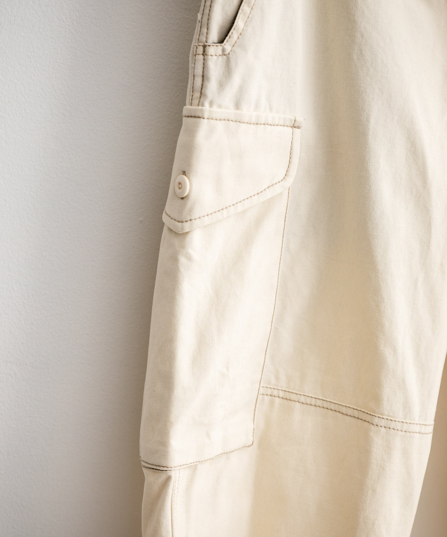 カーゴパンツ定番のフラップポケット付きで収納力に優れています。