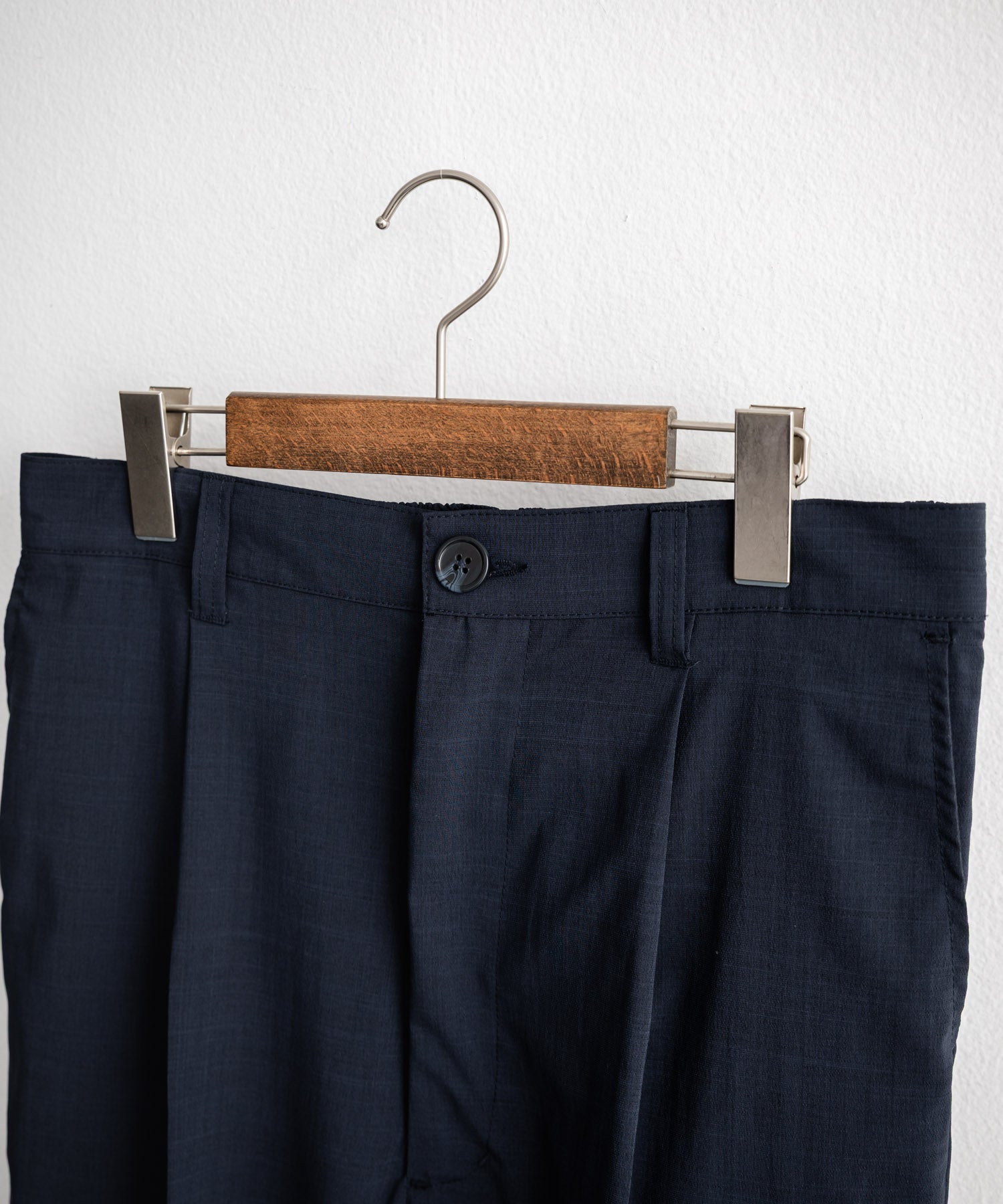 センタープレスが上品さを演出しカジュアル過ぎないスタイルに。