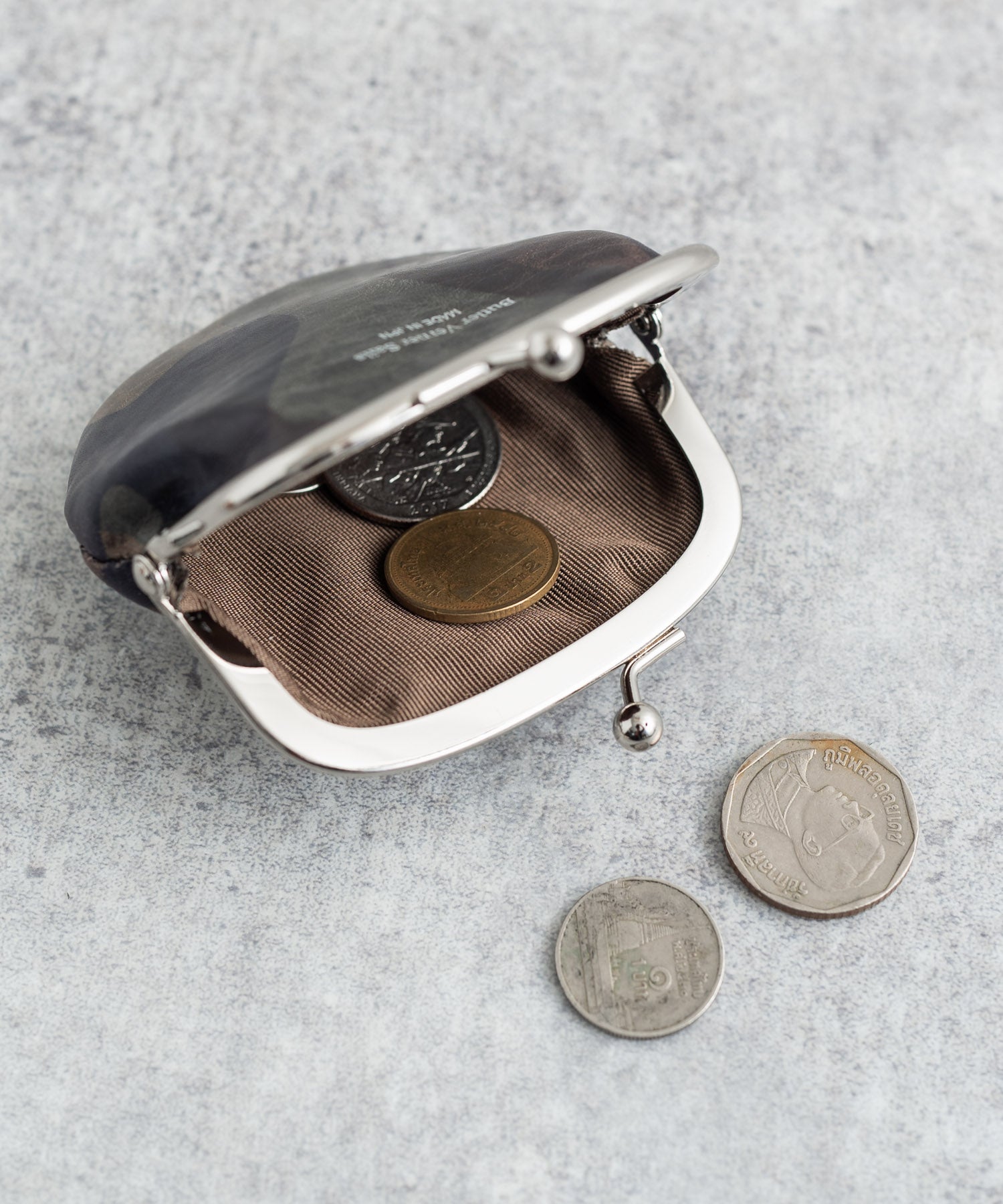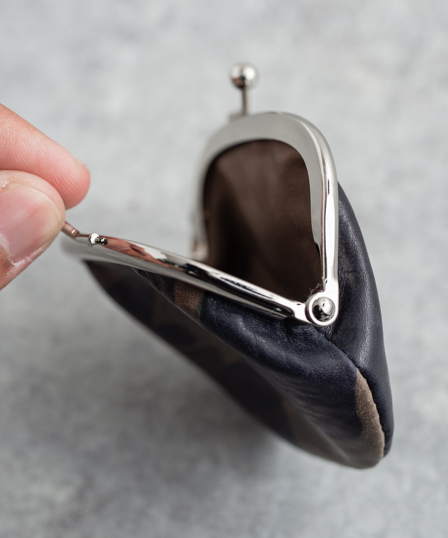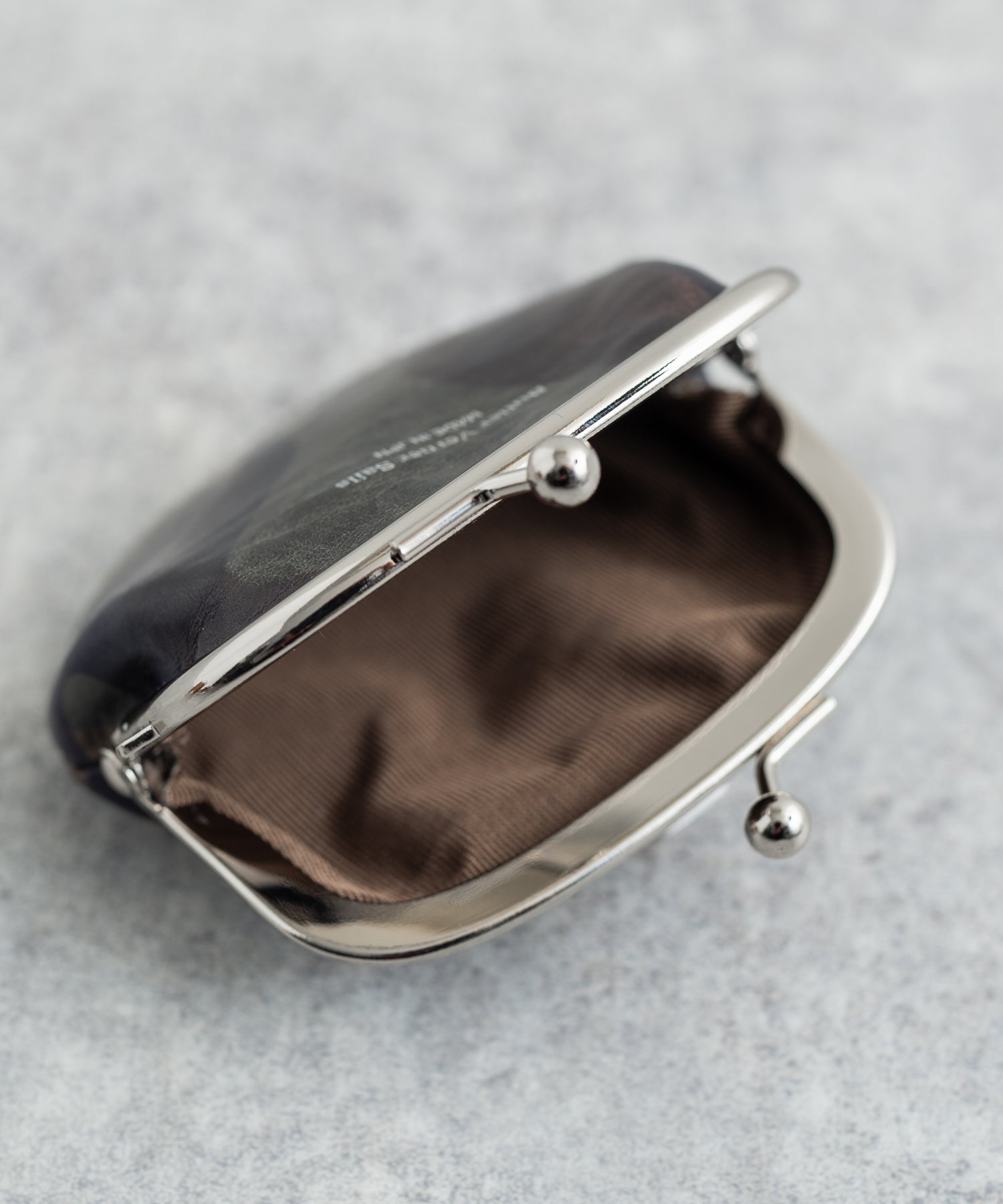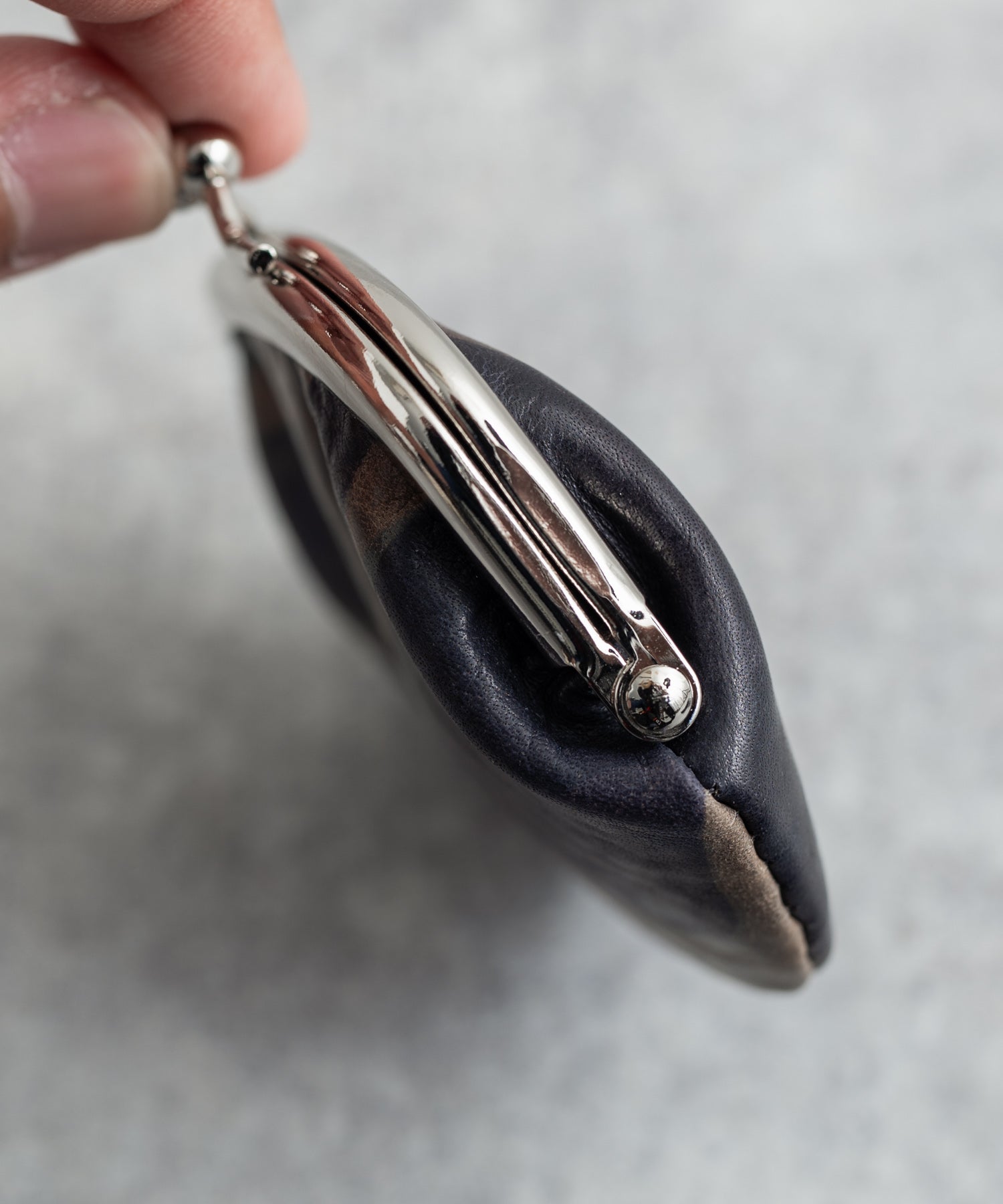 全体的にシボ感があり、革の色・艶が魅力的なイタリアンレザーがま口小銭入れ。