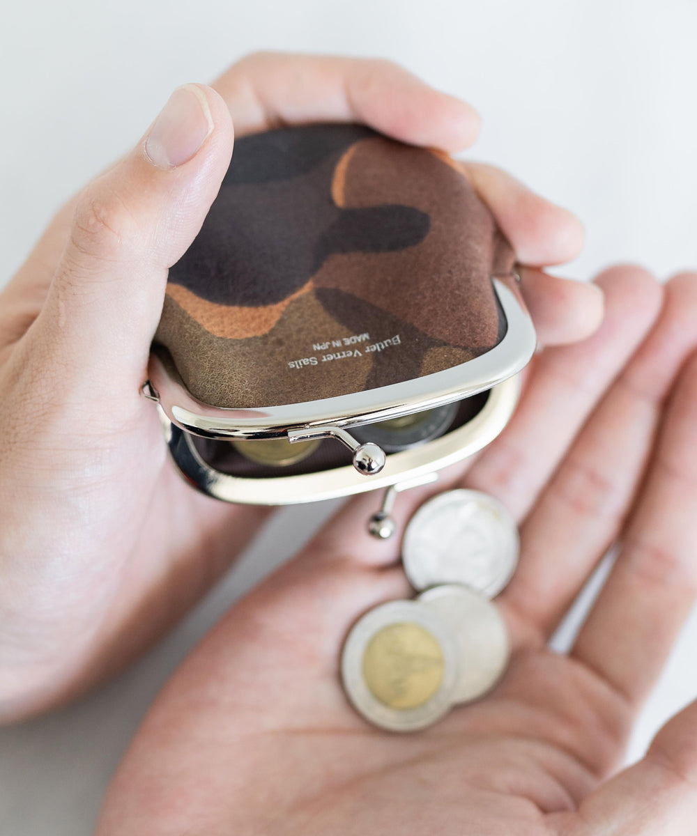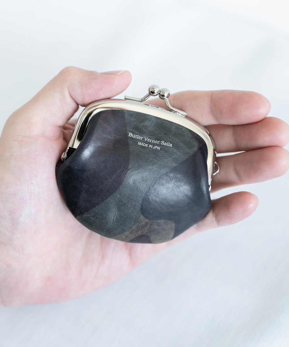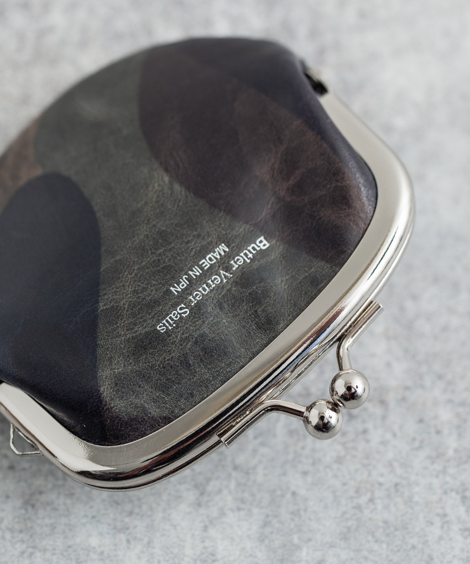 全体的にシボ感があり、革の色・艶が魅力的なイタリアンレザーがま口小銭入れ。