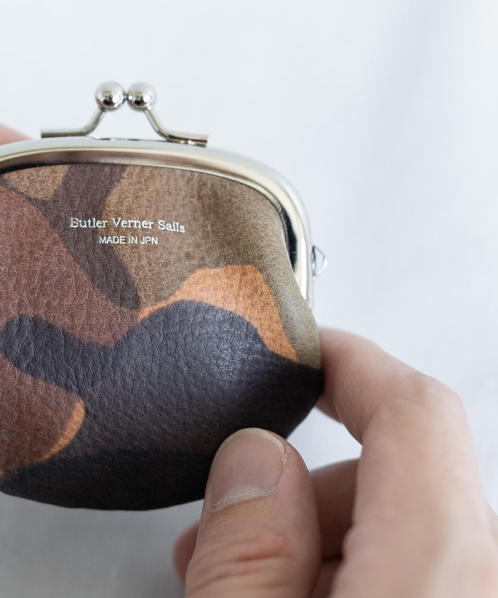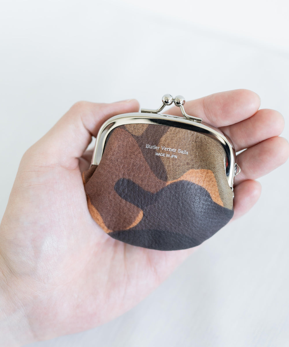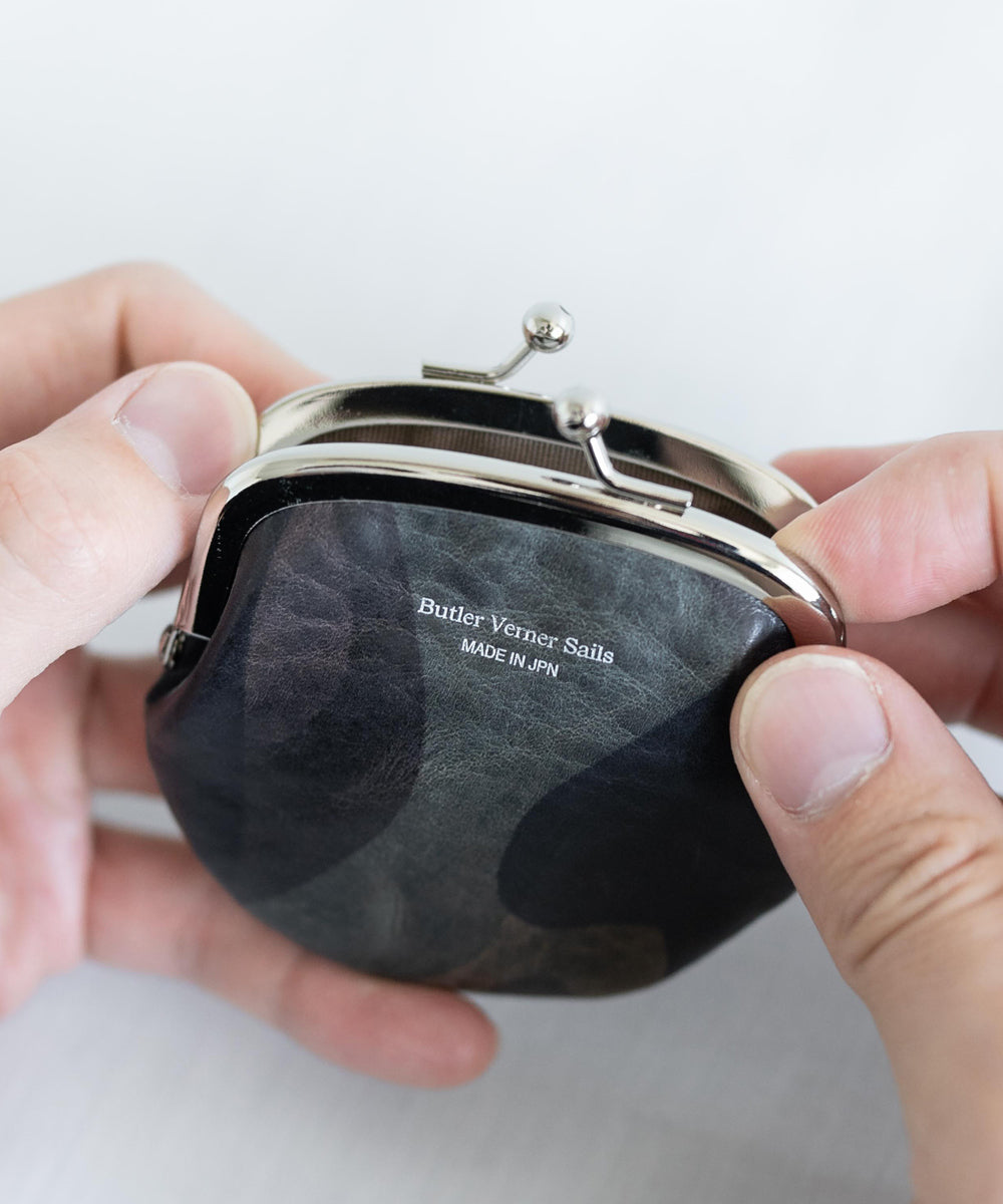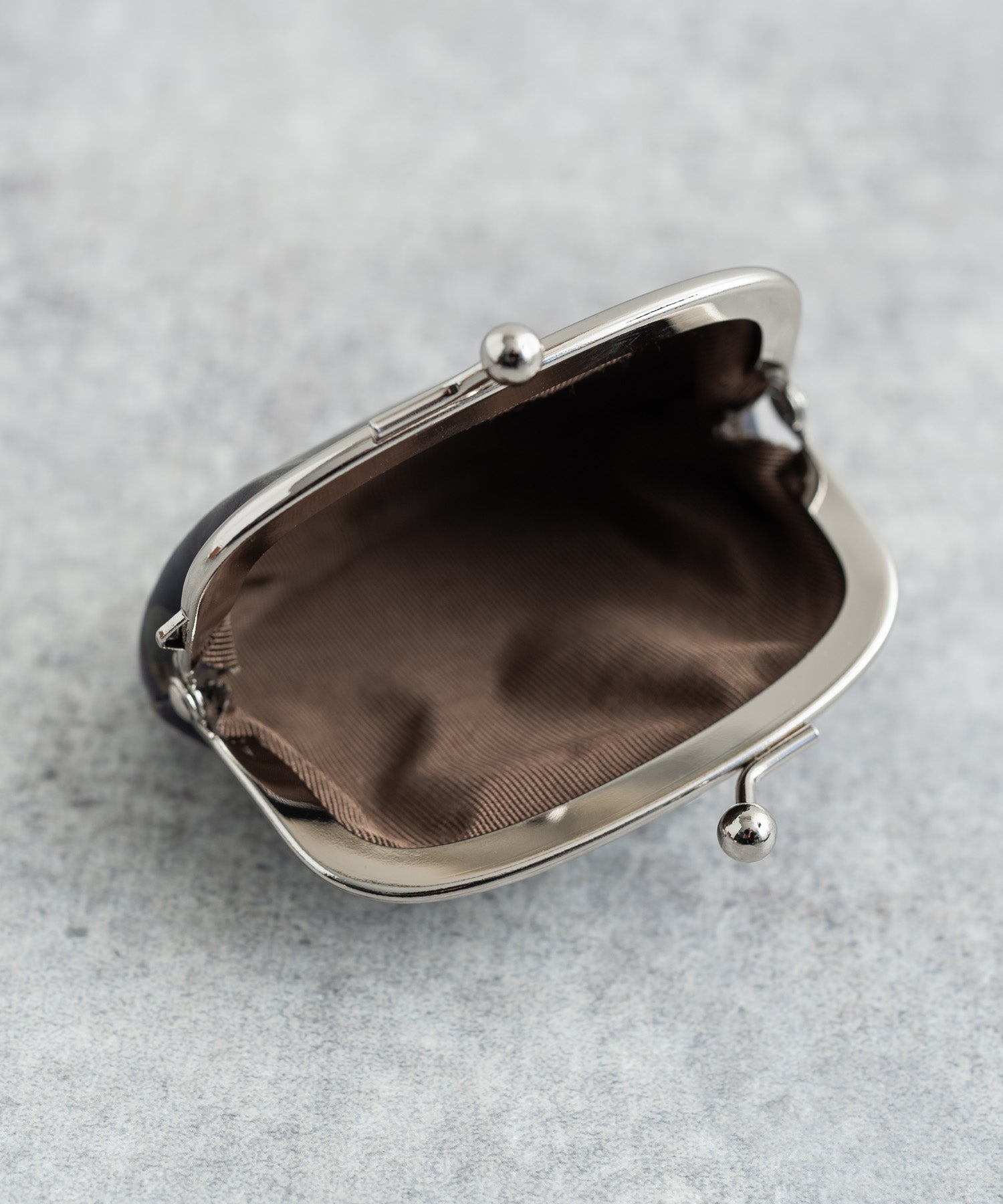 全体的にシボ感があり、革の色・艶が魅力的なイタリアンレザーがま口小銭入れ。