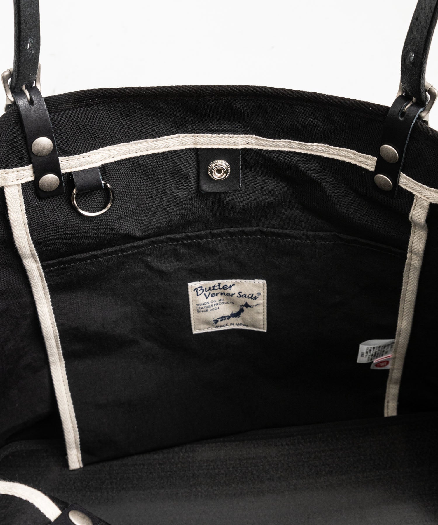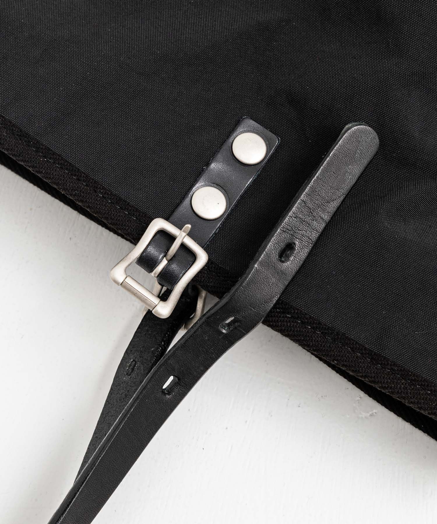 十分な厚さのあるハンドル、スナップボタン、ネームには栃木レザーを使用しています。