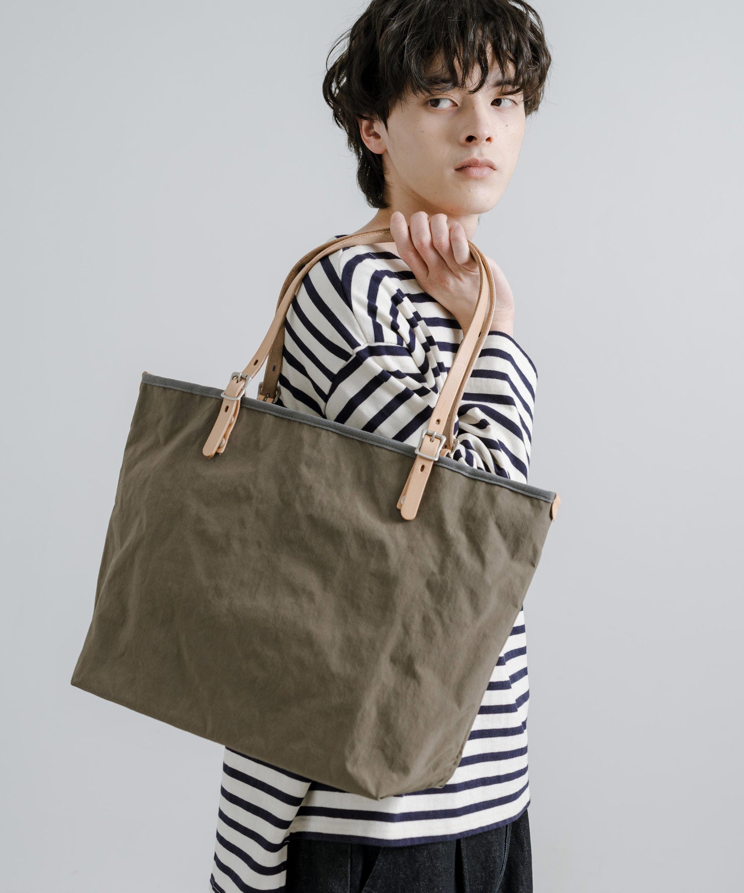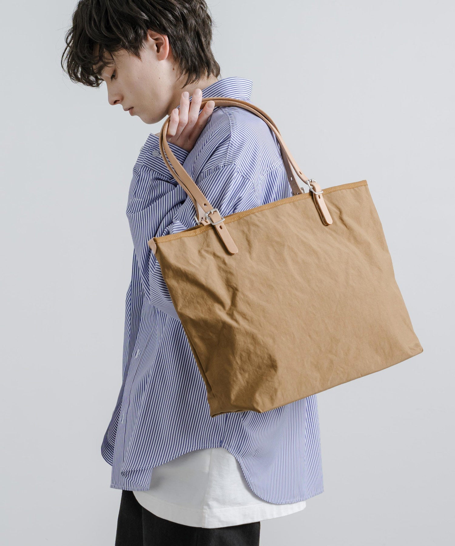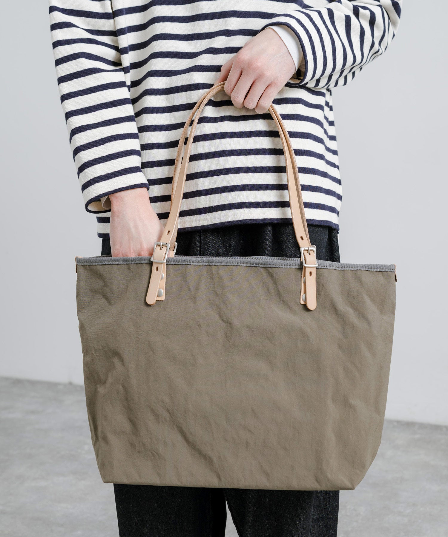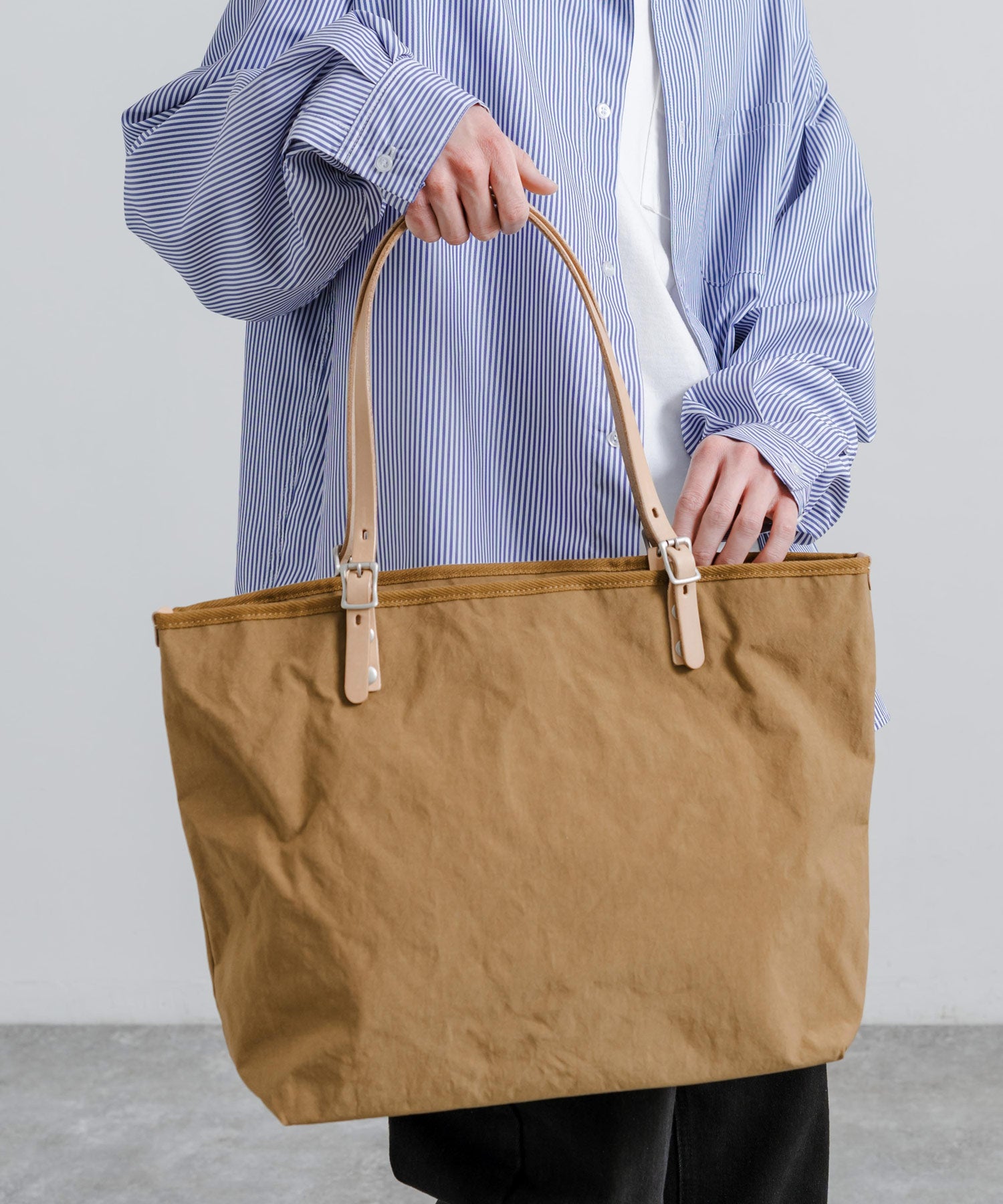 タスラン加工糸を使用することで、綿ライクな仕上がりのナイロントートバッグ。