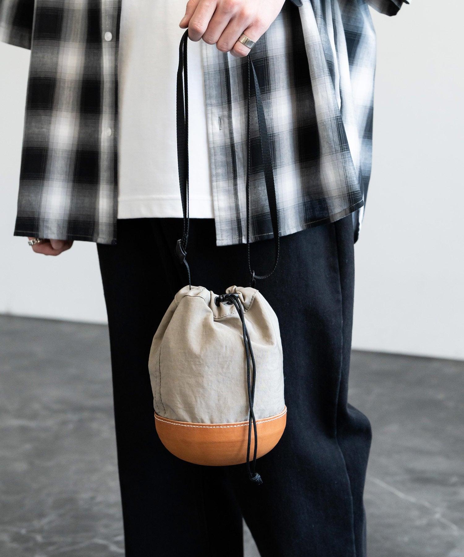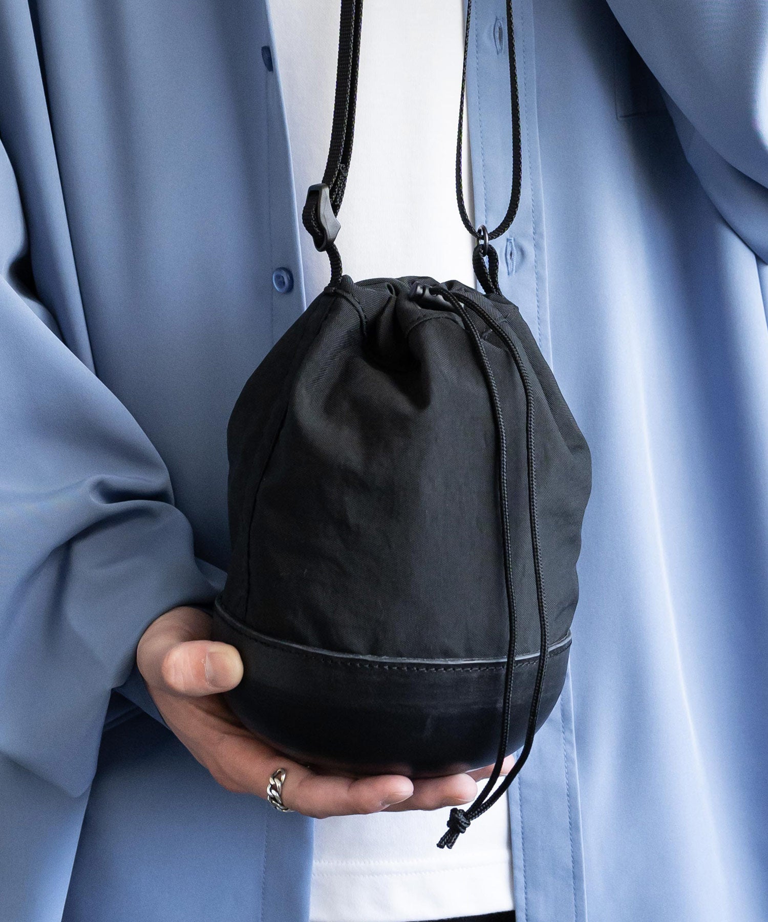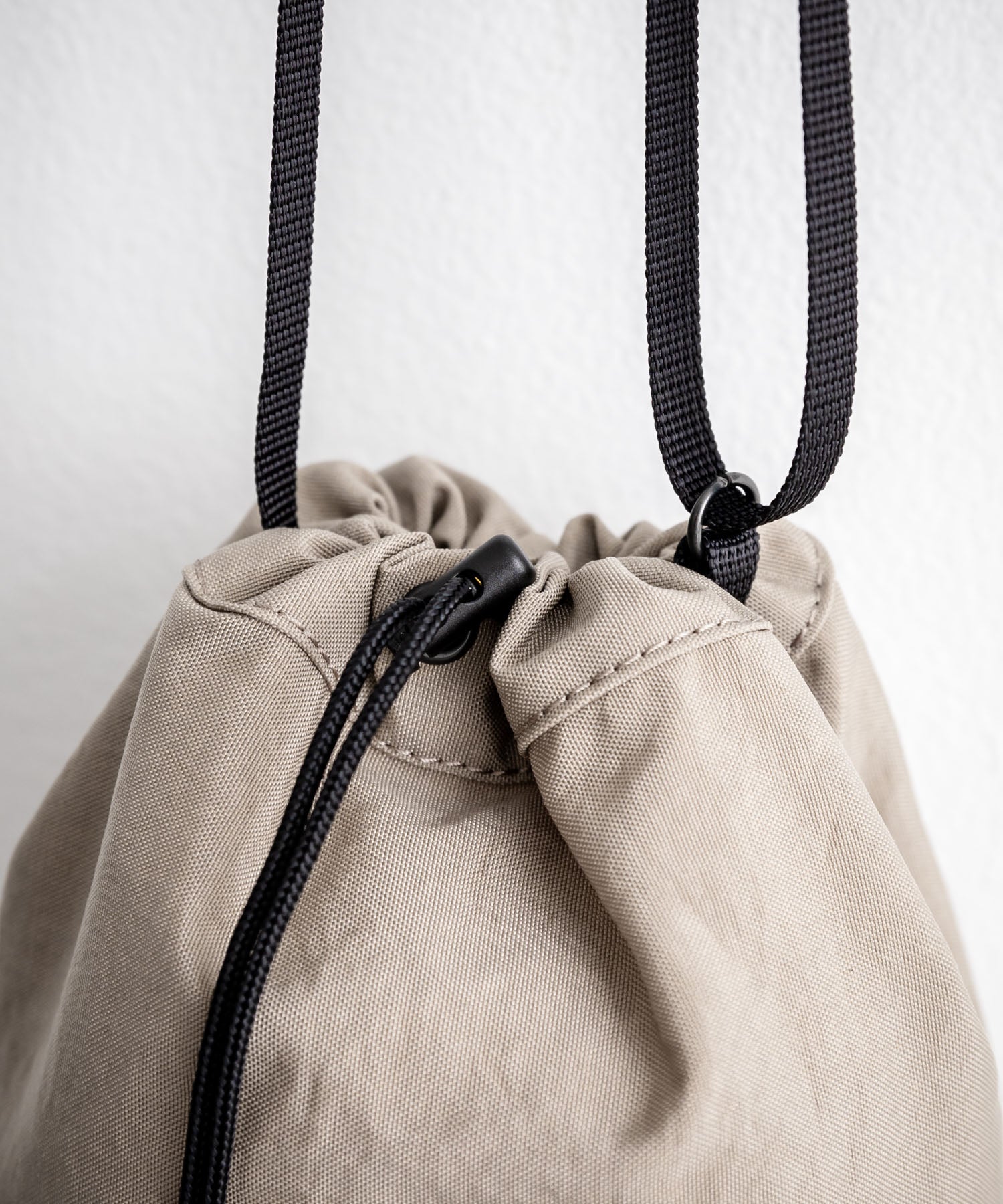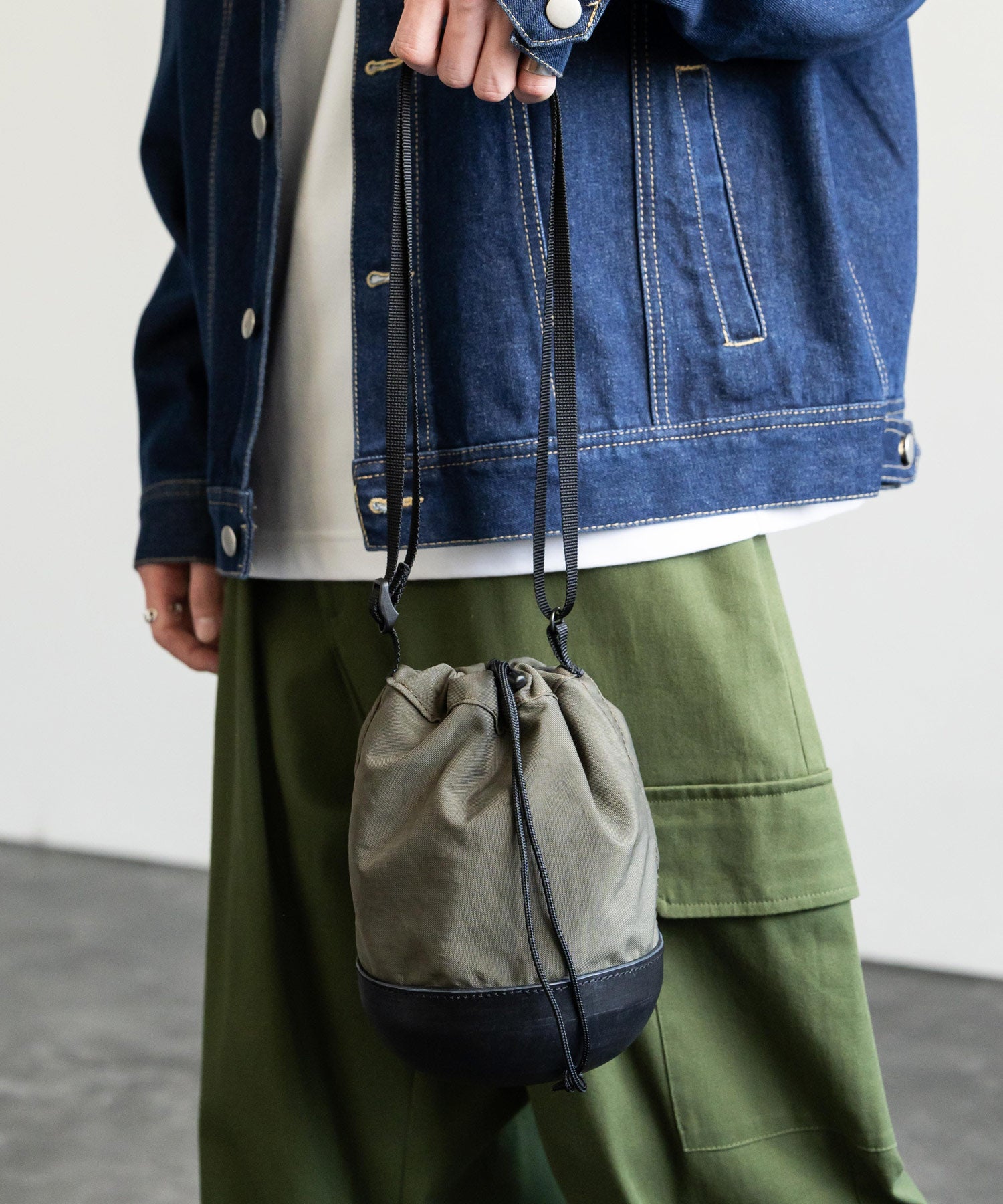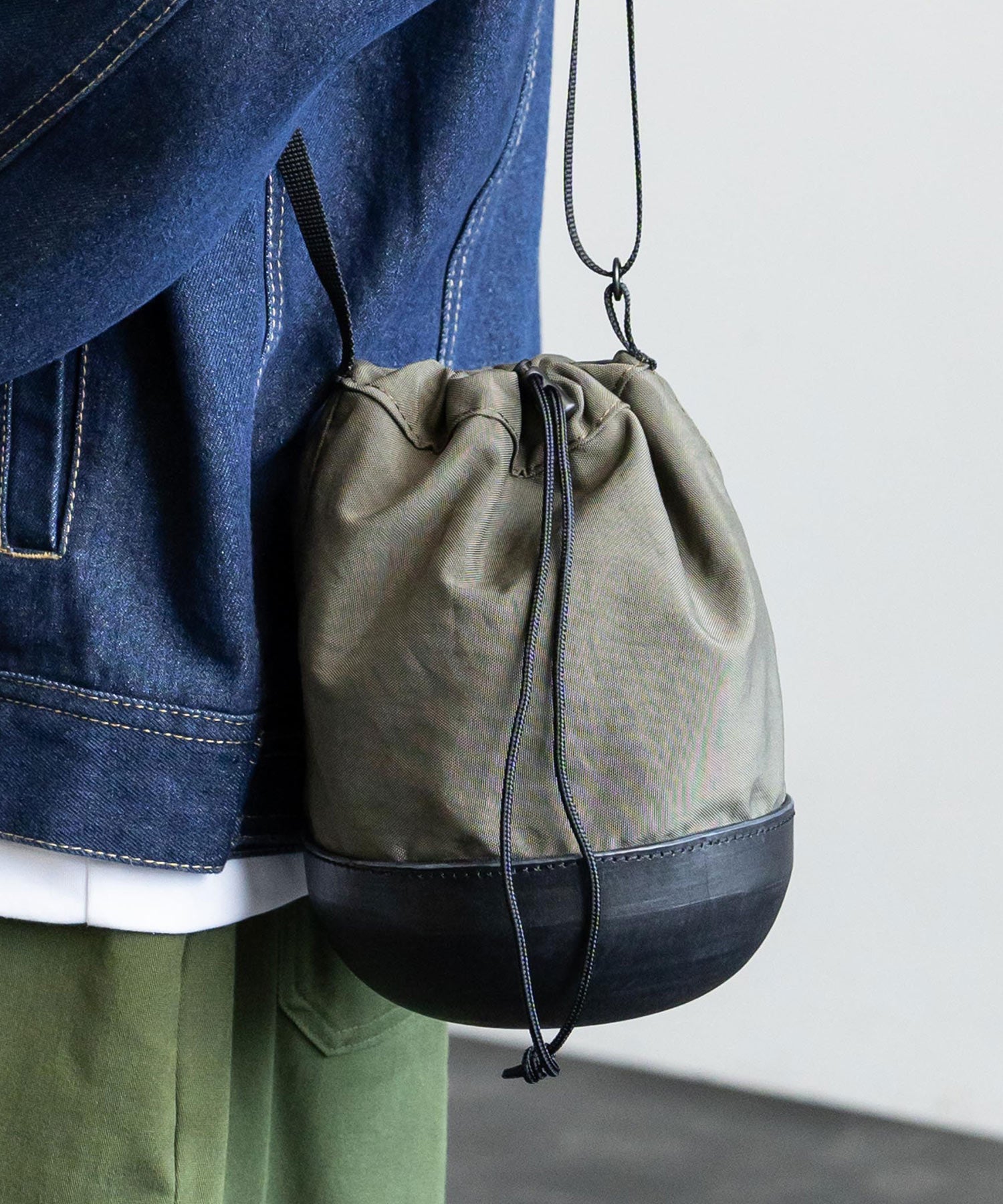 持ち運びやすさとファッション性を両立したデザイン!日本製巾着ショルダーバッグ。