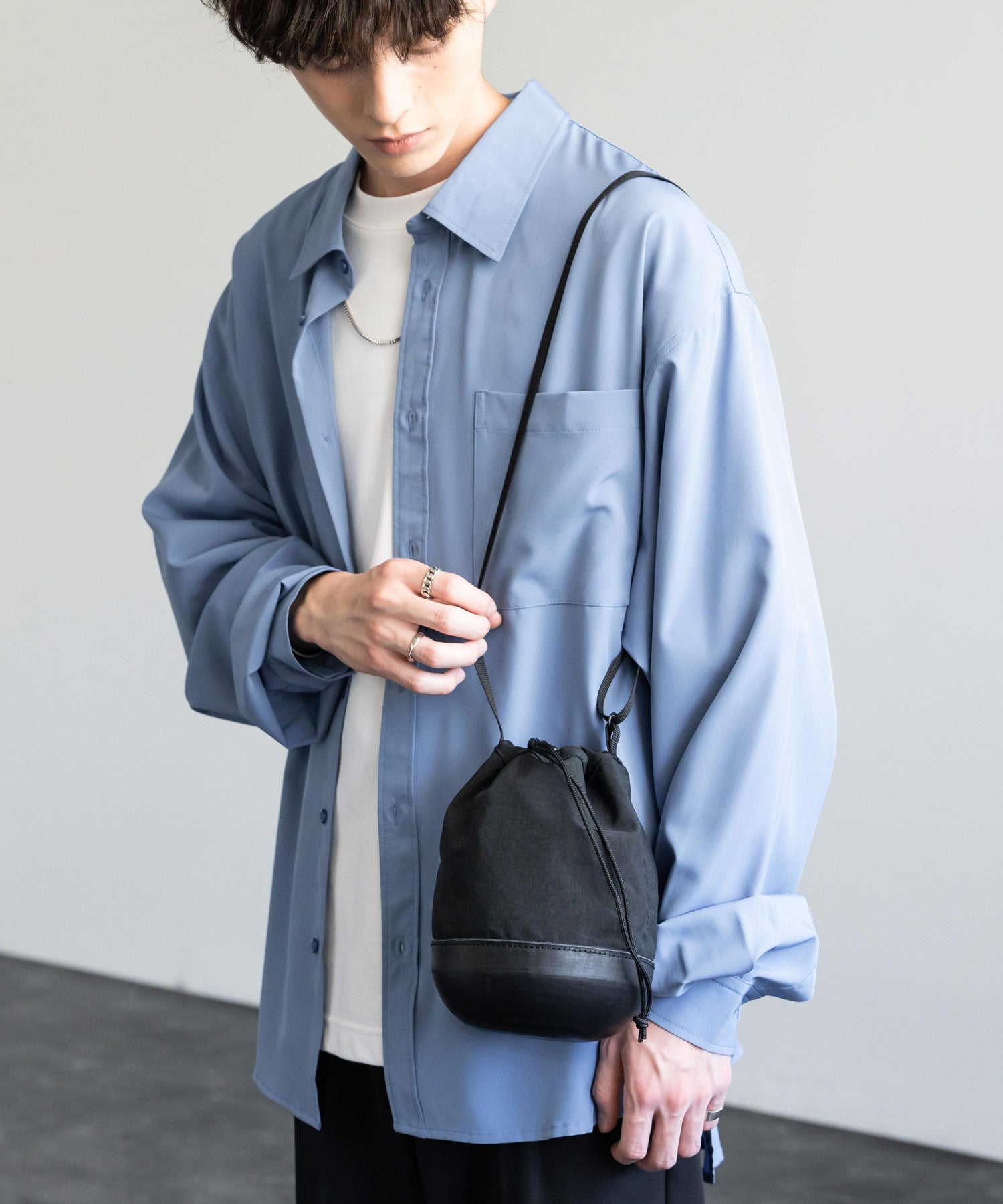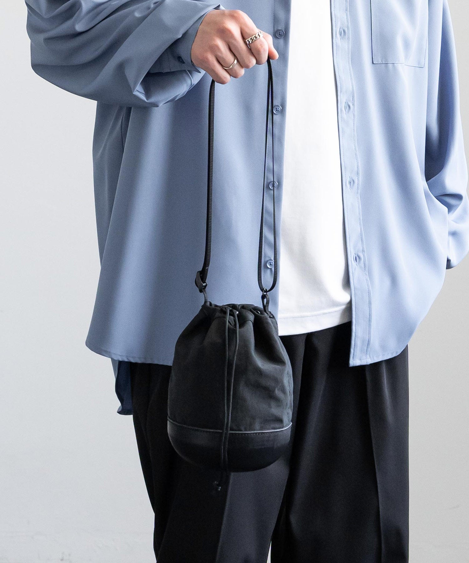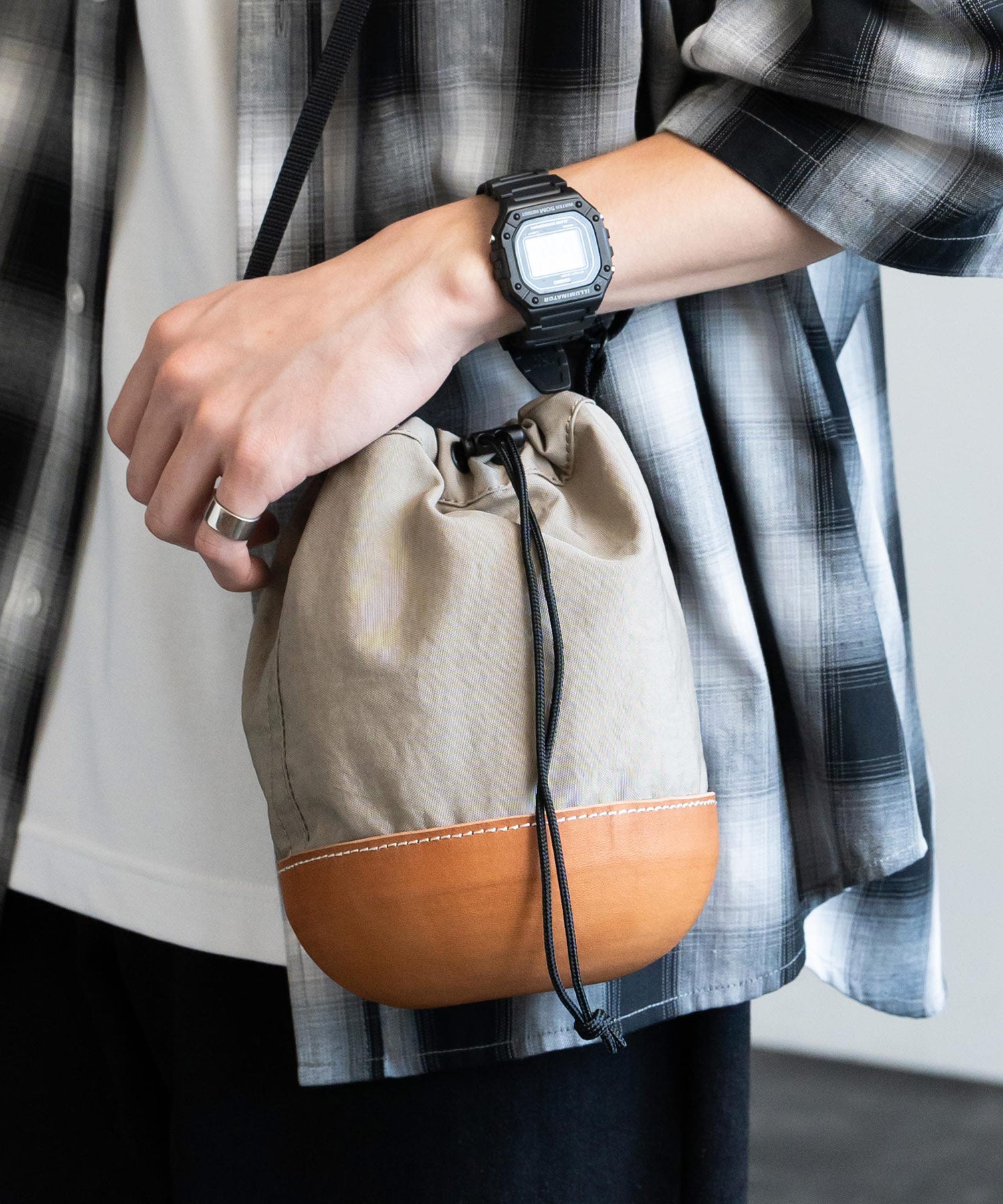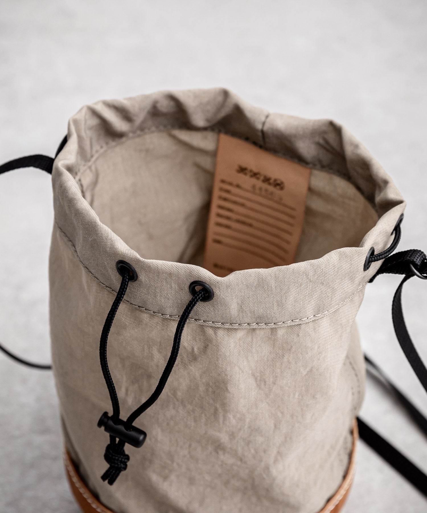 持ち運びやすさとファッション性を両立したデザイン!日本製巾着ショルダーバッグ。