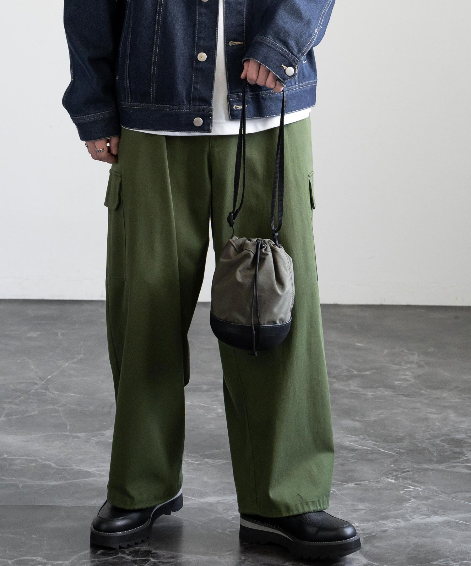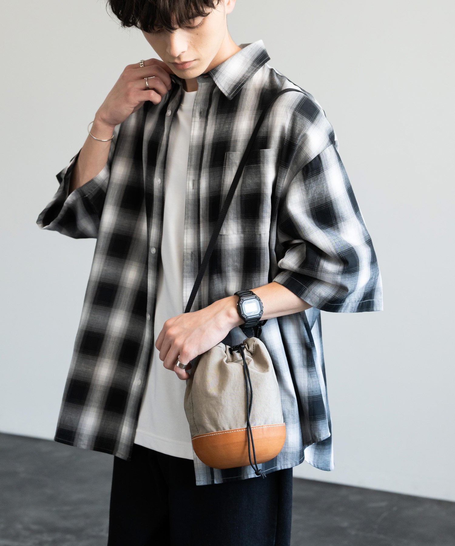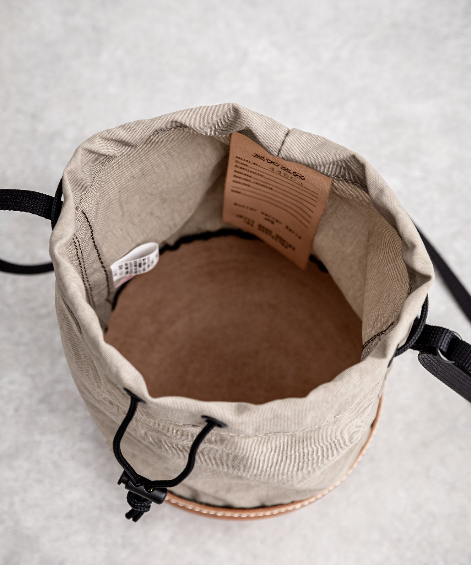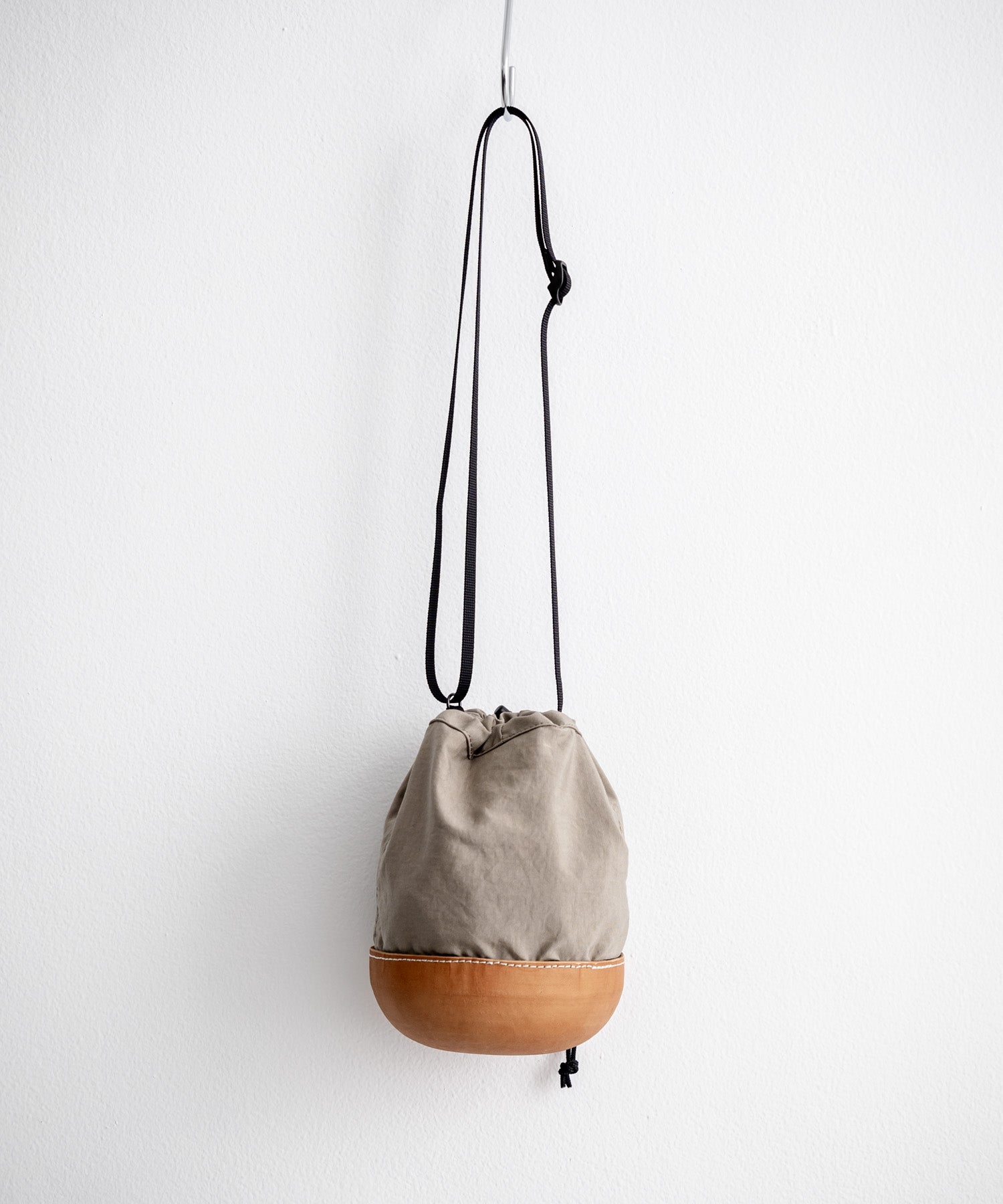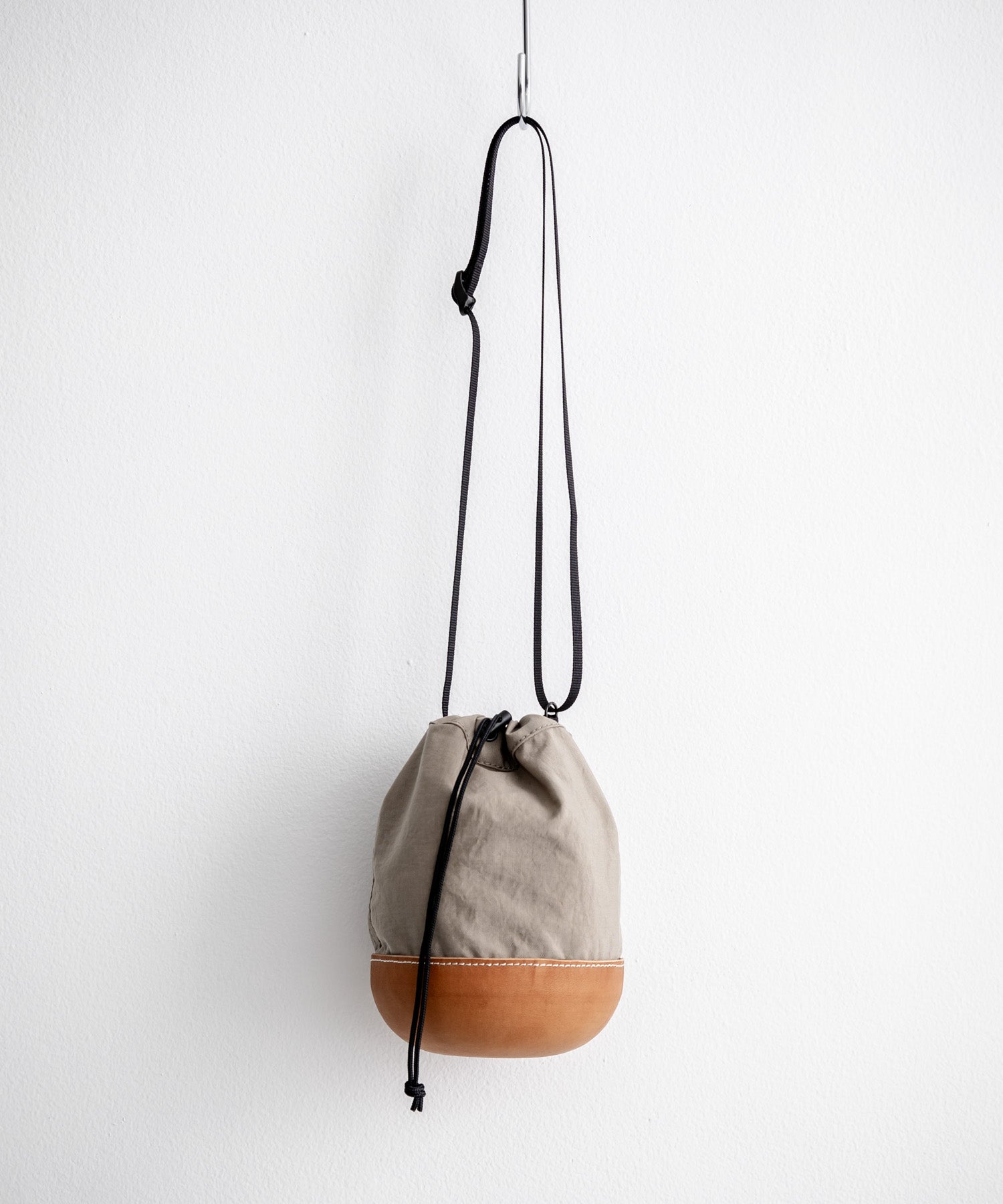 持ち運びやすさとファッション性を両立したデザイン!日本製巾着ショルダーバッグ。
