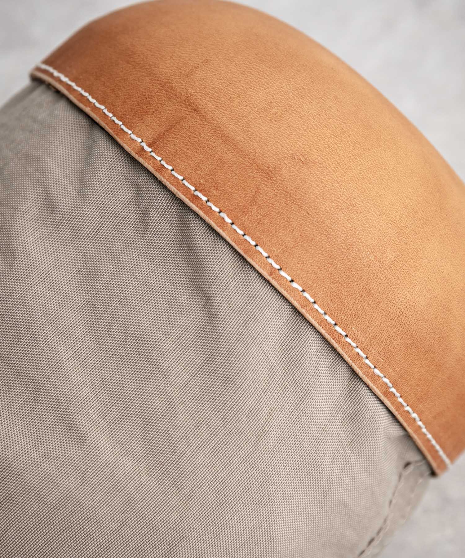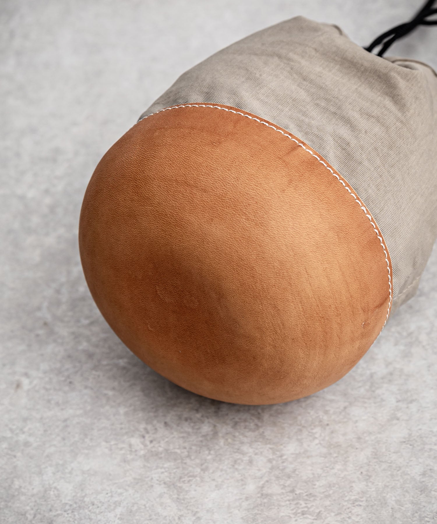 上部はシワ加工を施したナイロン、底は姫路レザーの牛ヌメ革を使用。