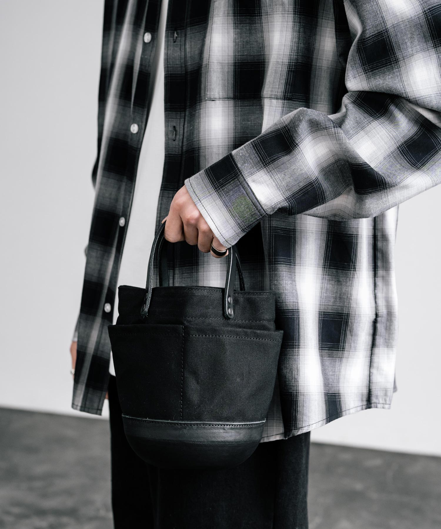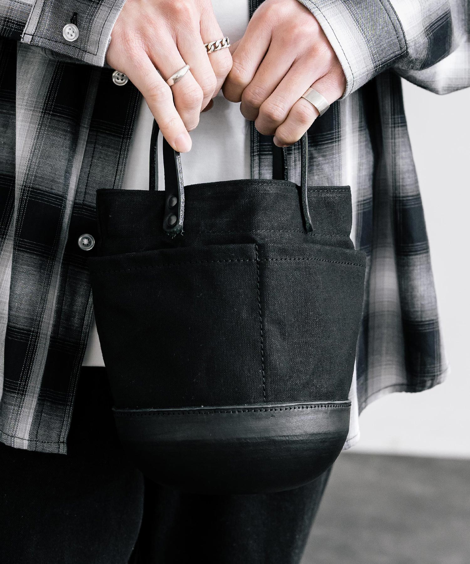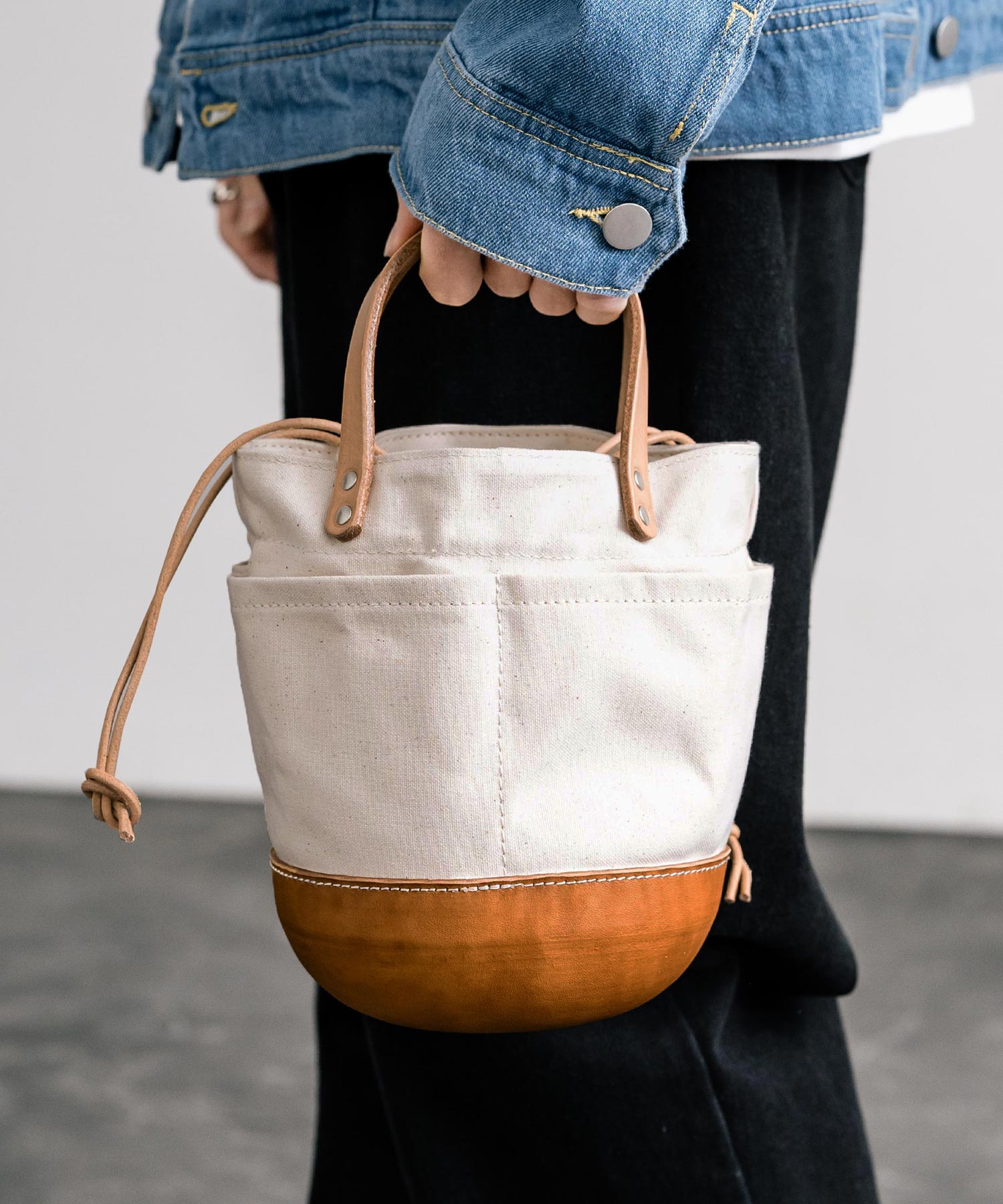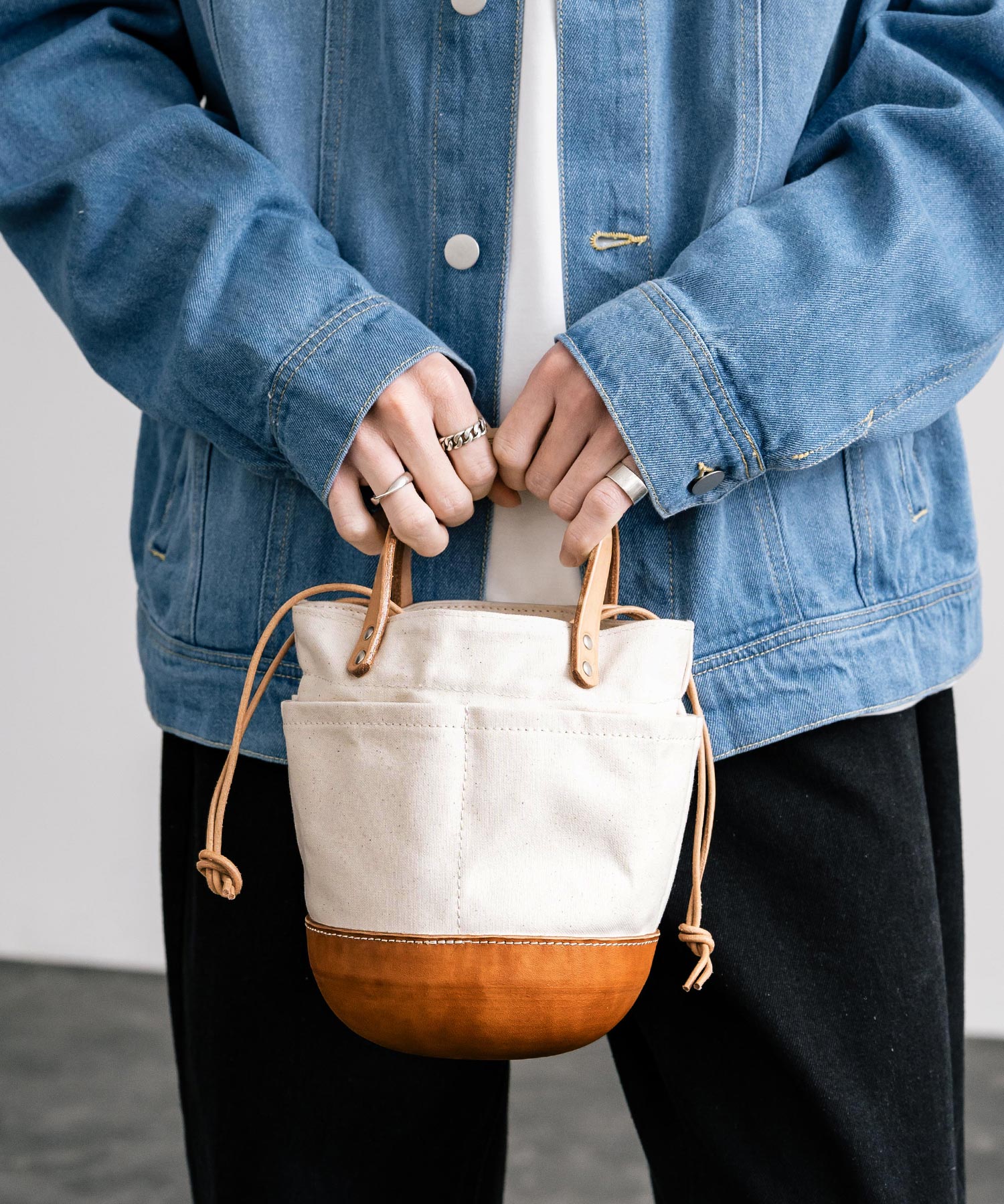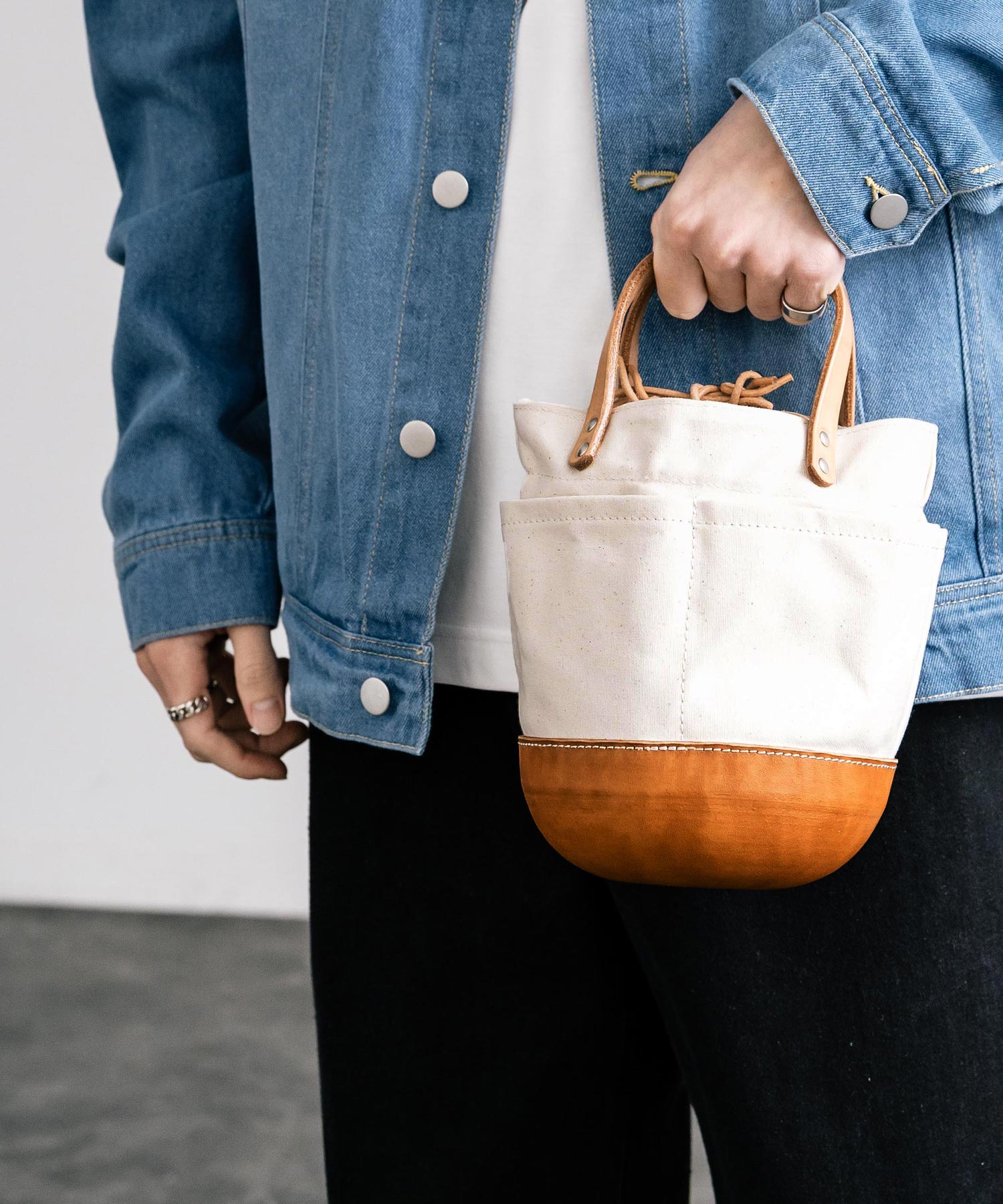 上部はパラフィン加工を施した10号帆布のキャンバス生地、底は栃木レザーの牛ヌメ革を使用。