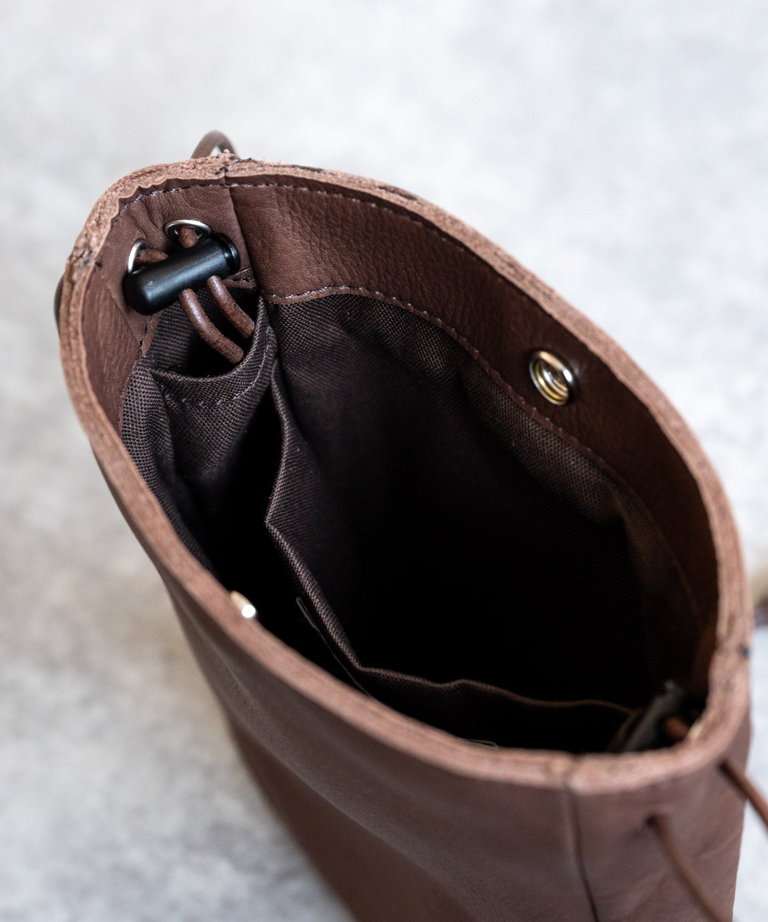 シンプルながらも細かいディティールに拘ったダブルレザーロープショルダーバッグ。