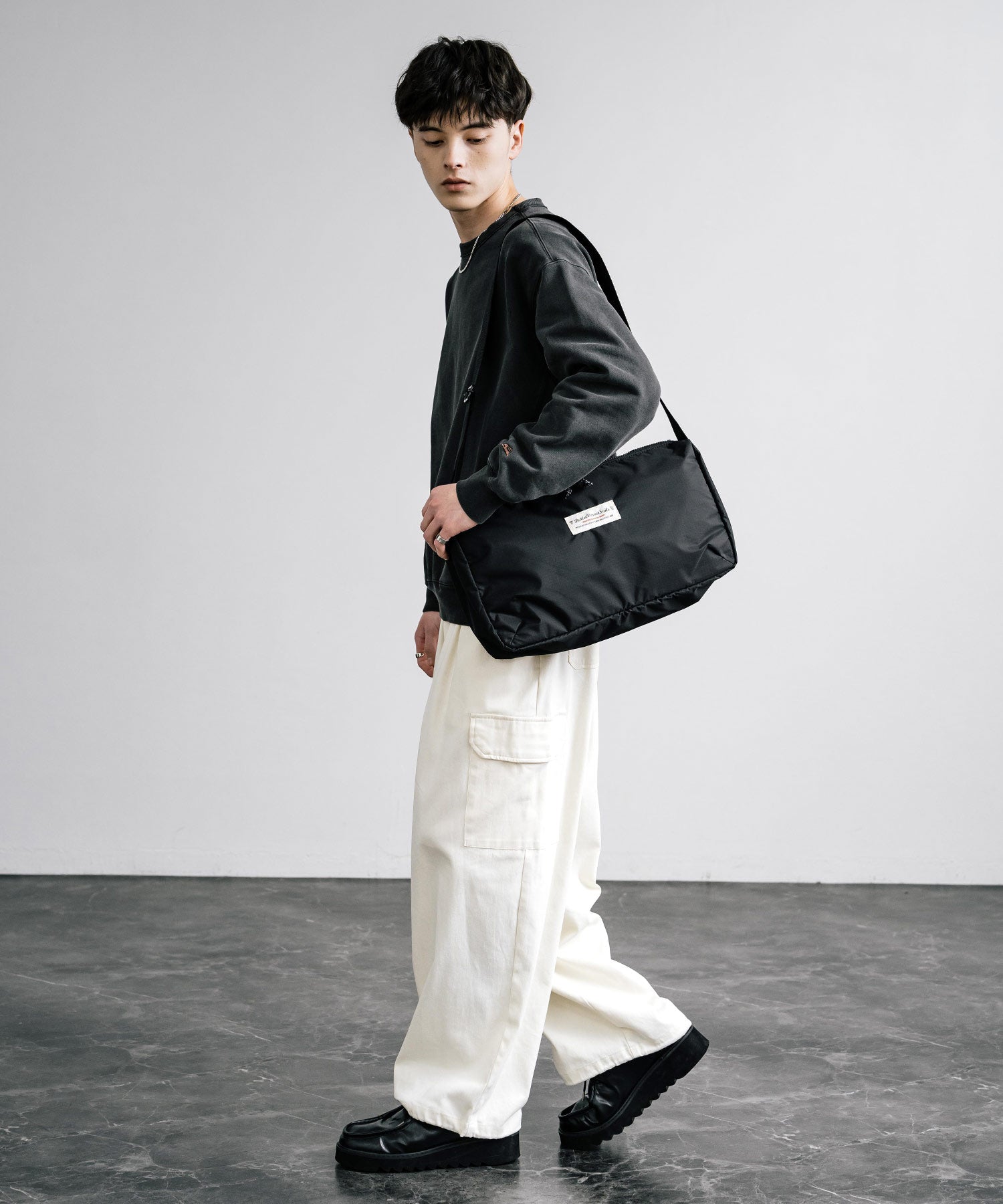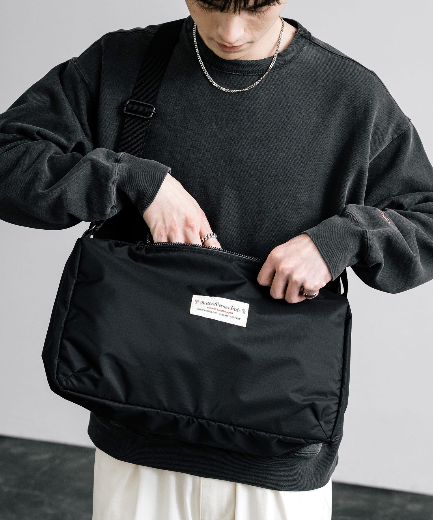 斜め掛けもできる長さで、スタイリングに合わせて様々な持ち方に対応。