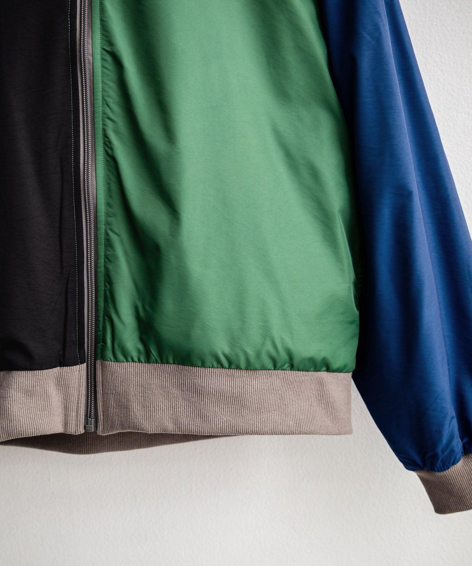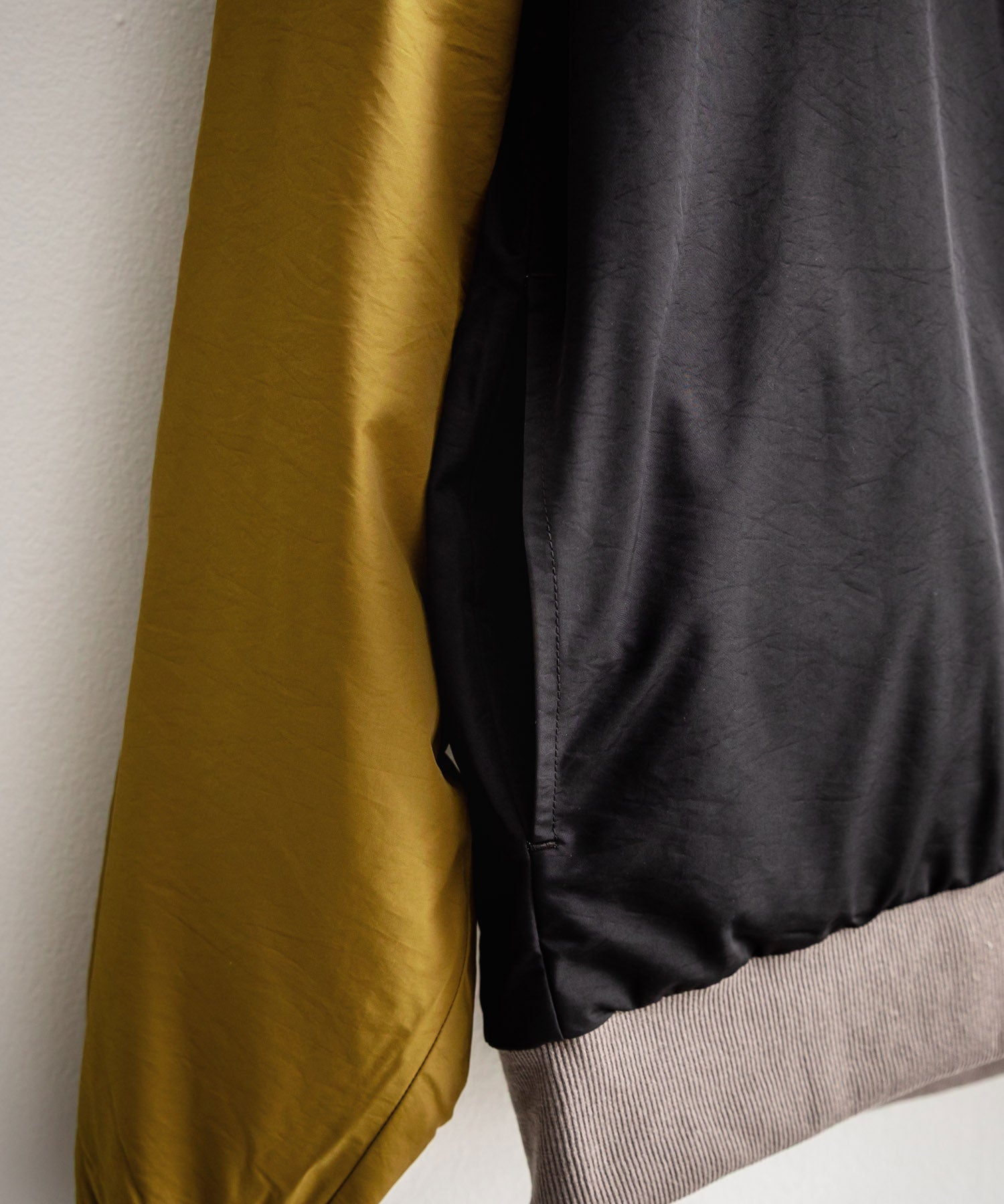 袖口と裾はリブ仕様で、シルエットにメリハリが付きスッキリとした印象に。