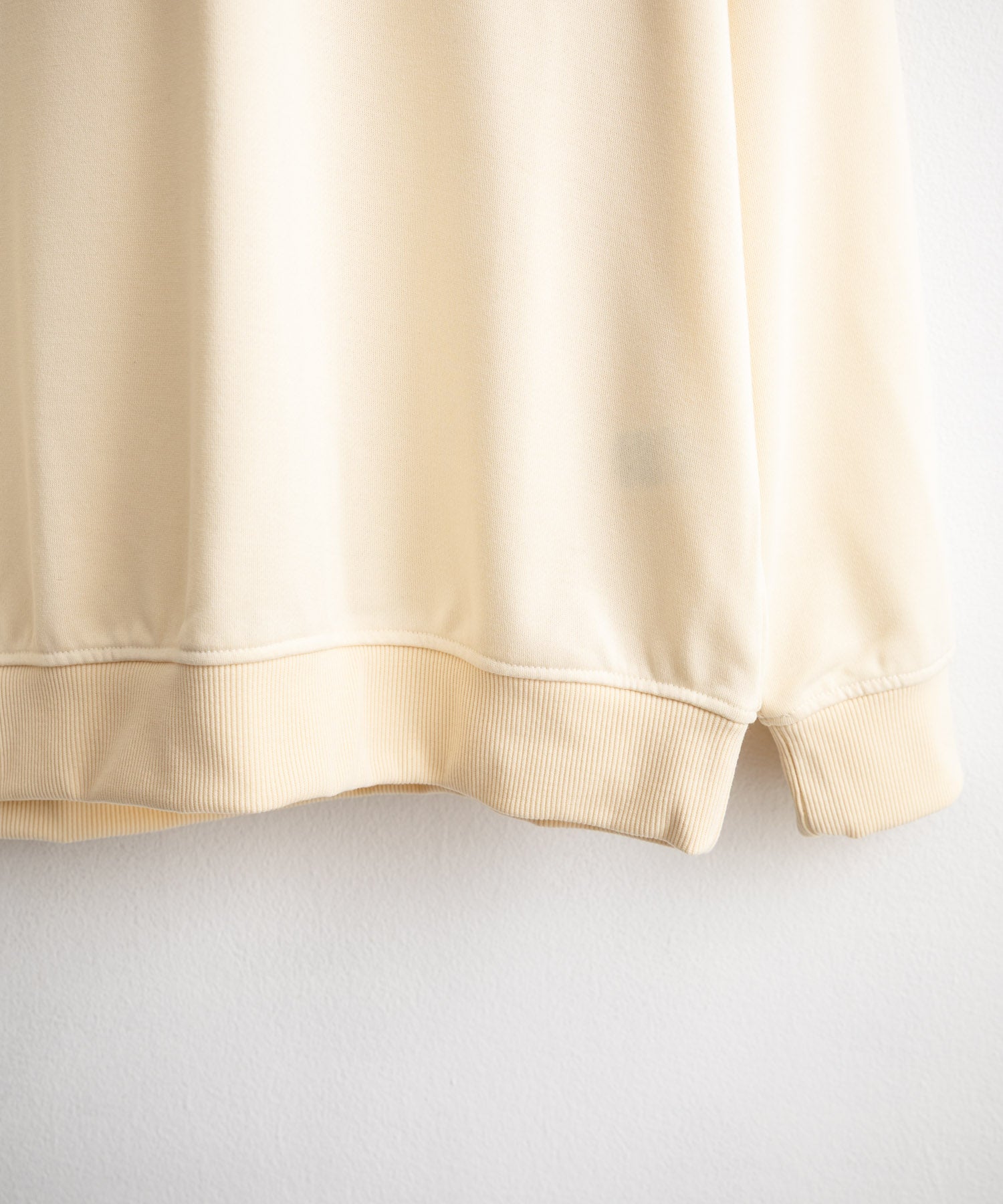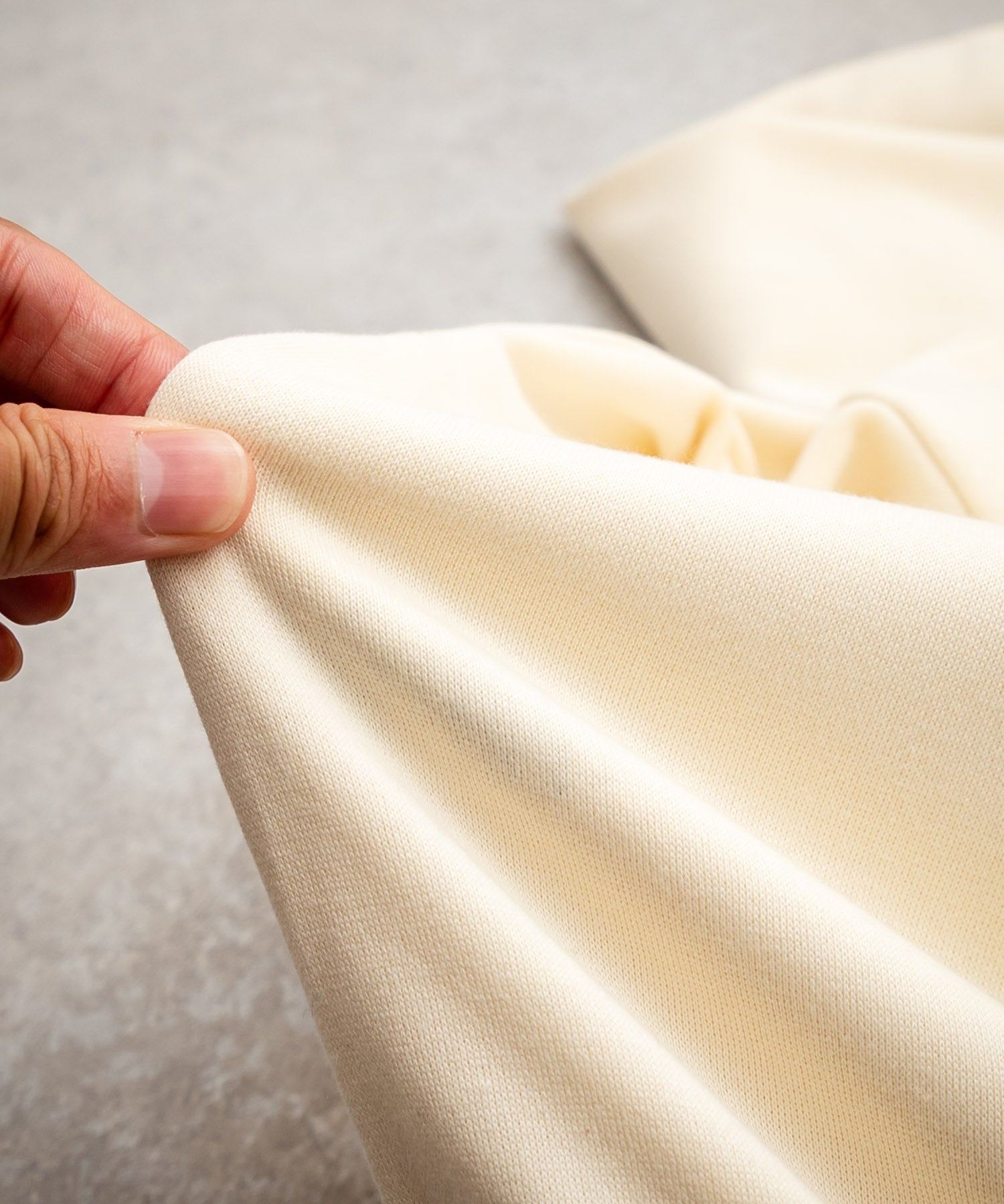 裏毛仕様で素肌に着用しても心地よく、重ね着してもごわつきが少ないのが特徴。