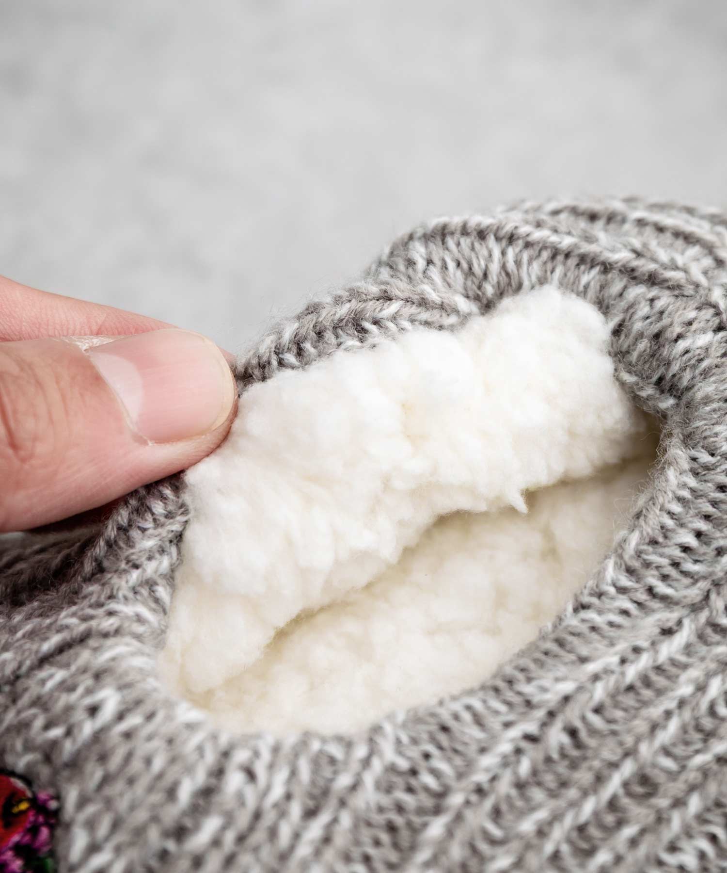 足にフィットして歩きやすく、脱げにくい伸縮性のあるニット素材を使用。