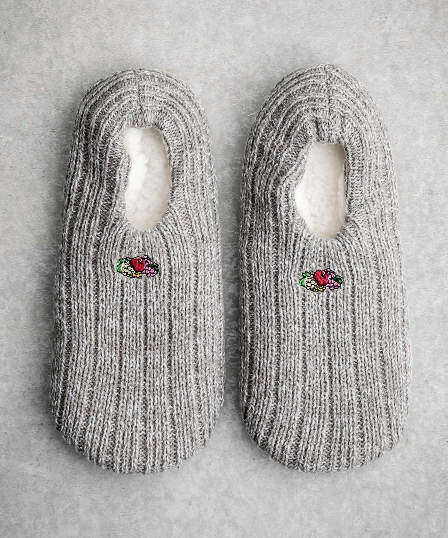 フロントのブランドロゴ刺繍がポイント!FRUIT OF THE LOOM内ボア刺繍スリッパ。