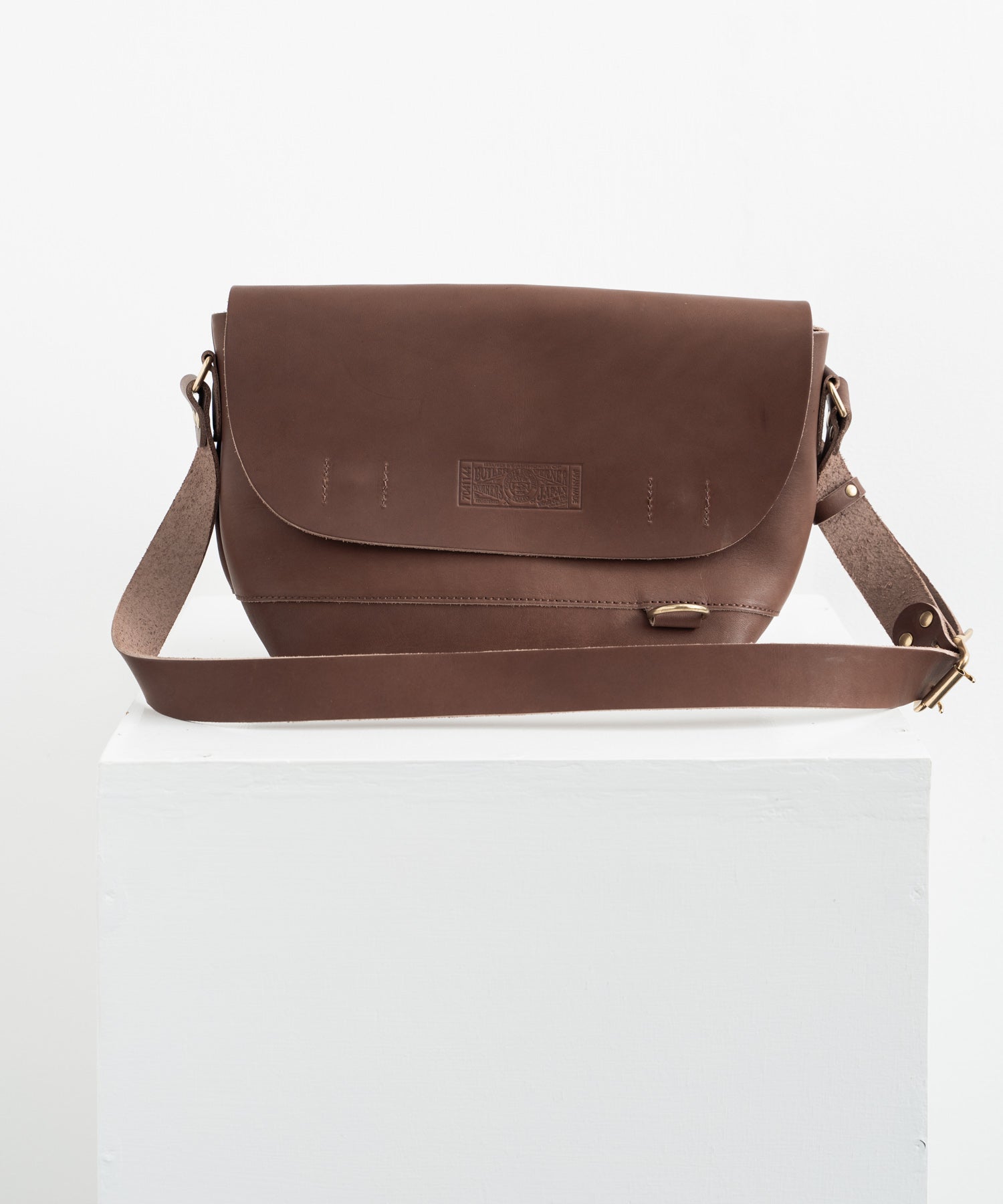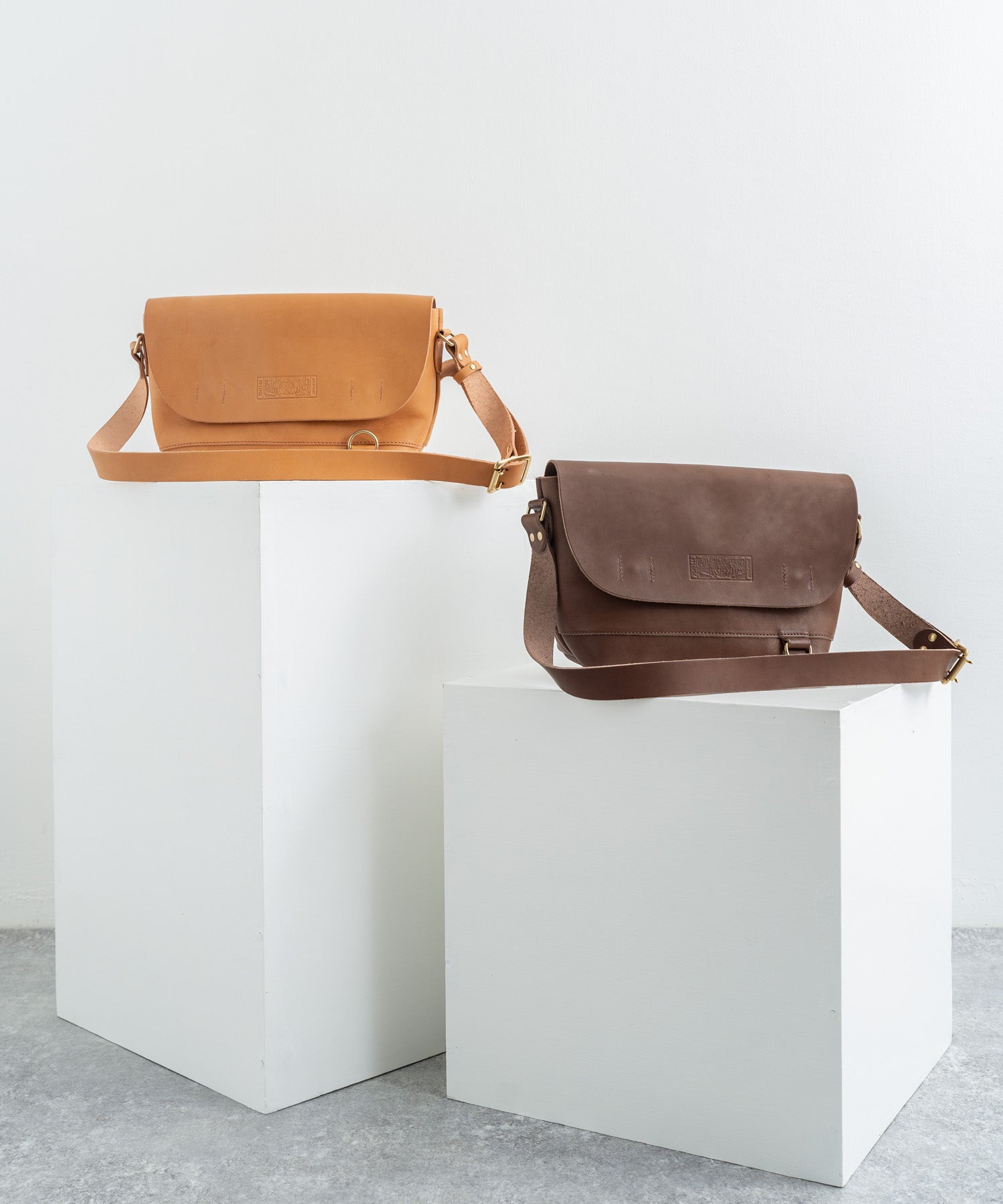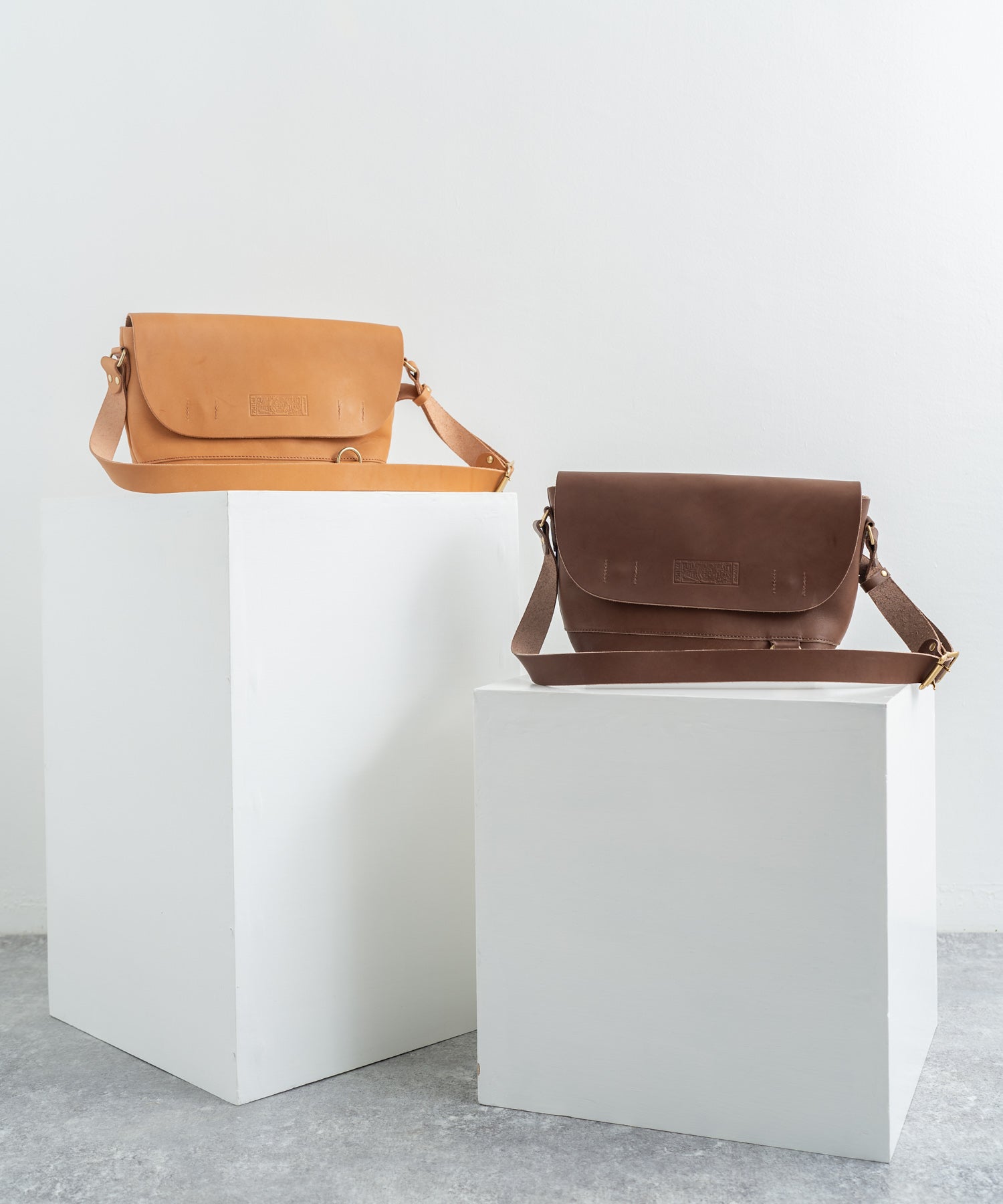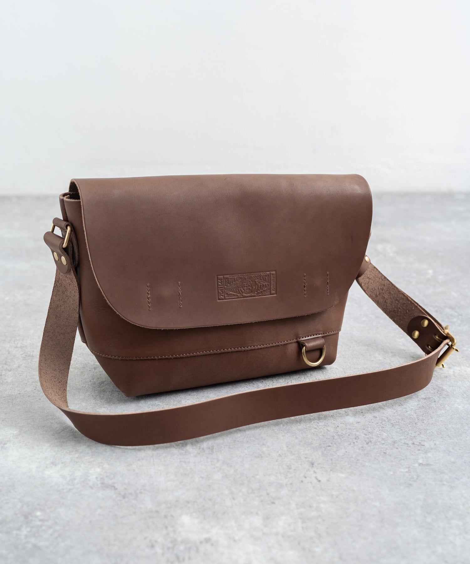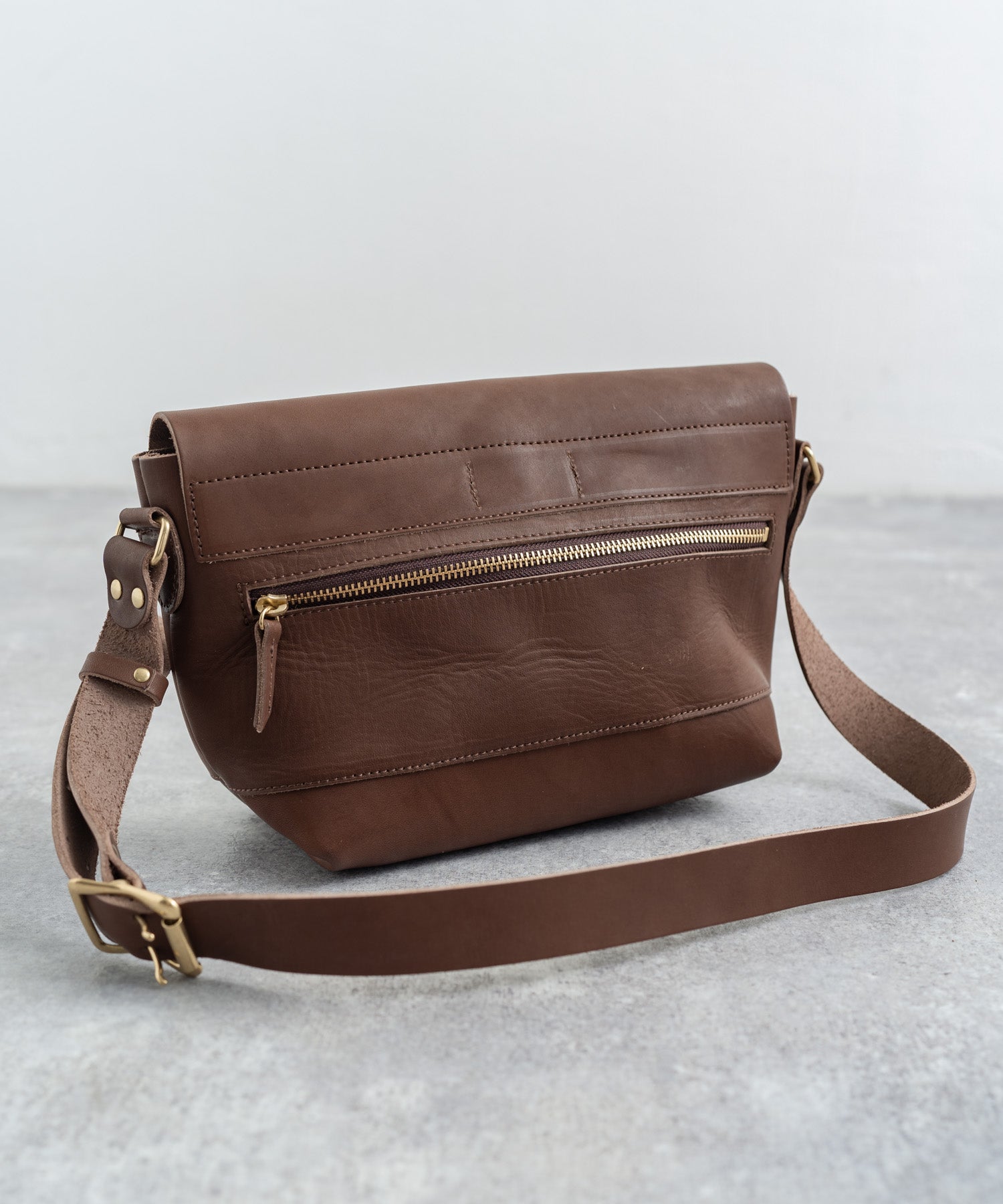 ペットボトルやB5ノートも楽々入るサイズ感の日本製本ヌメ革ショルダー。