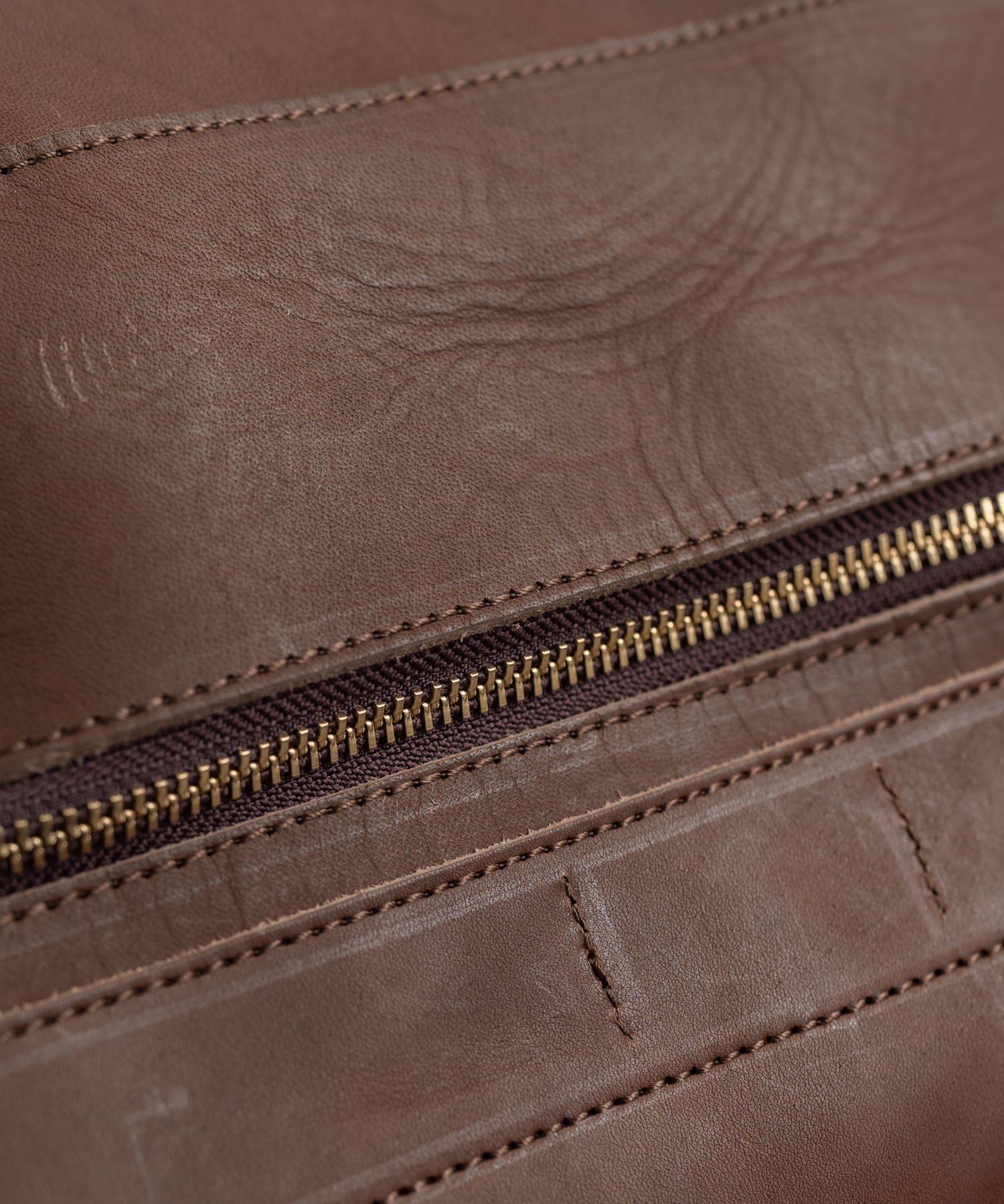 背面のファスナーは、鞄の内部に直接リンクしているので、荷物の出し入れが可能です。