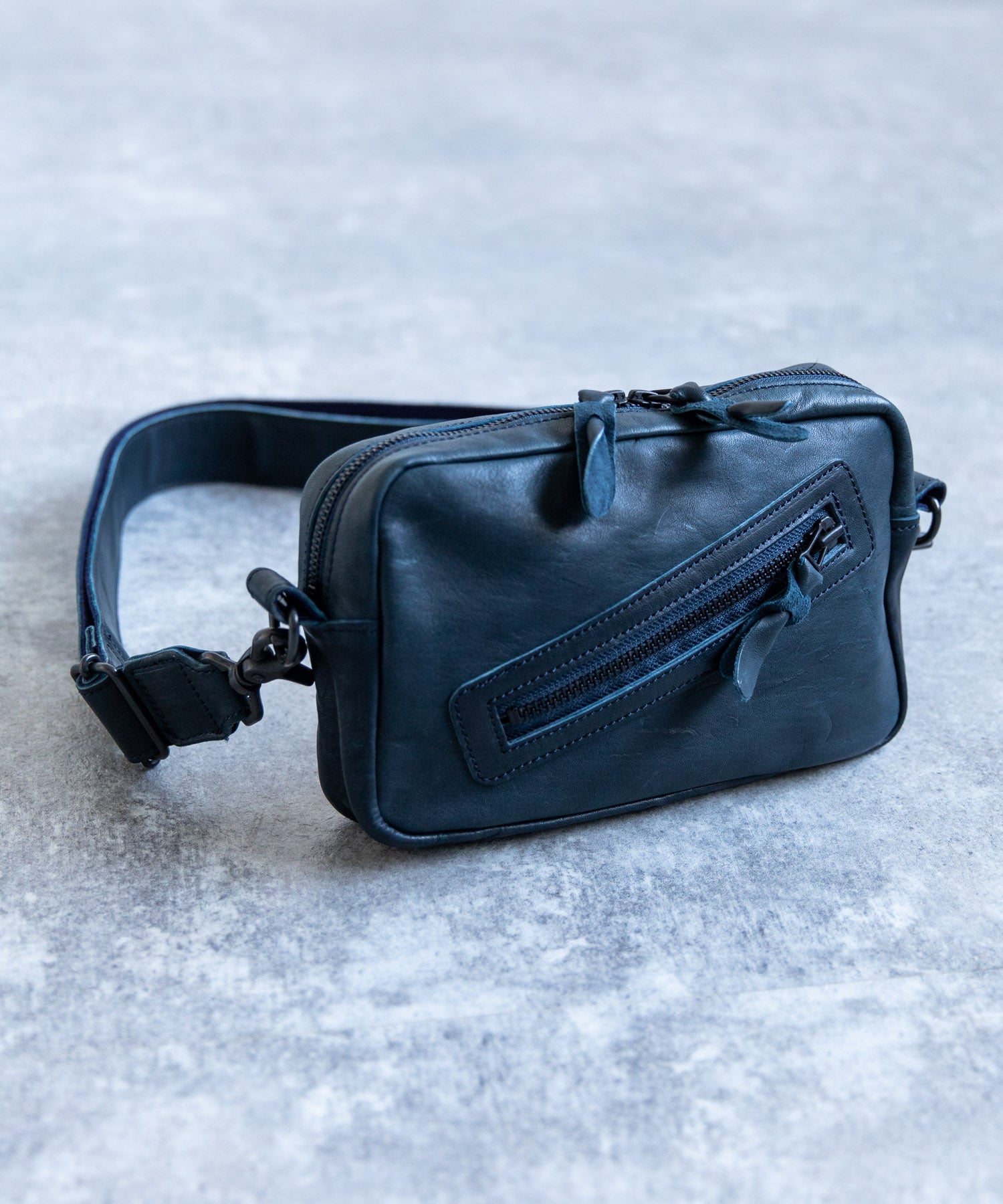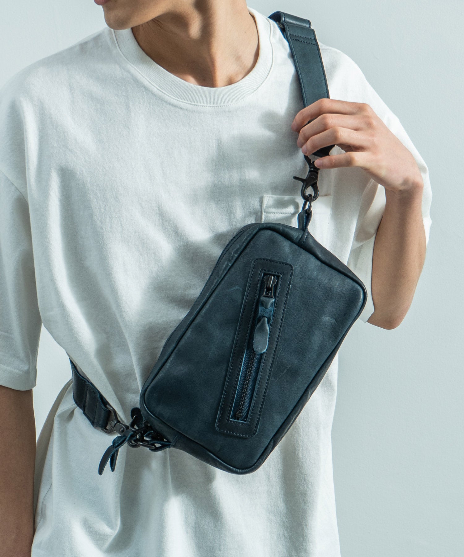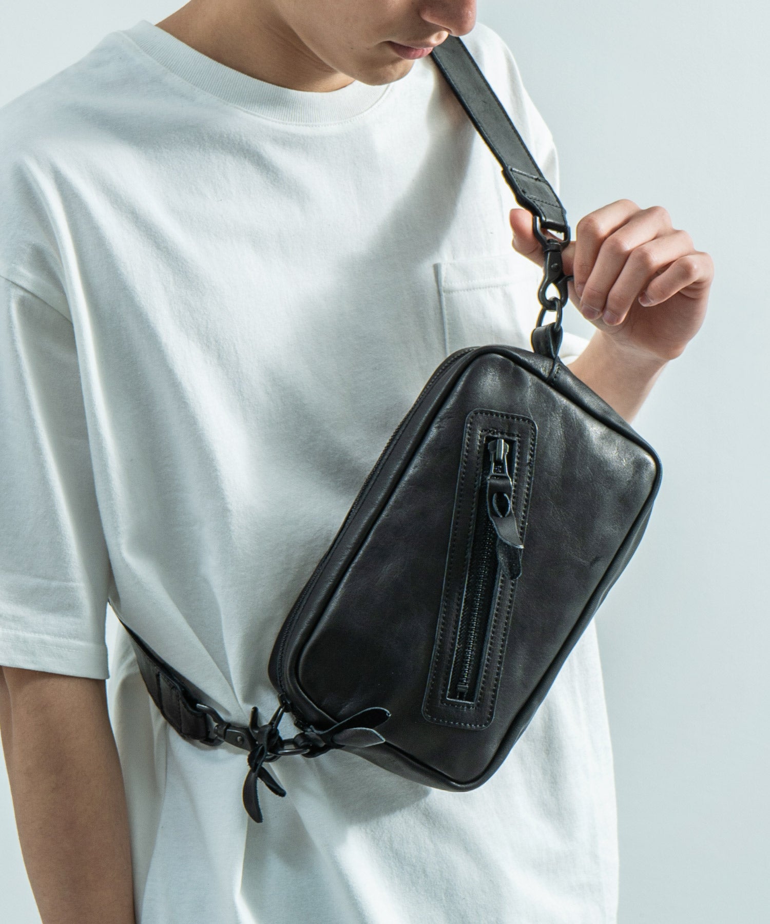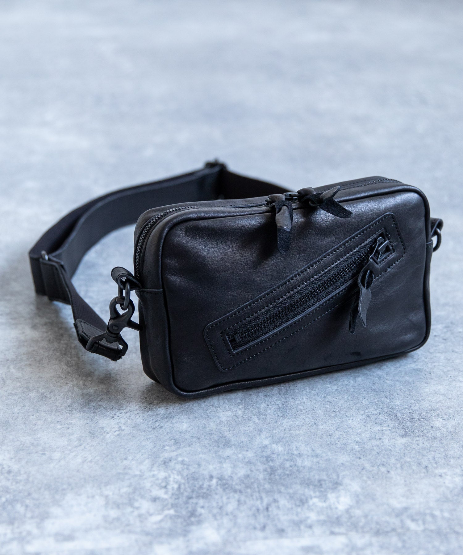 デイユースにも重宝する2WAY仕様 革好きにはたまらない馬革スクエアジップショルダー。