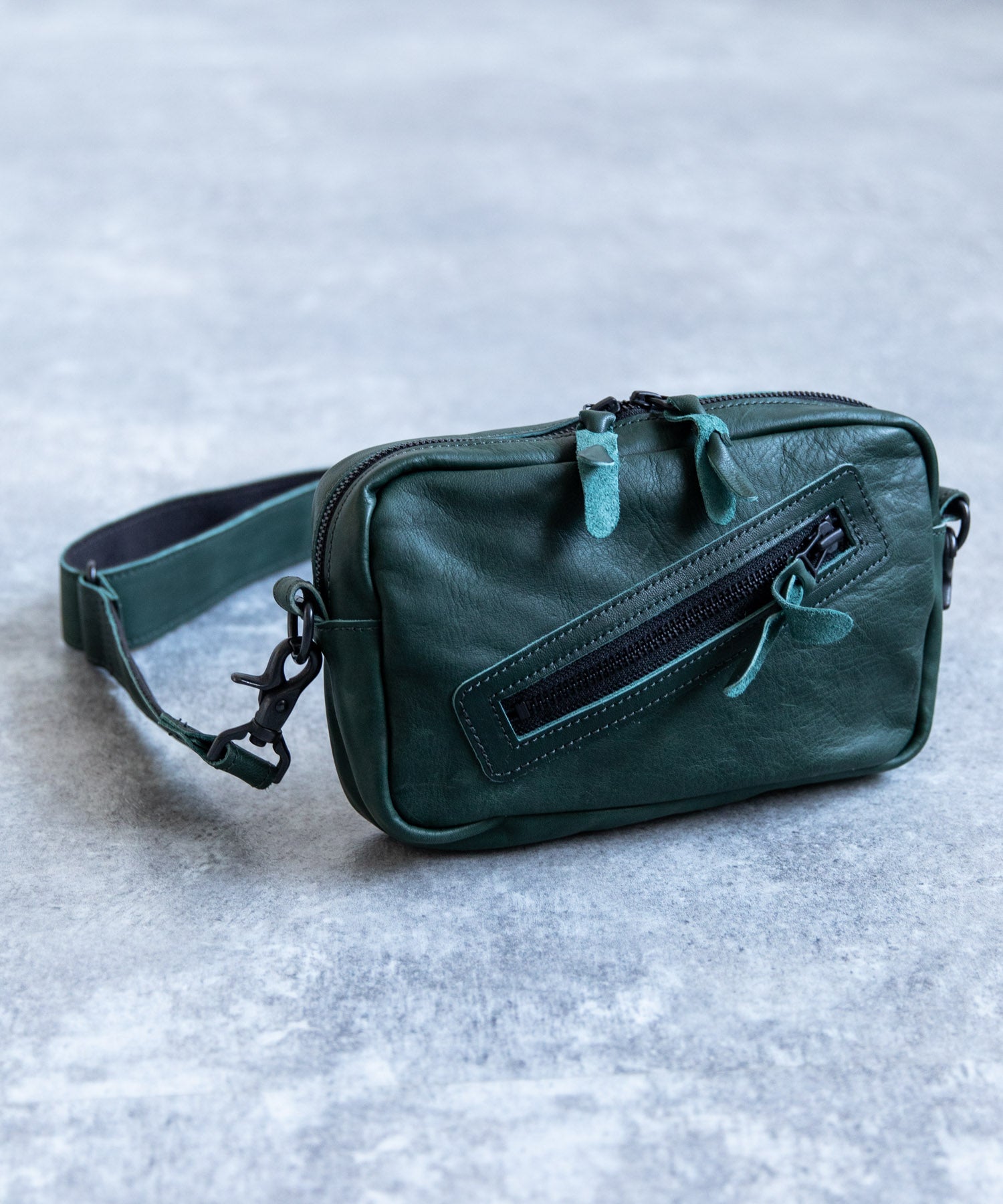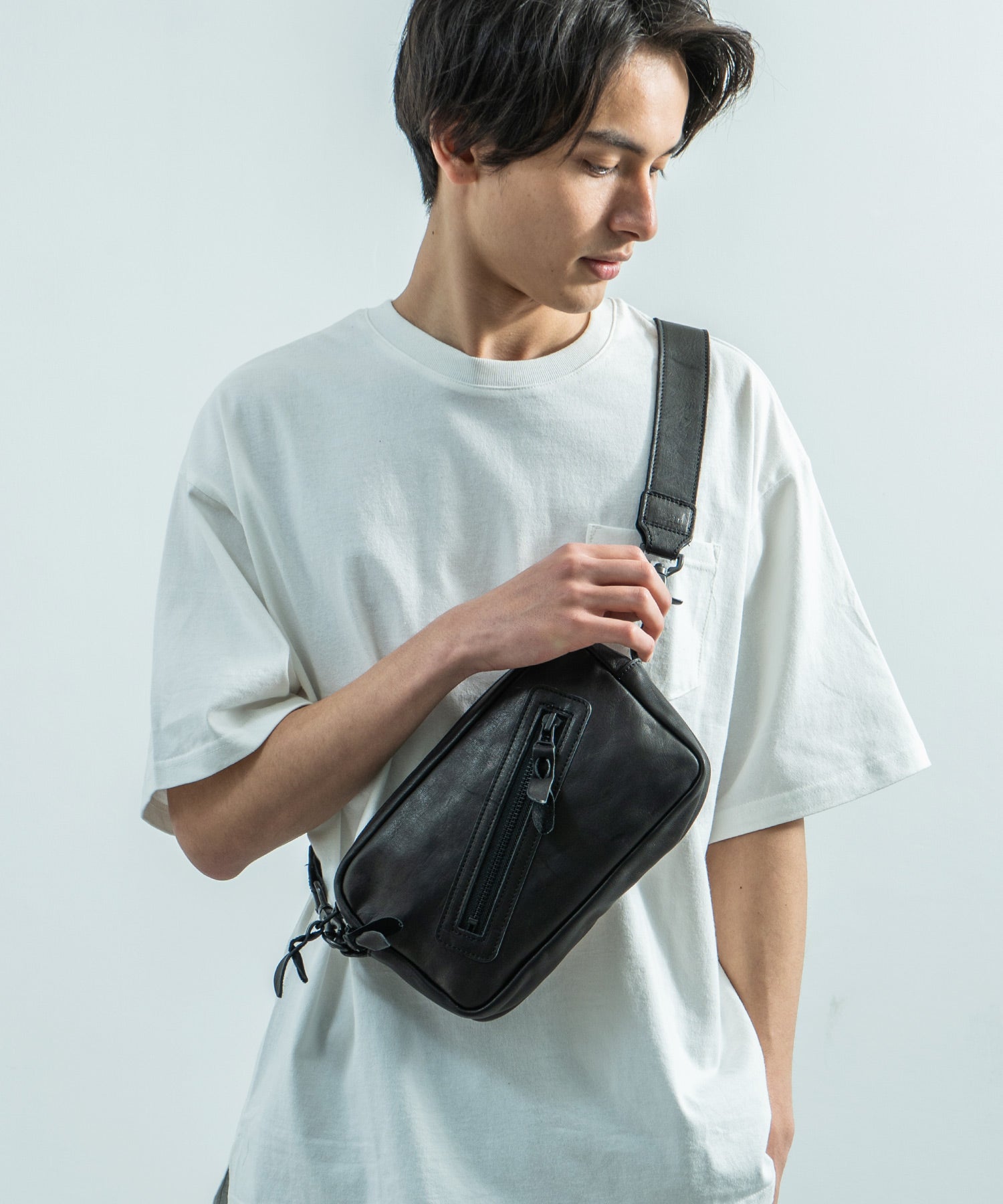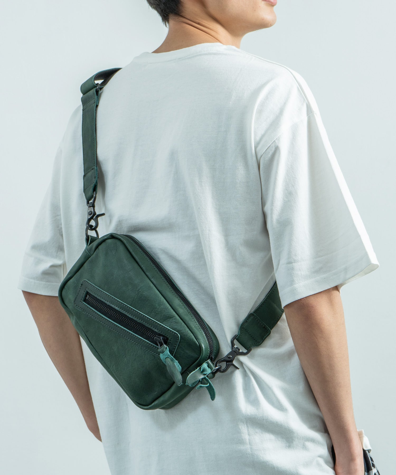 デイユースにも重宝する2WAY仕様 革好きにはたまらない馬革スクエアジップショルダー。