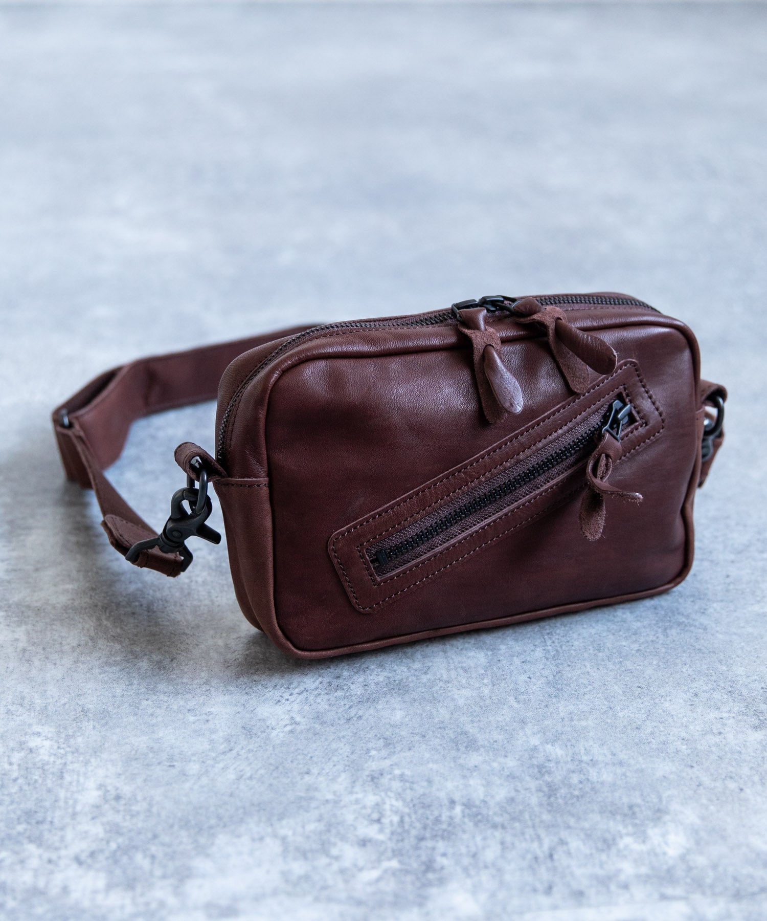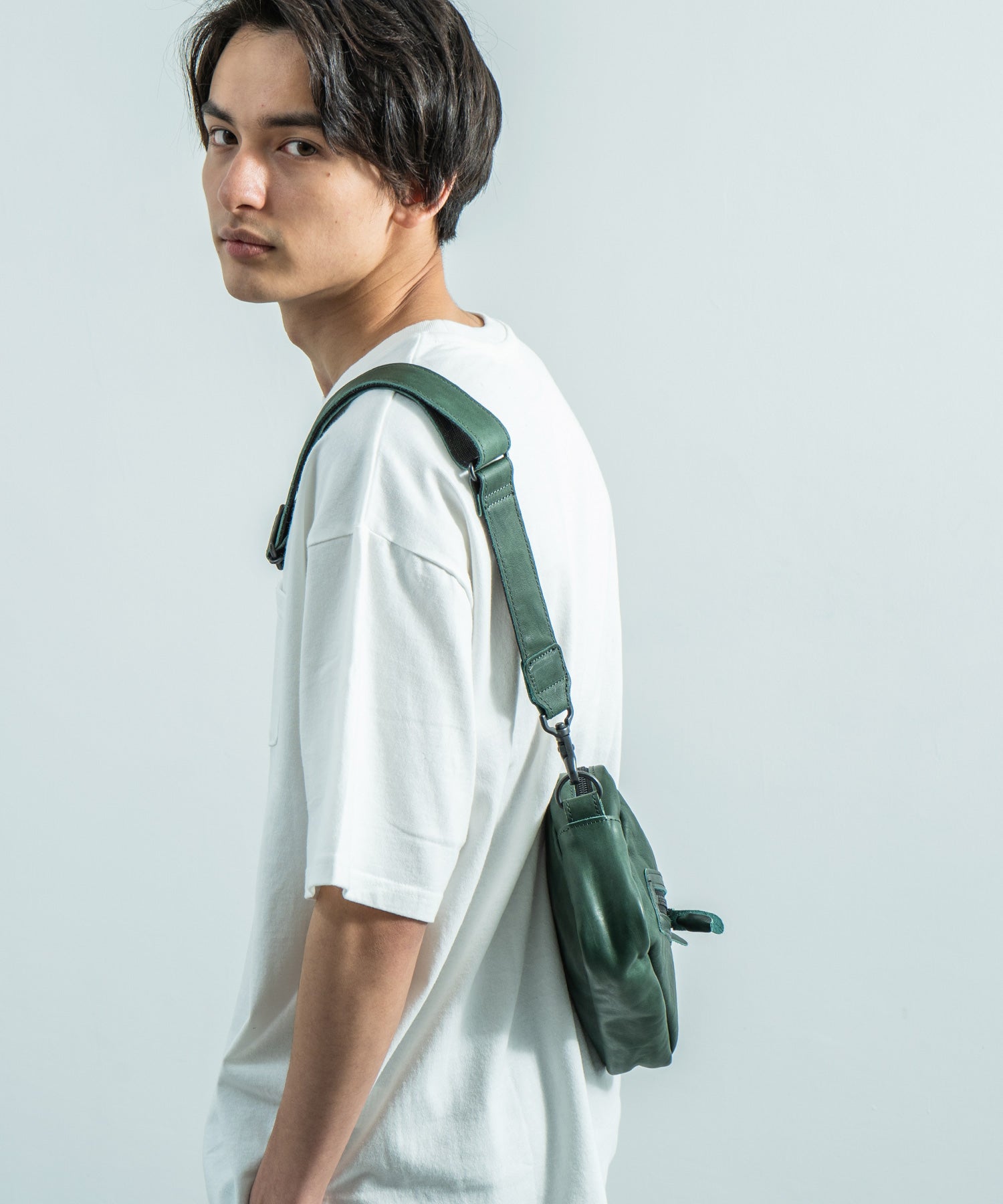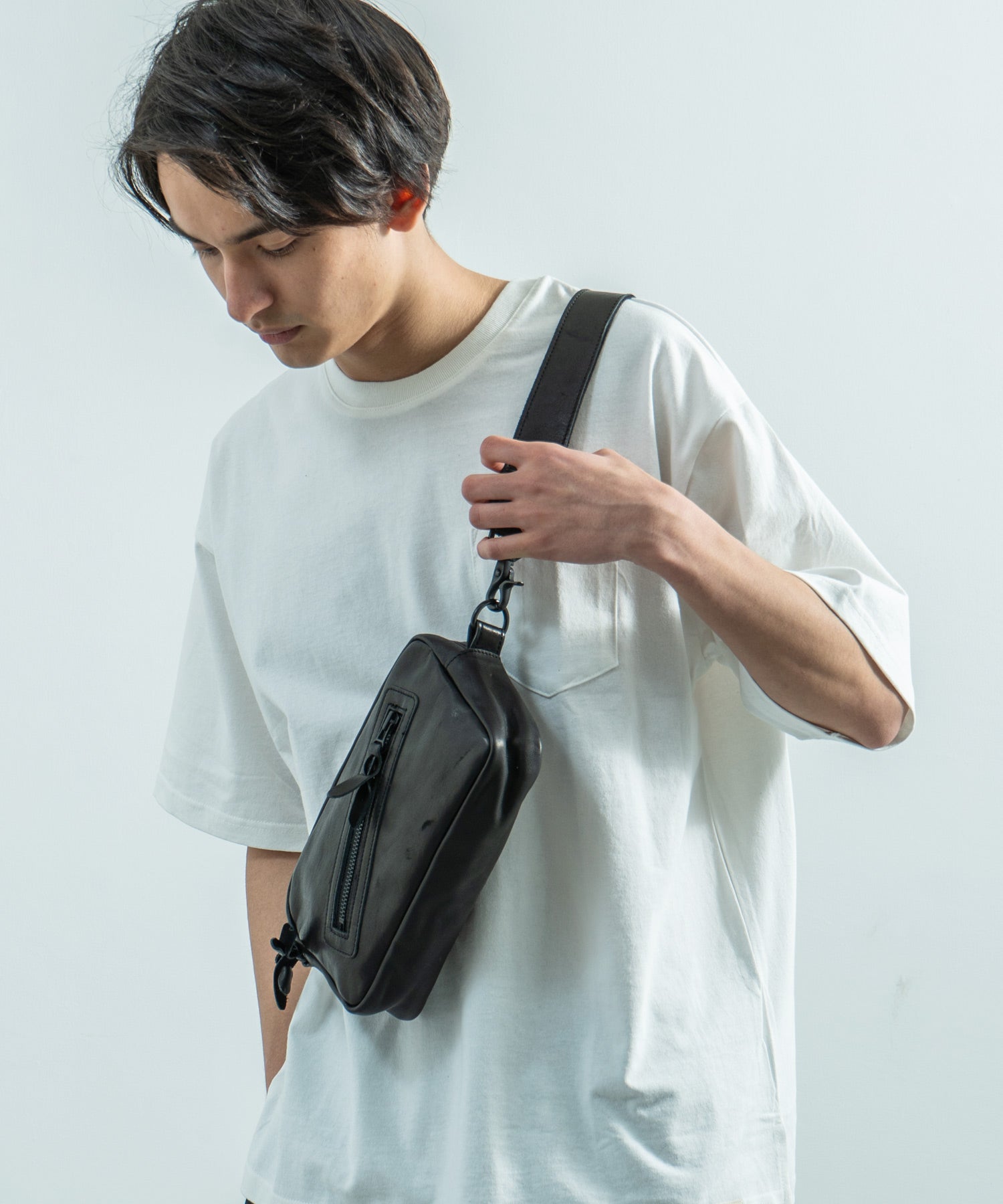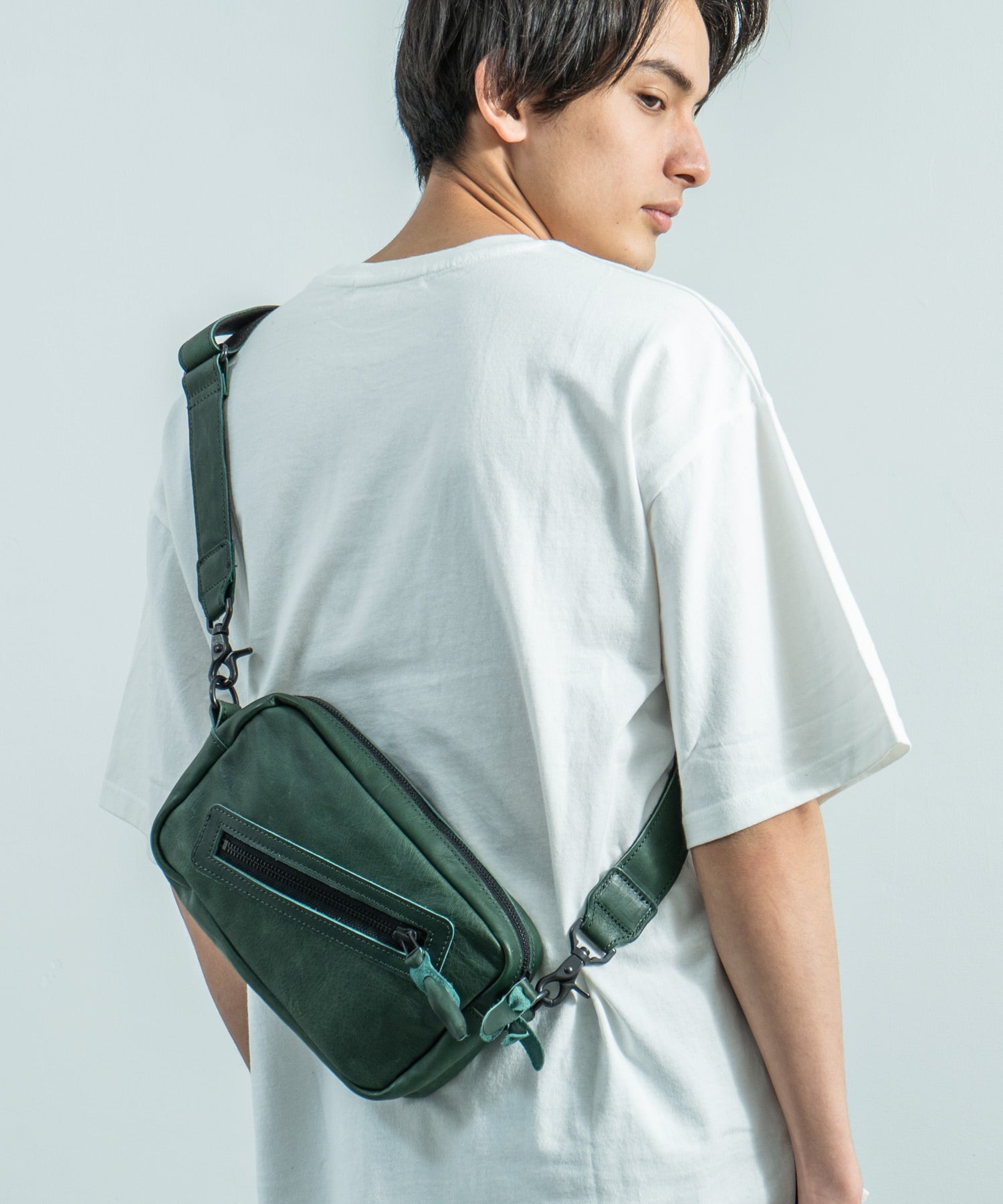 デイユースにも重宝する2WAY仕様 革好きにはたまらない馬革スクエアジップショルダー。