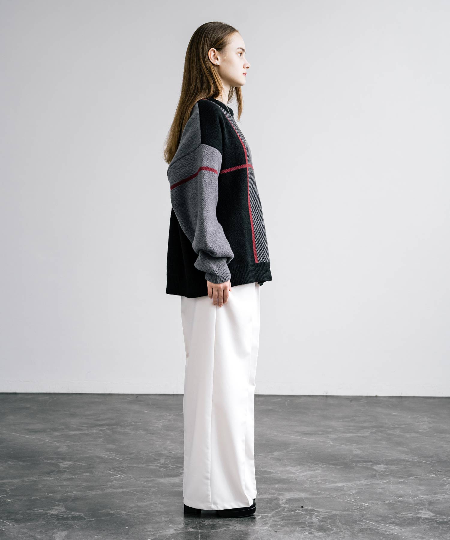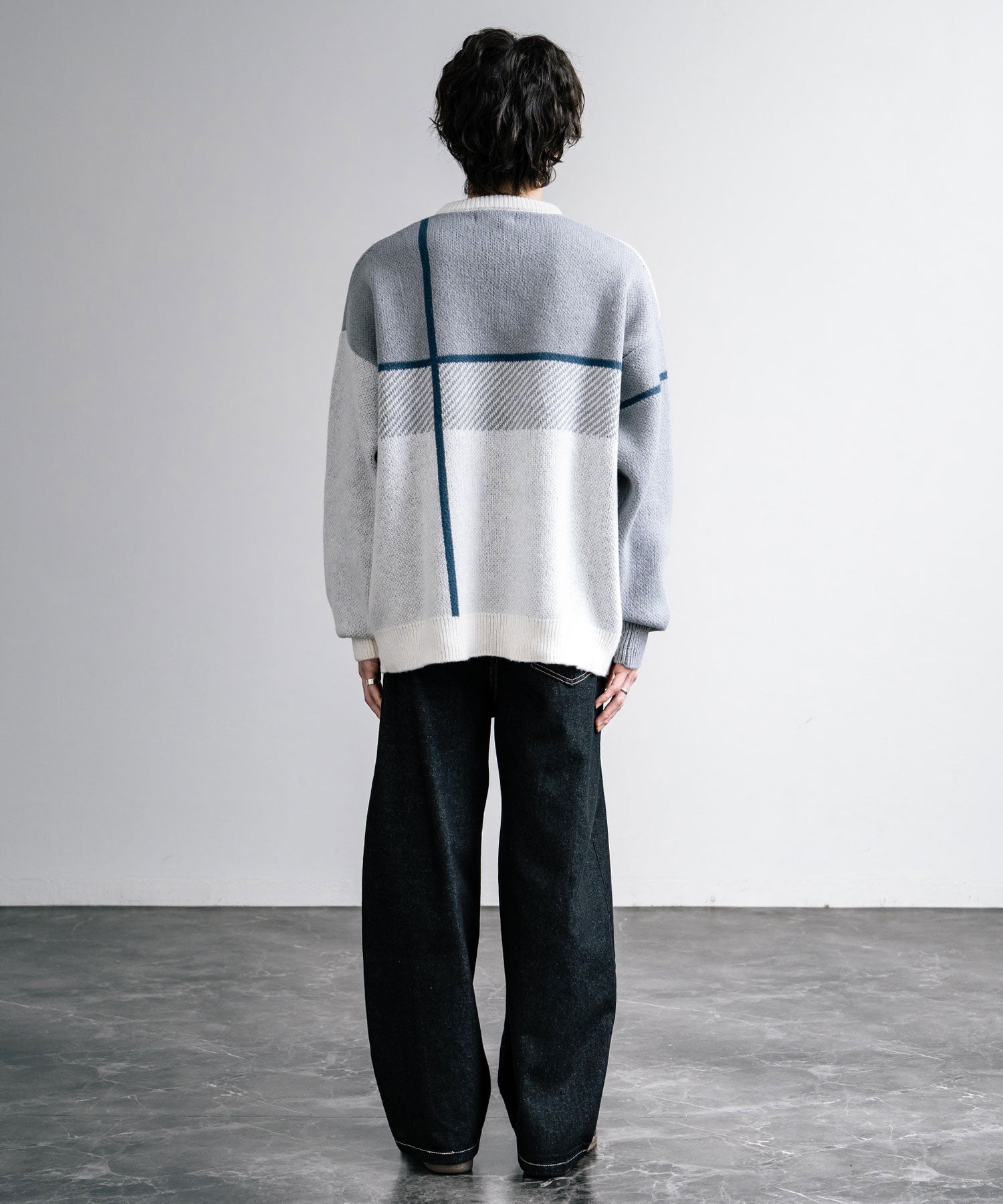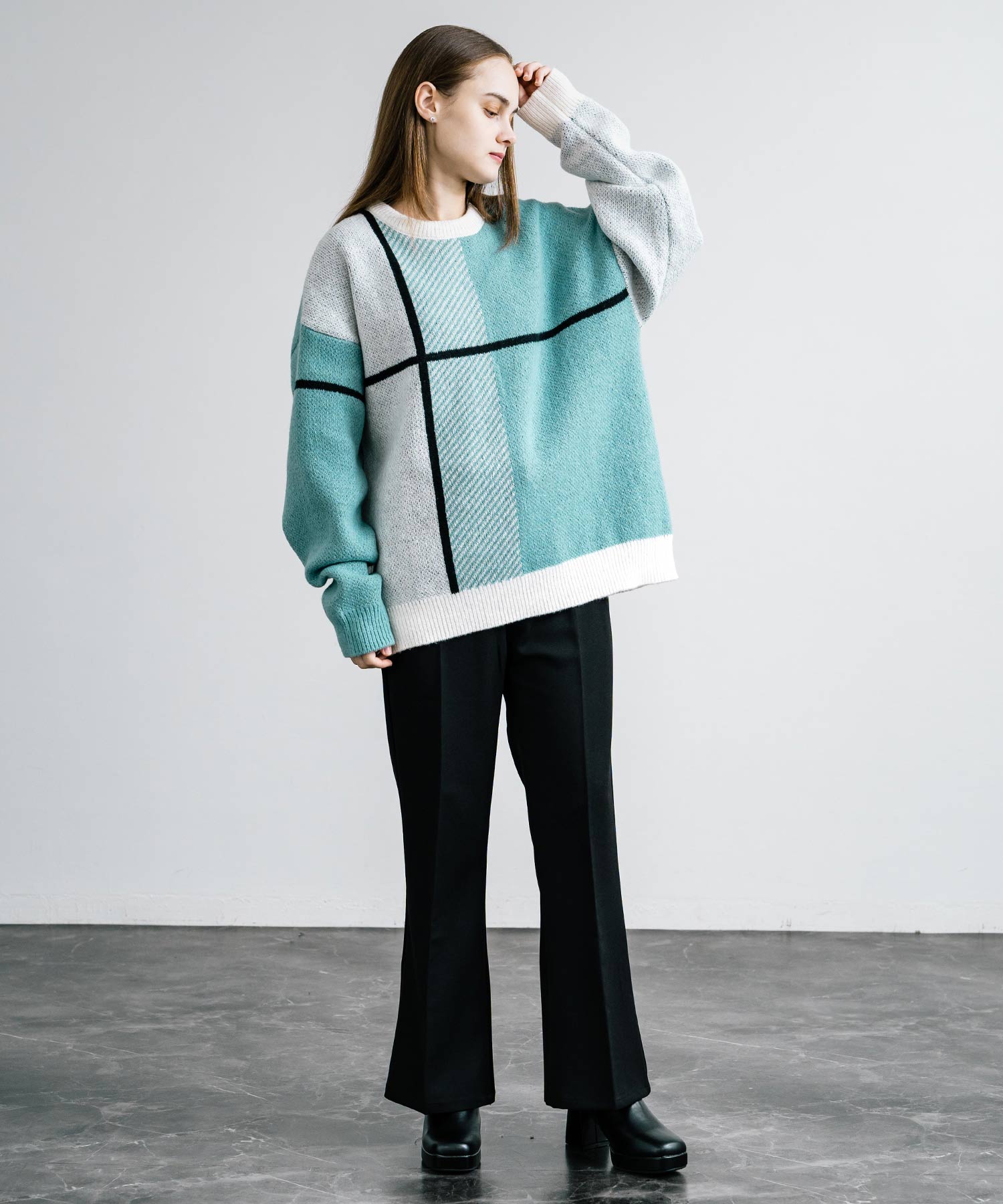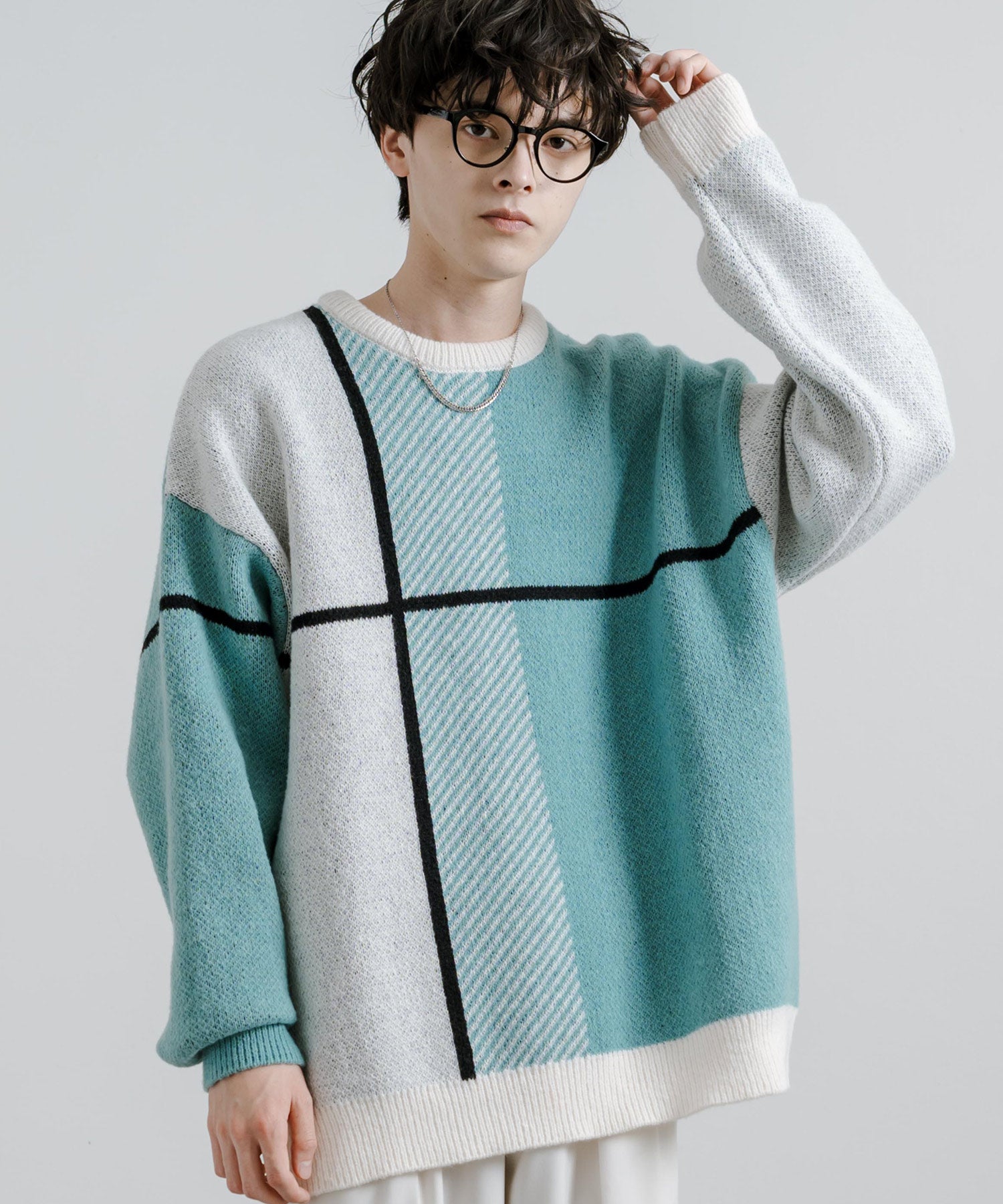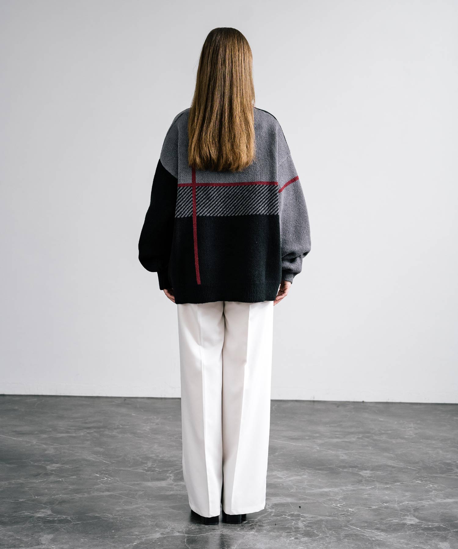 コーデの主役になる、オーバーサイズクロスチェック柄クルーニットセーター。