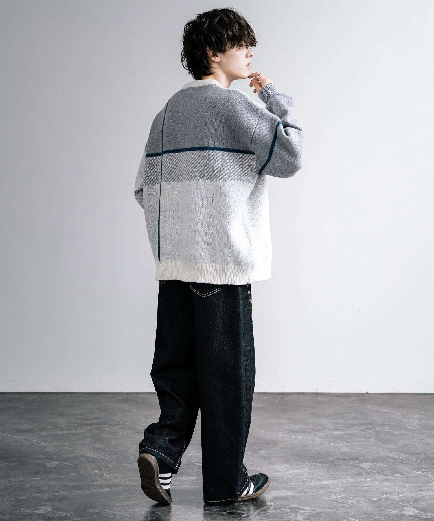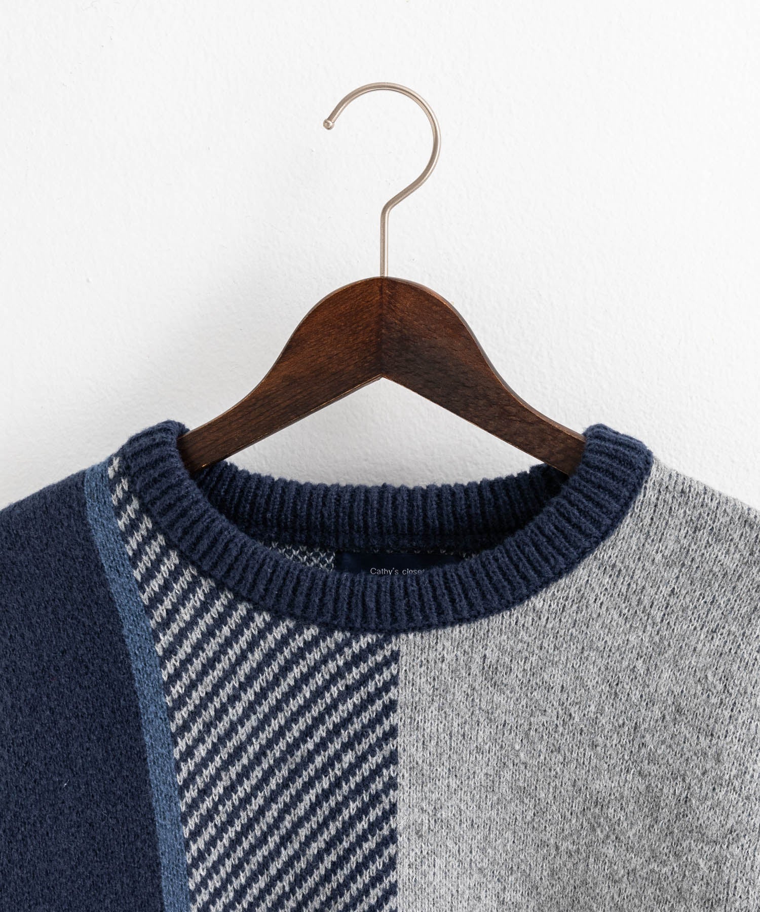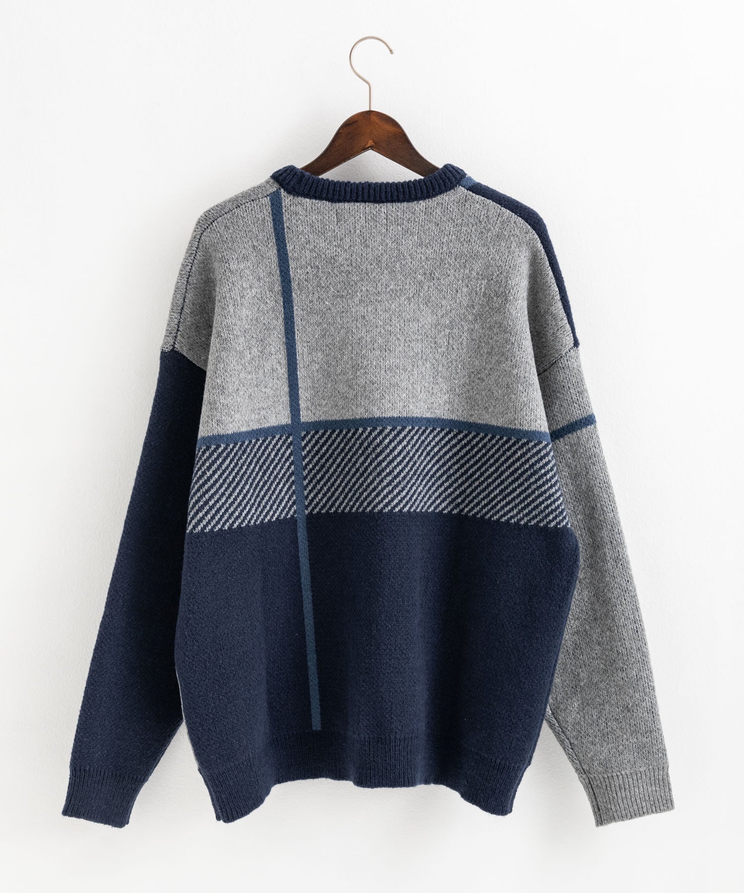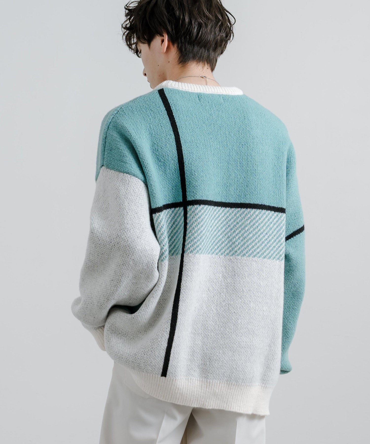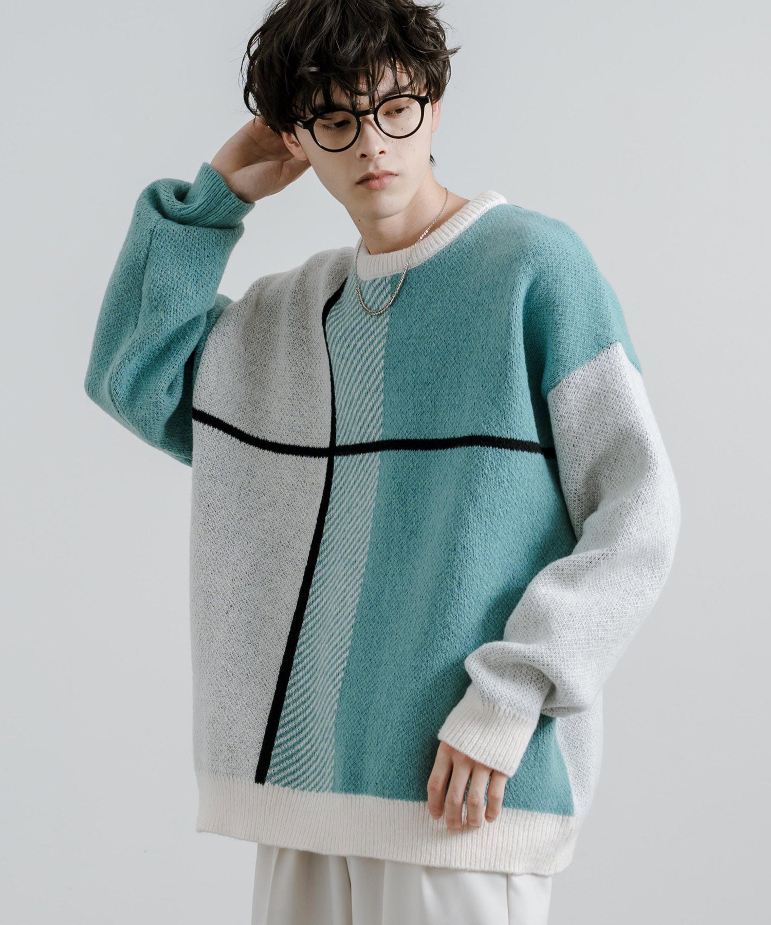 コーデの主役になる、オーバーサイズクロスチェック柄クルーニットセーター。