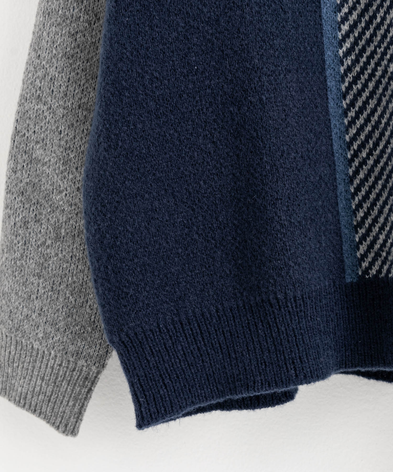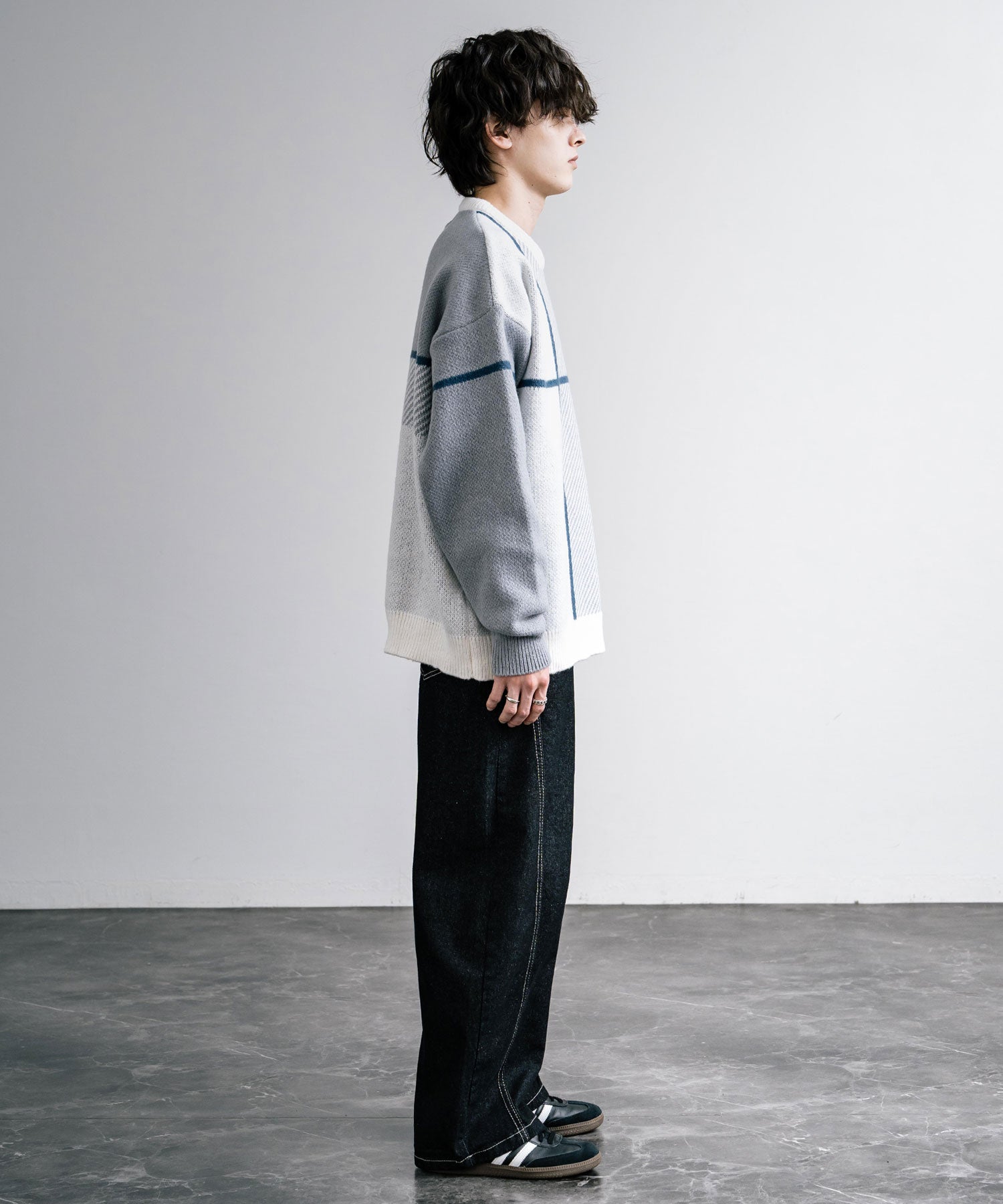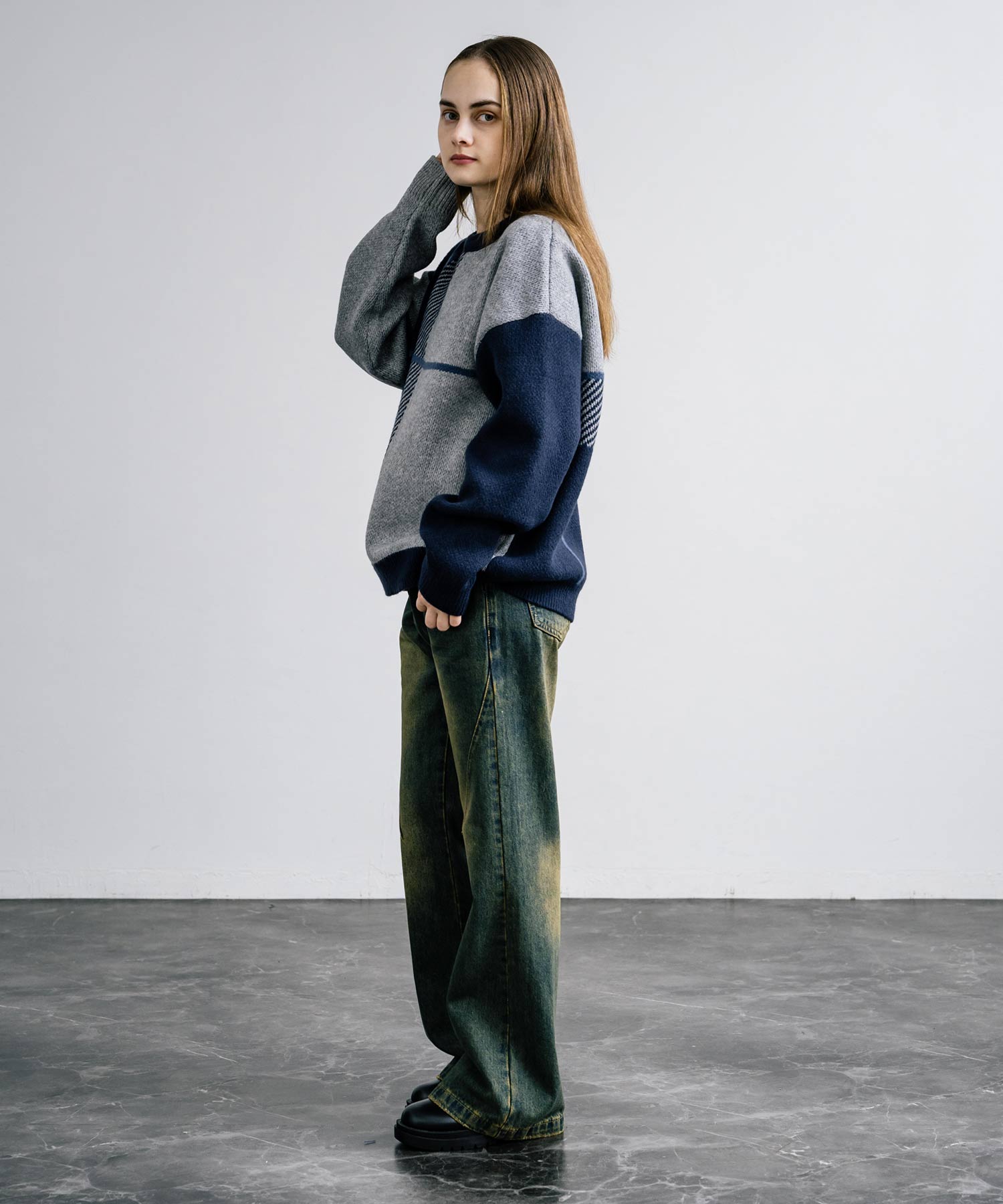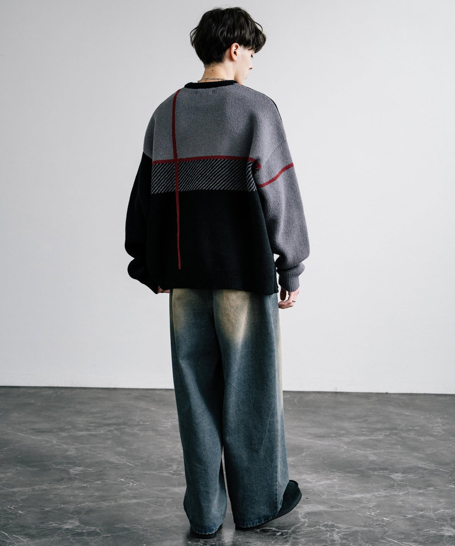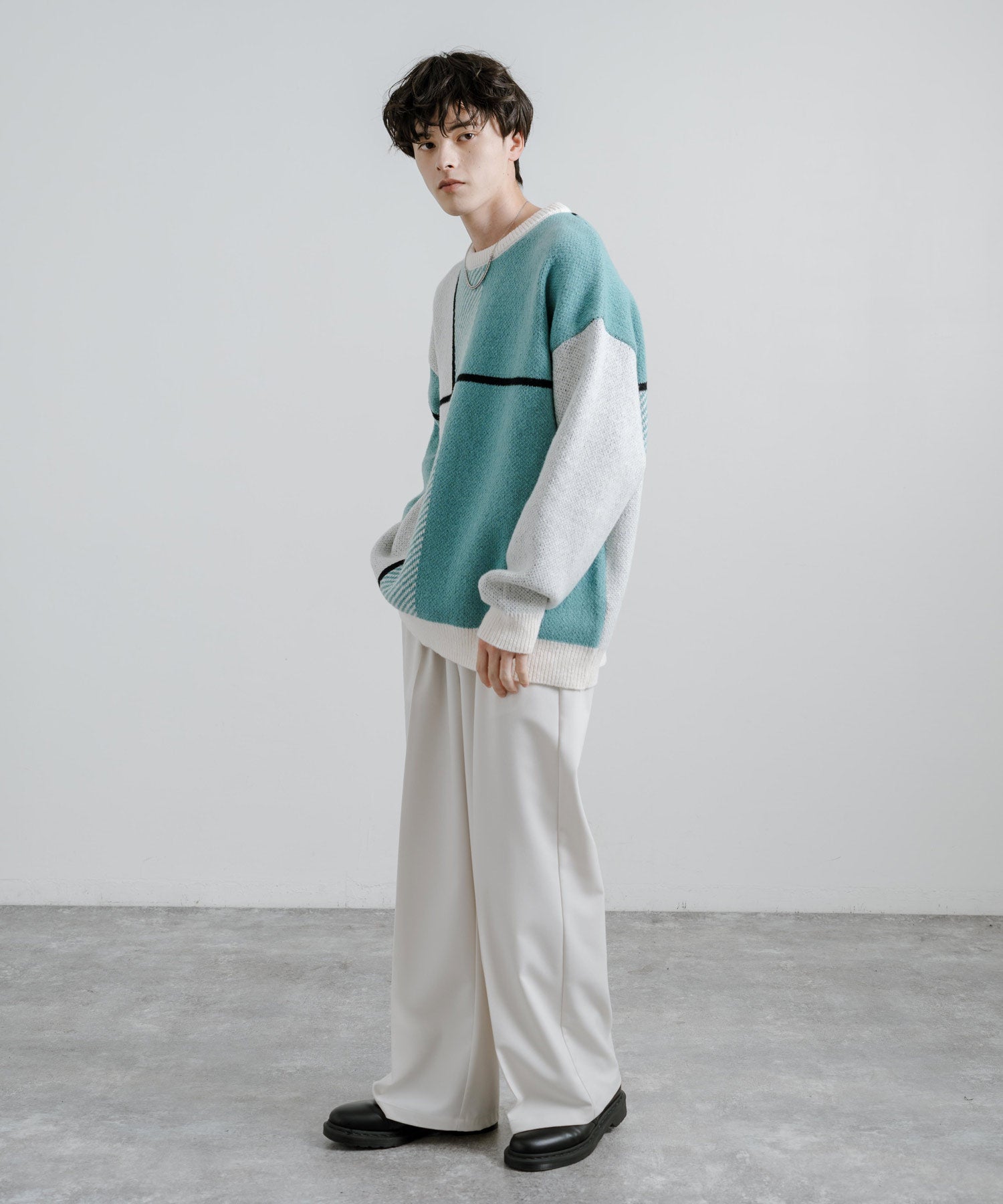 コーデの主役になる、オーバーサイズクロスチェック柄クルーニットセーター。