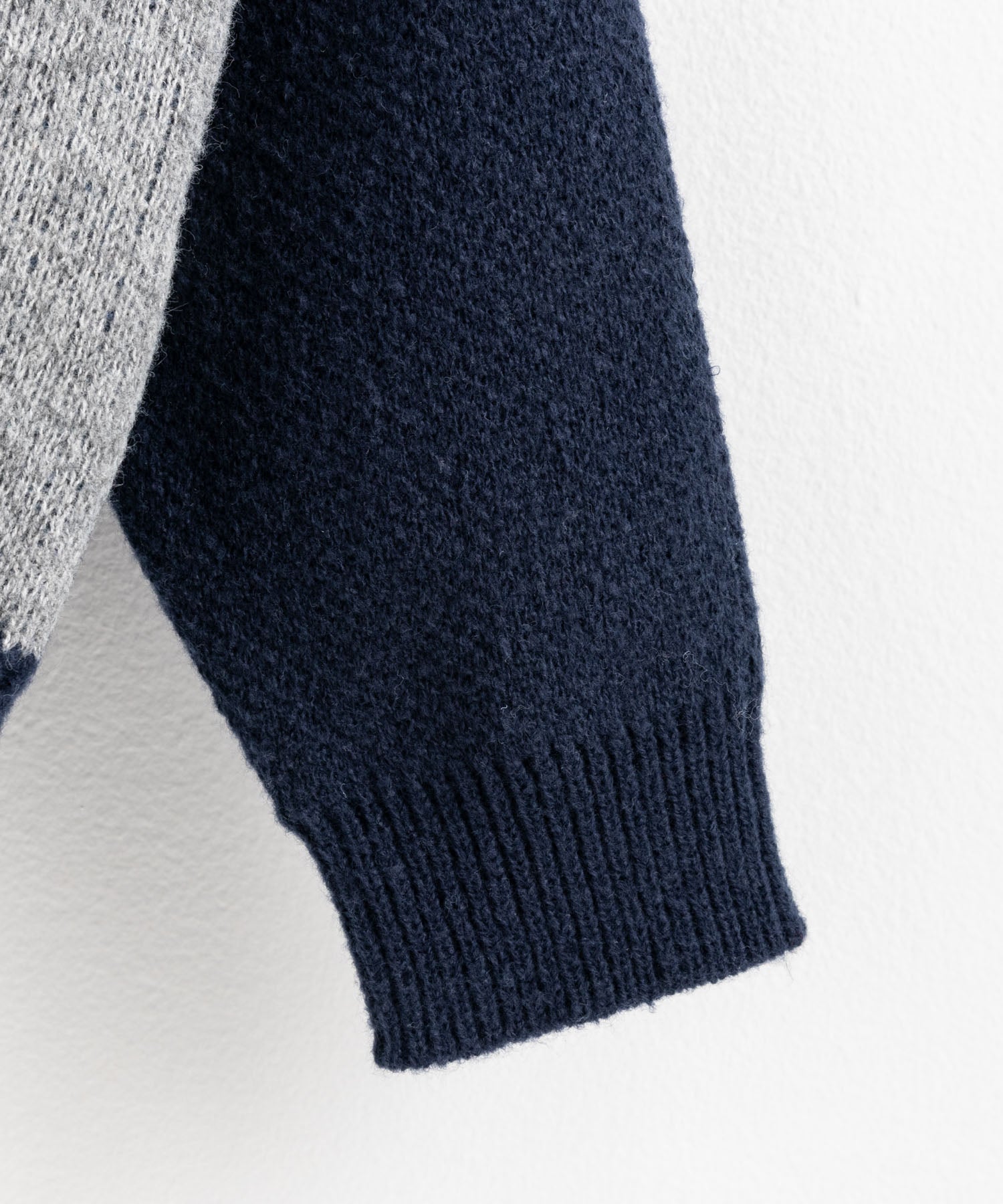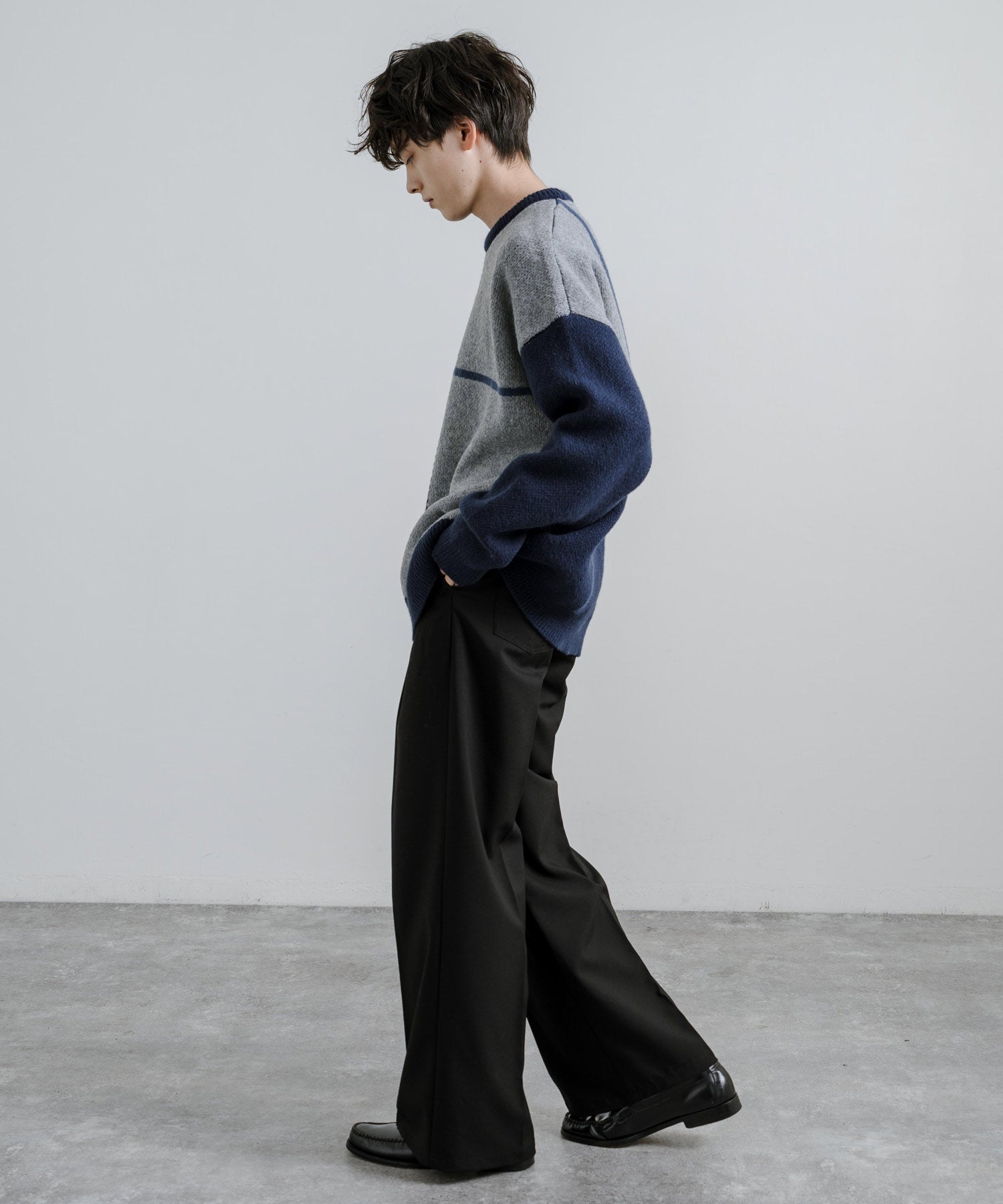 首元は襟のあるシャツやハイネックTとも重ね着しやすいクルーネック。