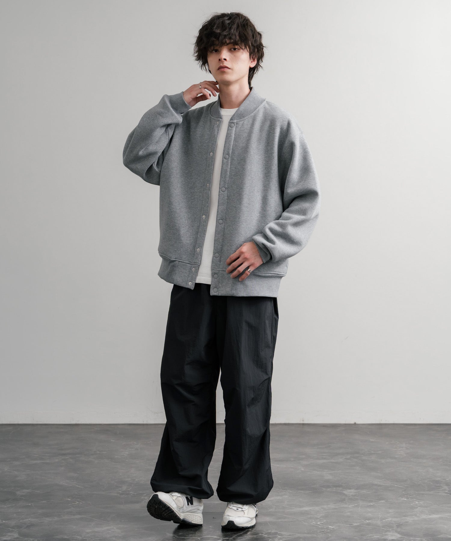 スナップボタン仕様で使い勝手が良く、ブルゾンテイストのデザインにマッチ。