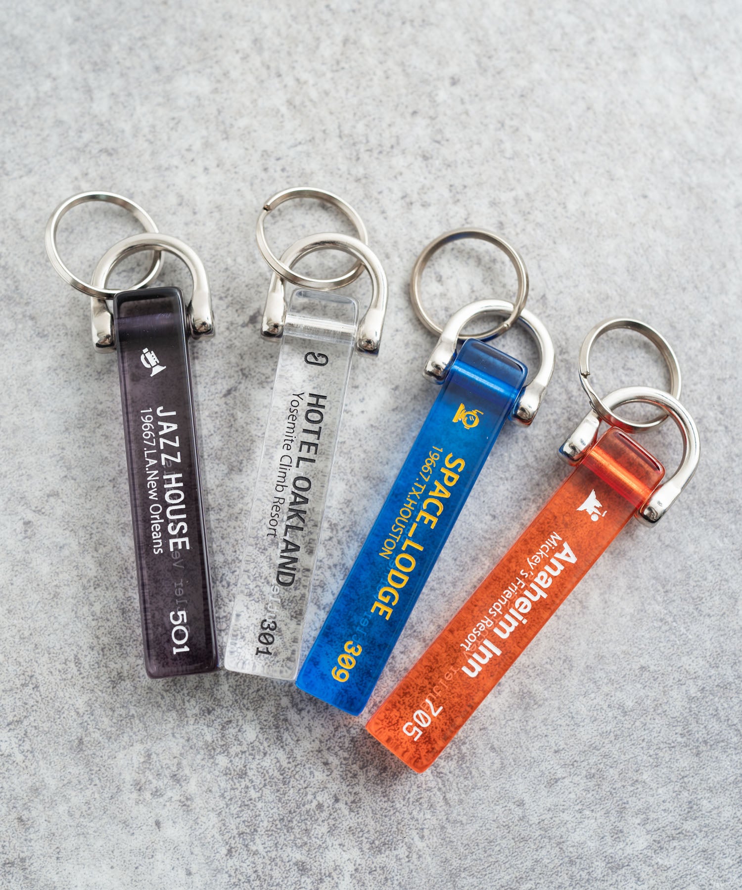 アメリカの都市の名所から架空ホテルをイメージした国産キーホルダー。