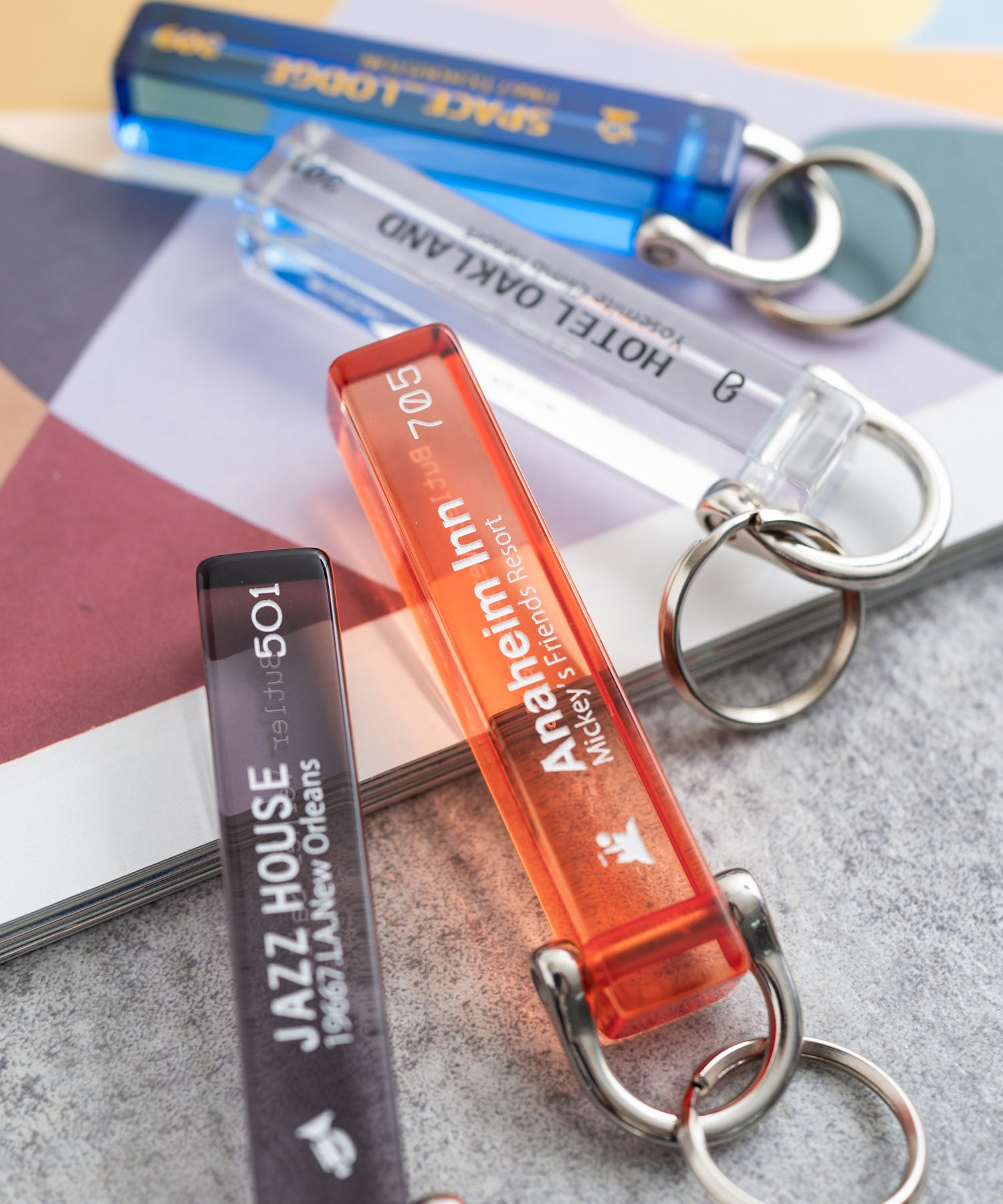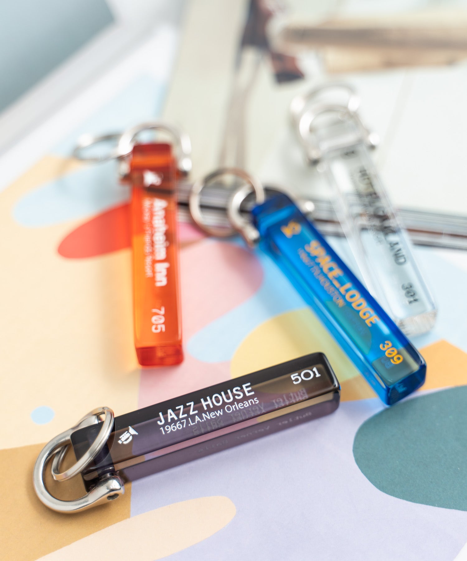 今ではほとんど見なくなったホテルのキーホルダーをモチーフにしています。