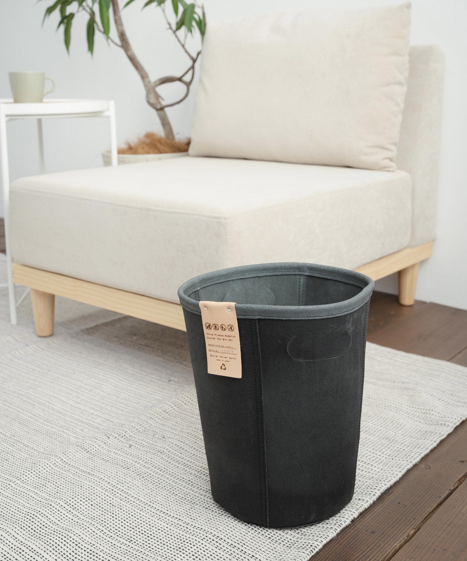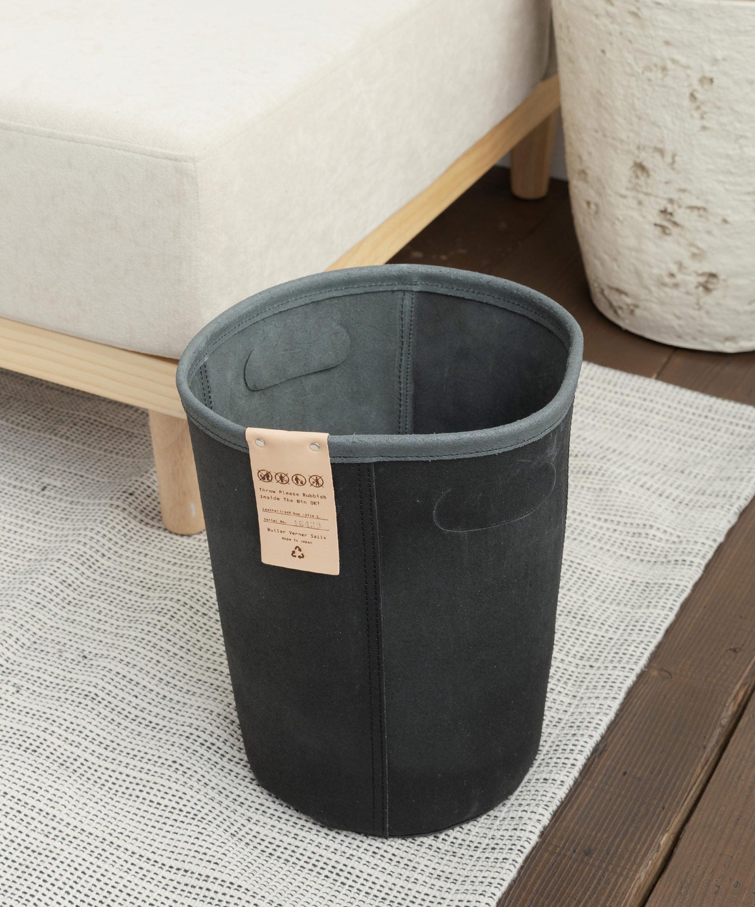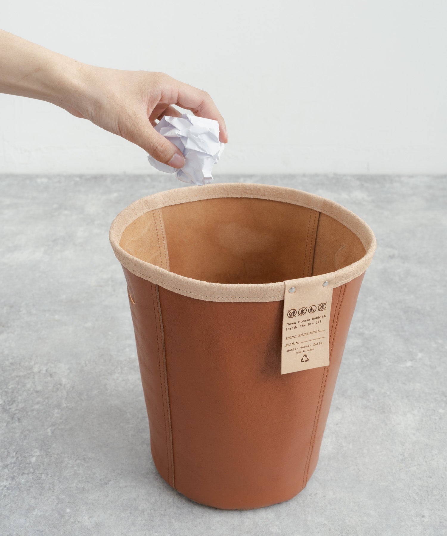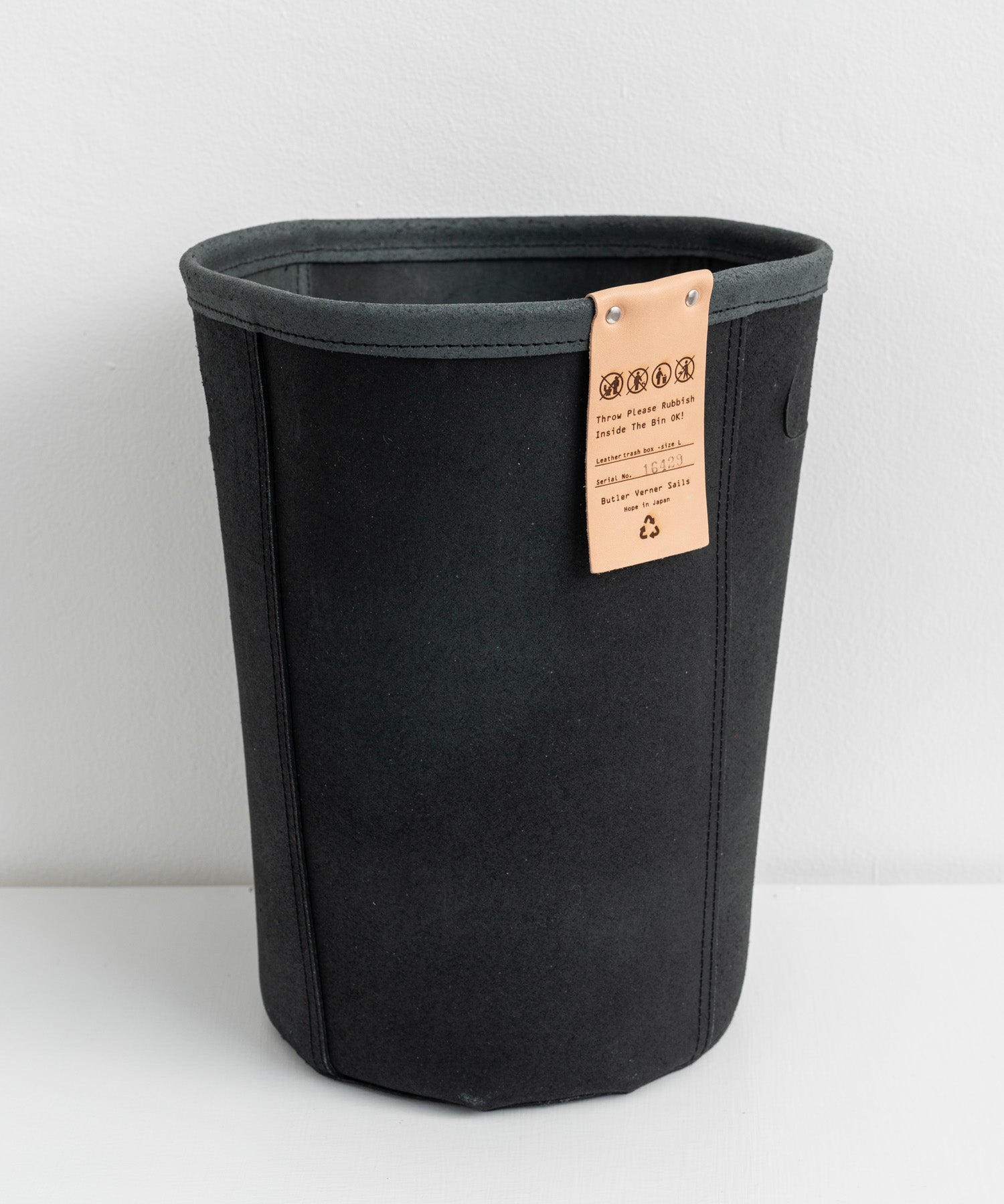 本ヌメの床革ブラックを使用したトラッシュボックス。