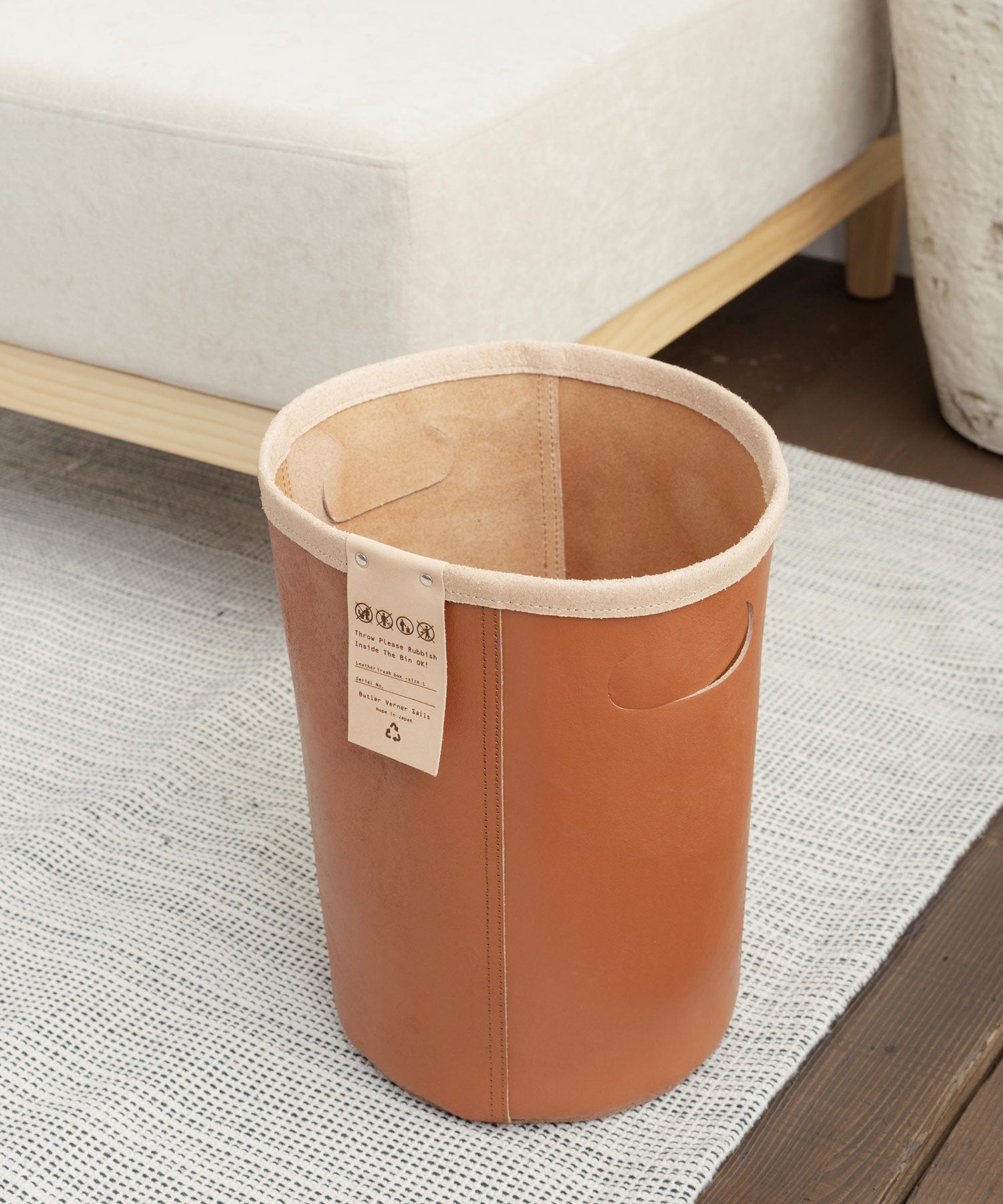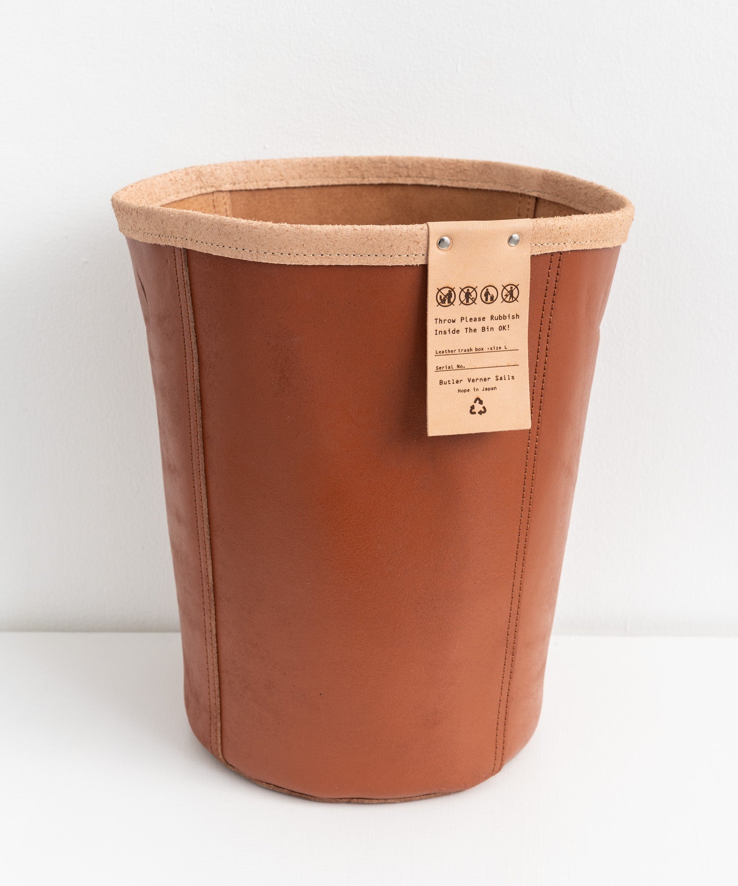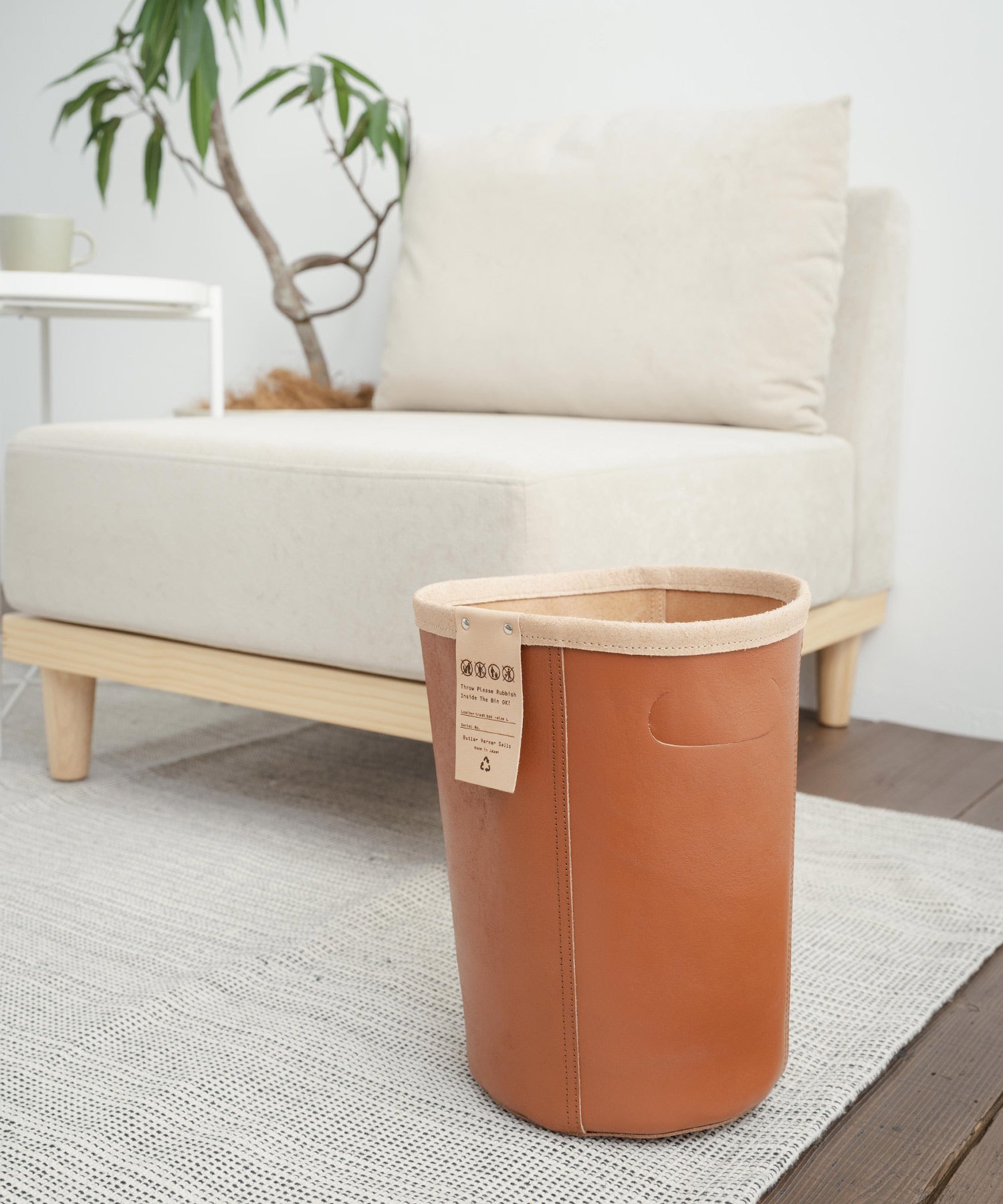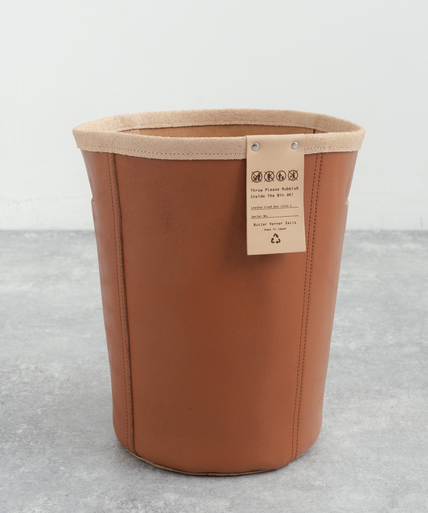 本ヌメの床革ブラックを使用したトラッシュボックス。