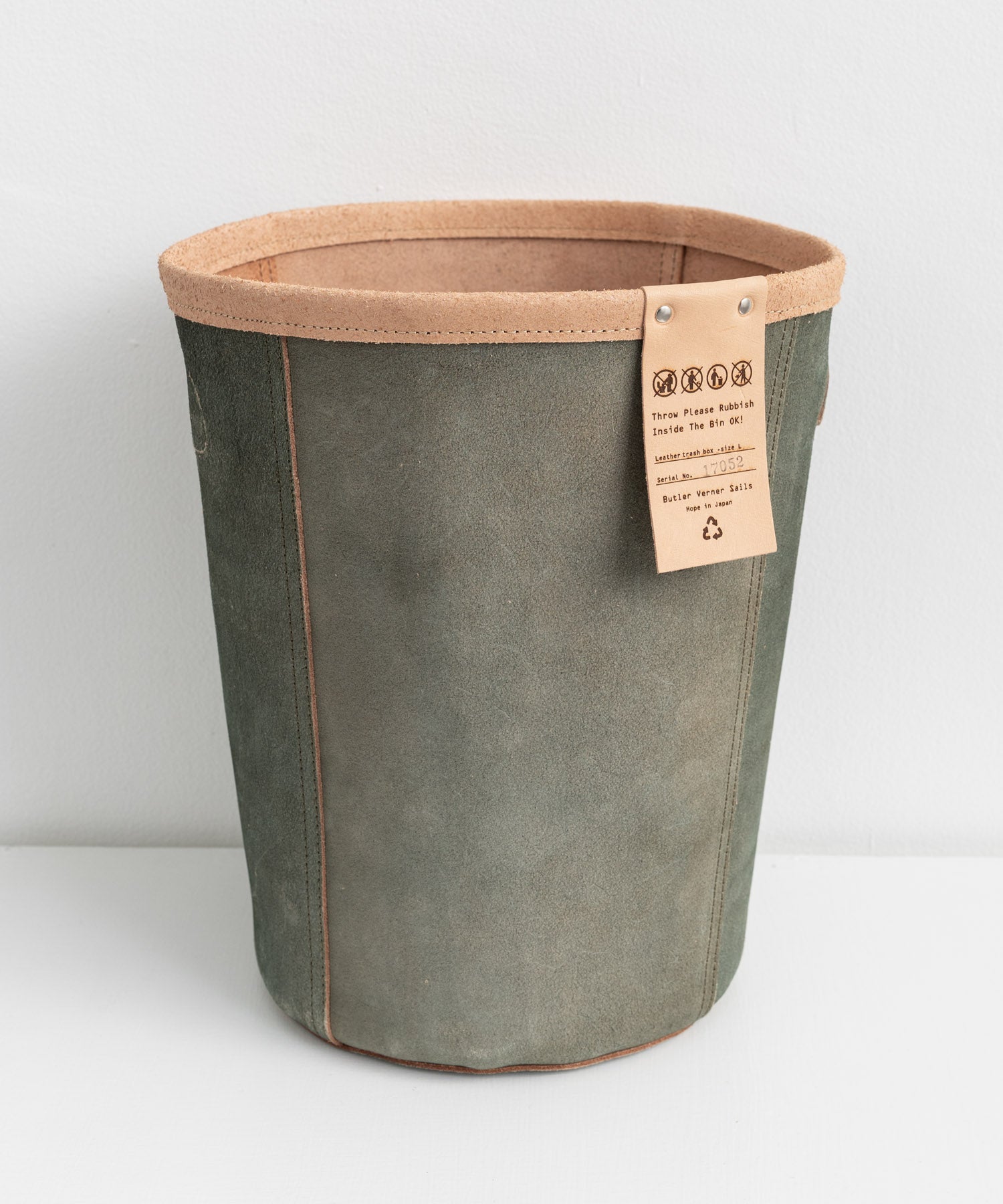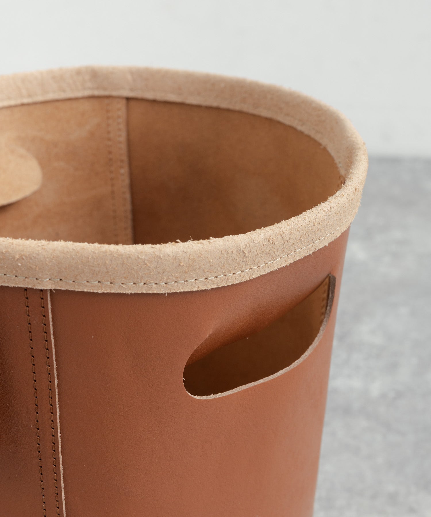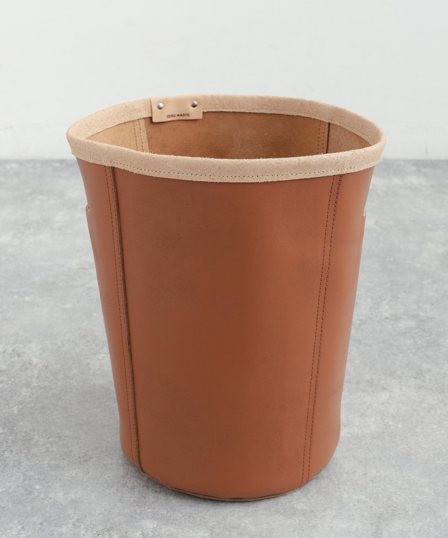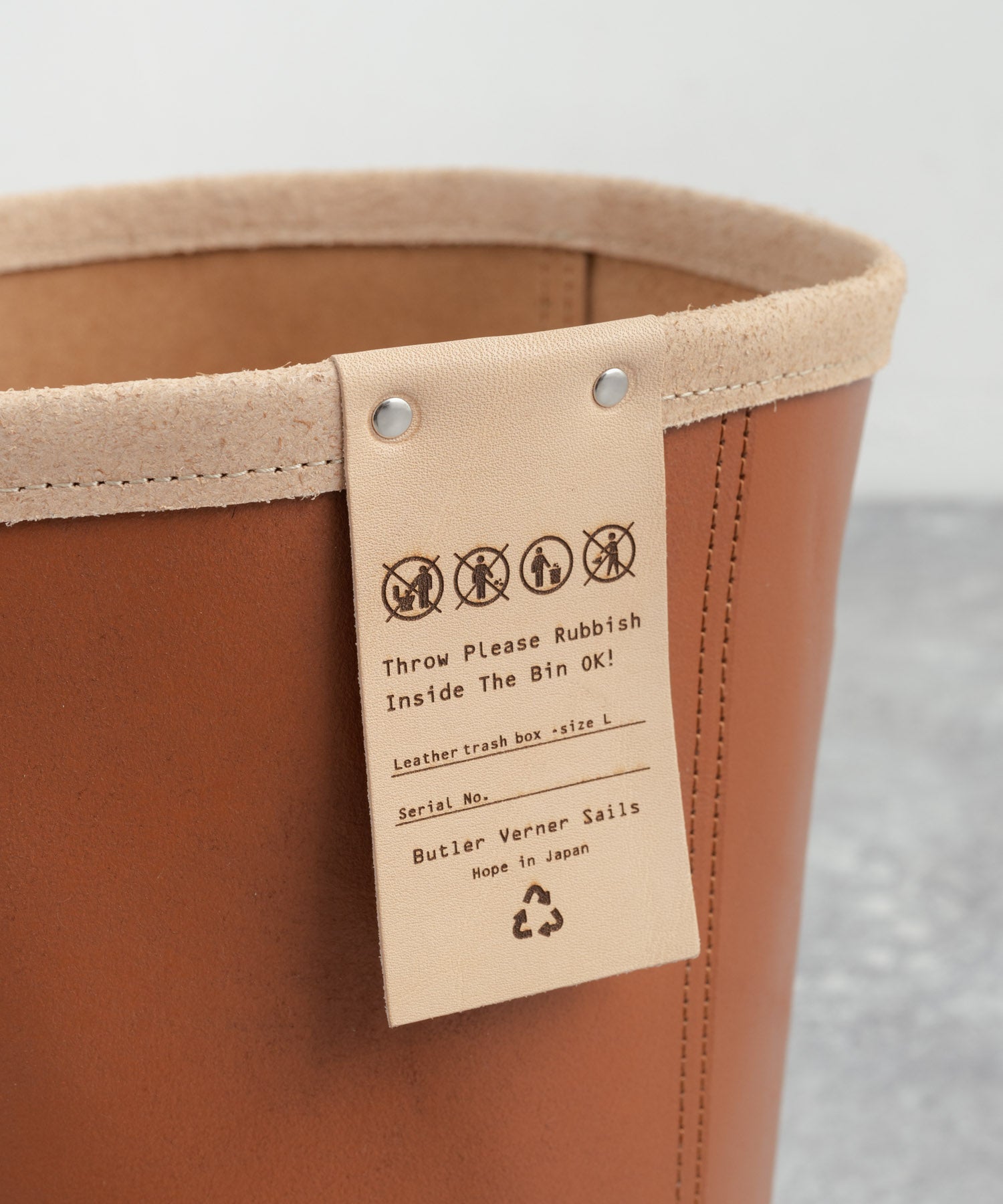 本ヌメの床革ブラックを使用したトラッシュボックス。