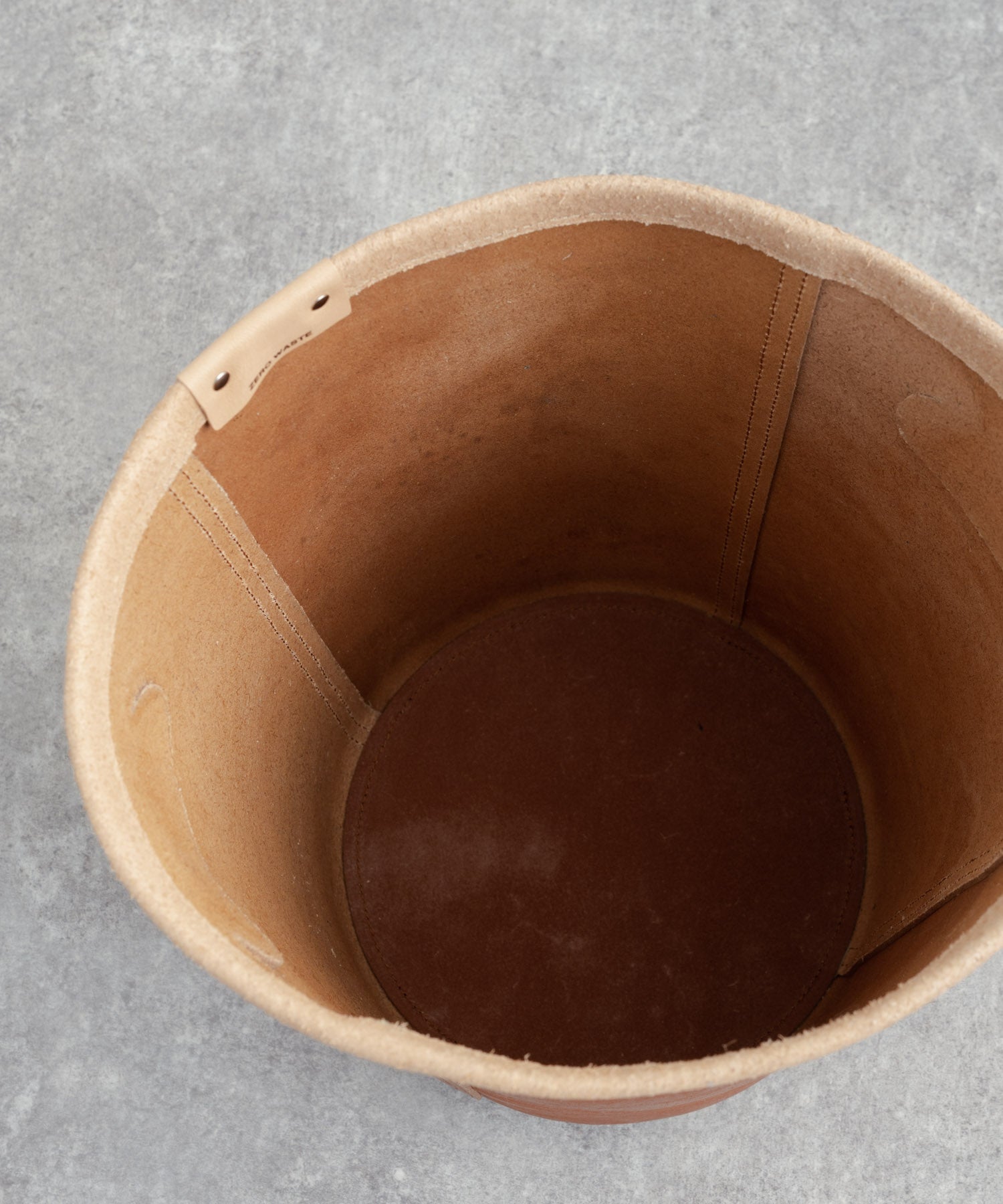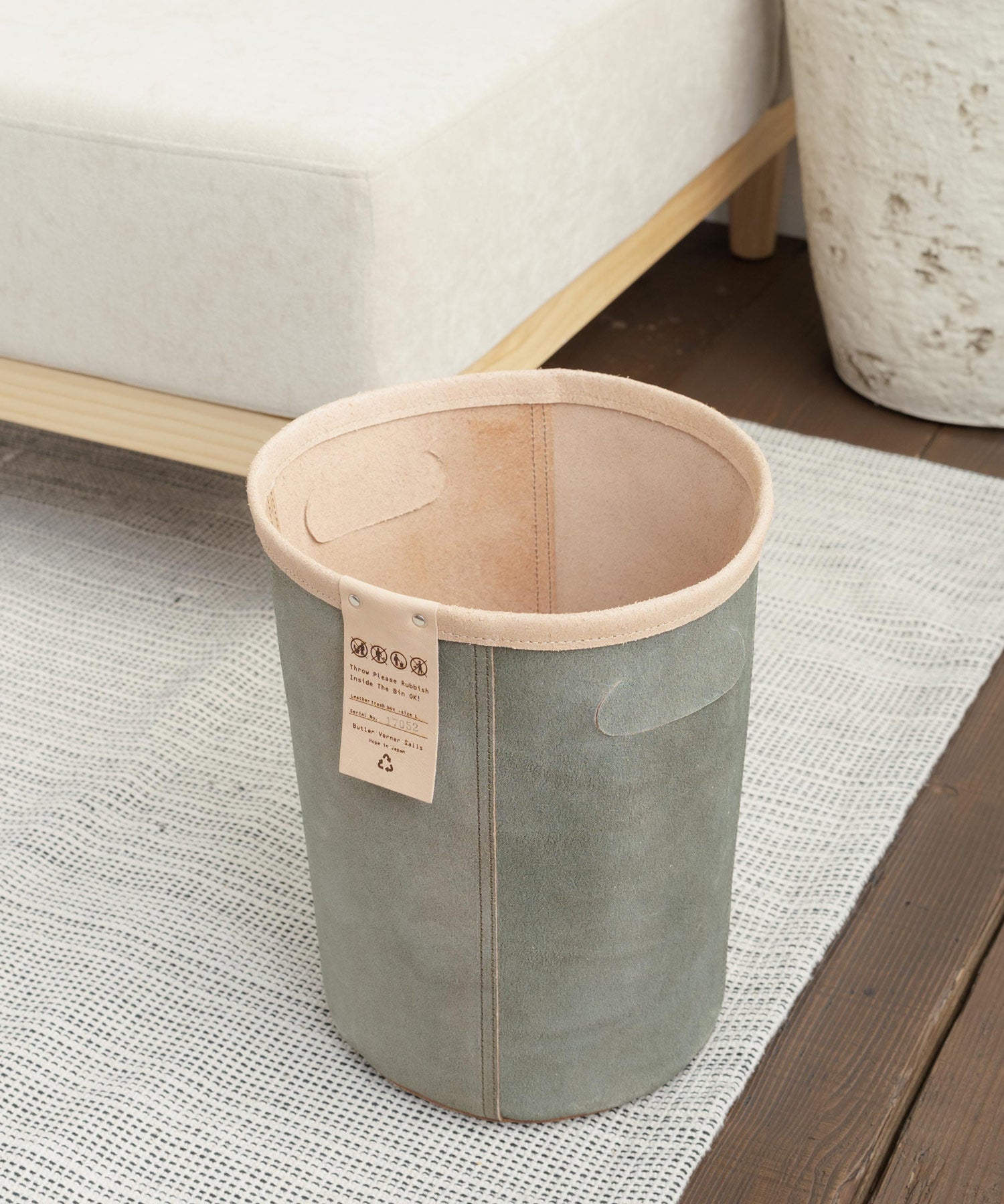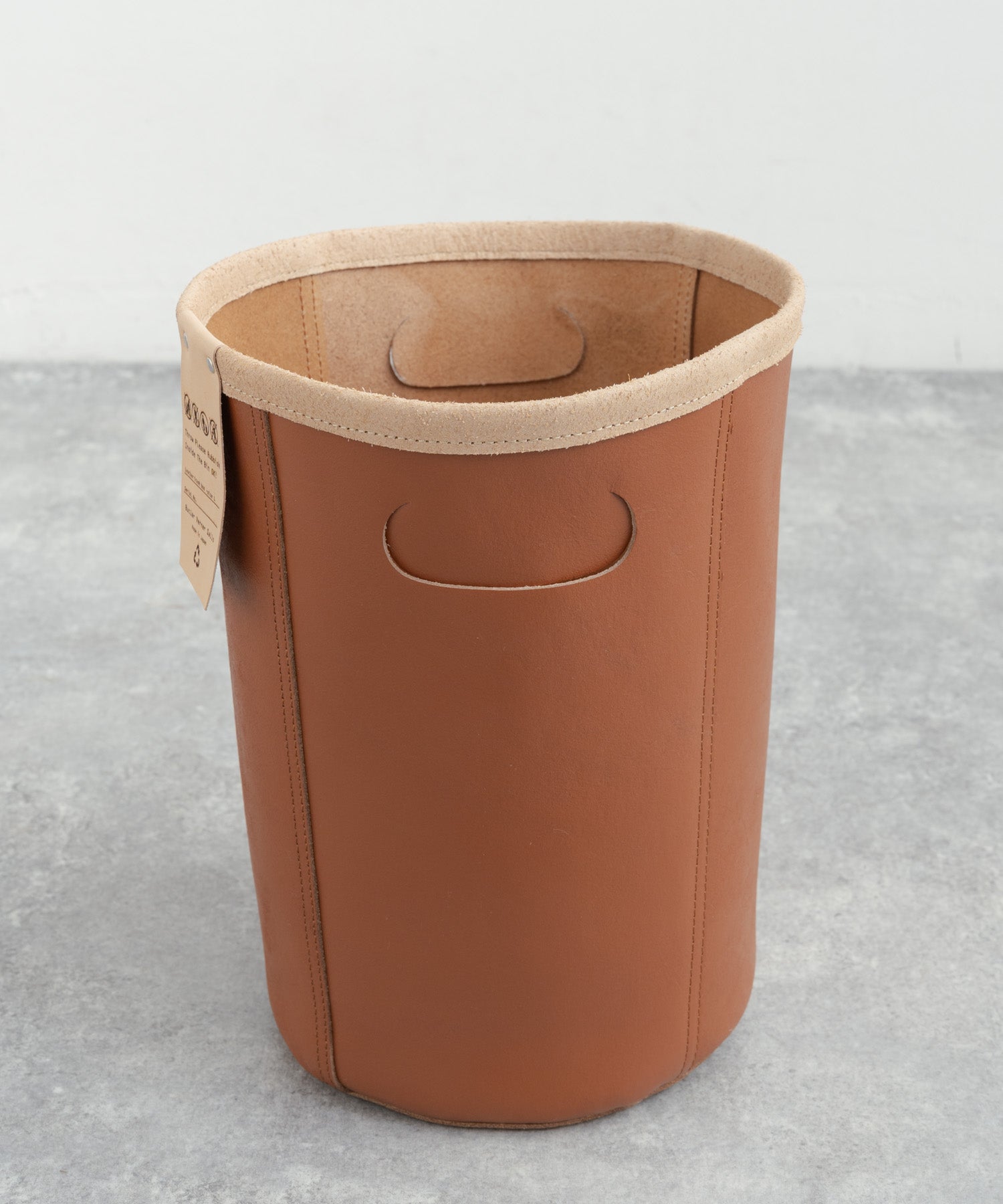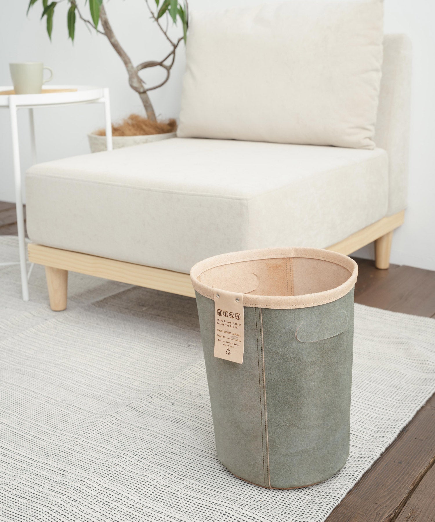 本ヌメの床革ブラックを使用したトラッシュボックス。