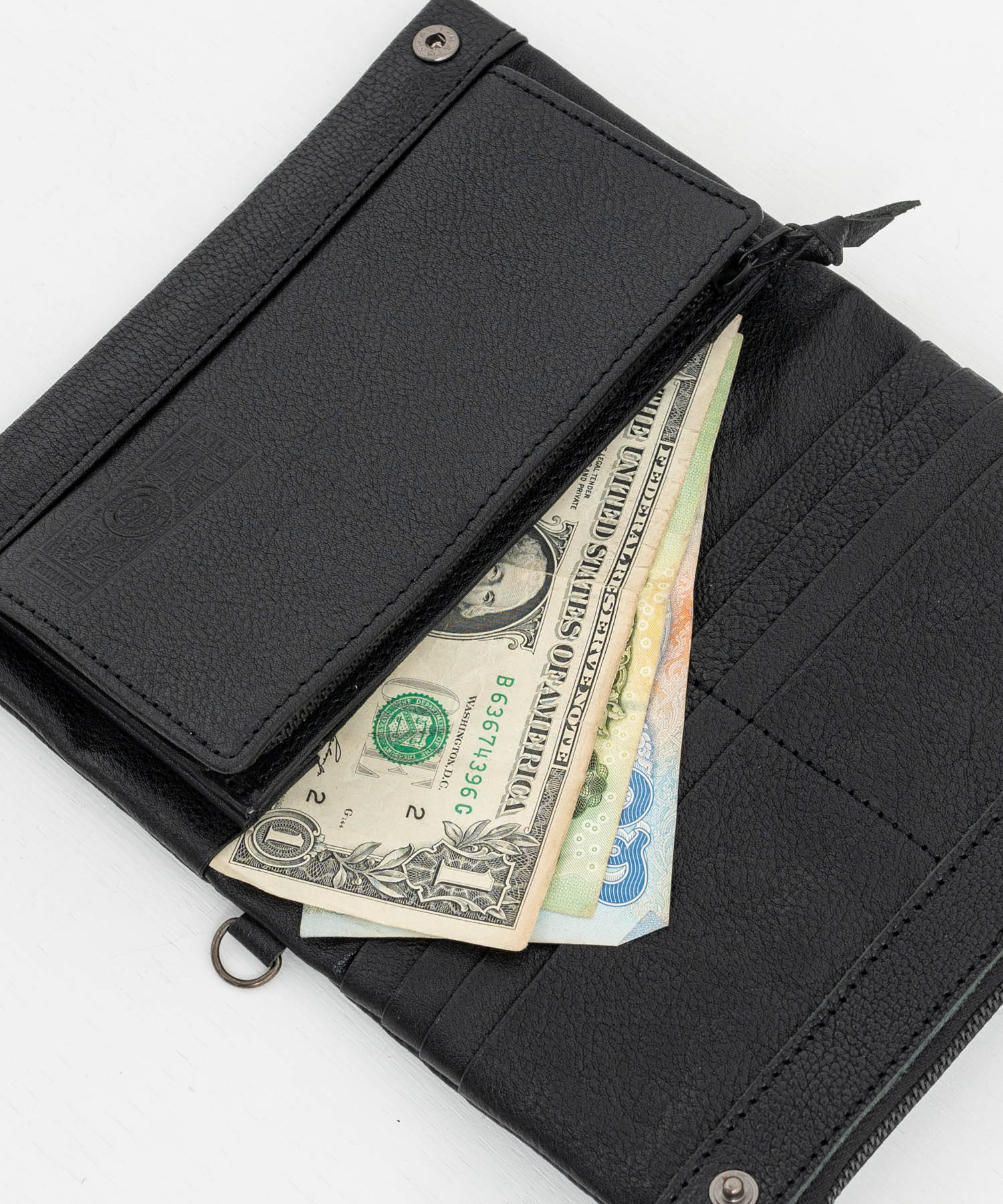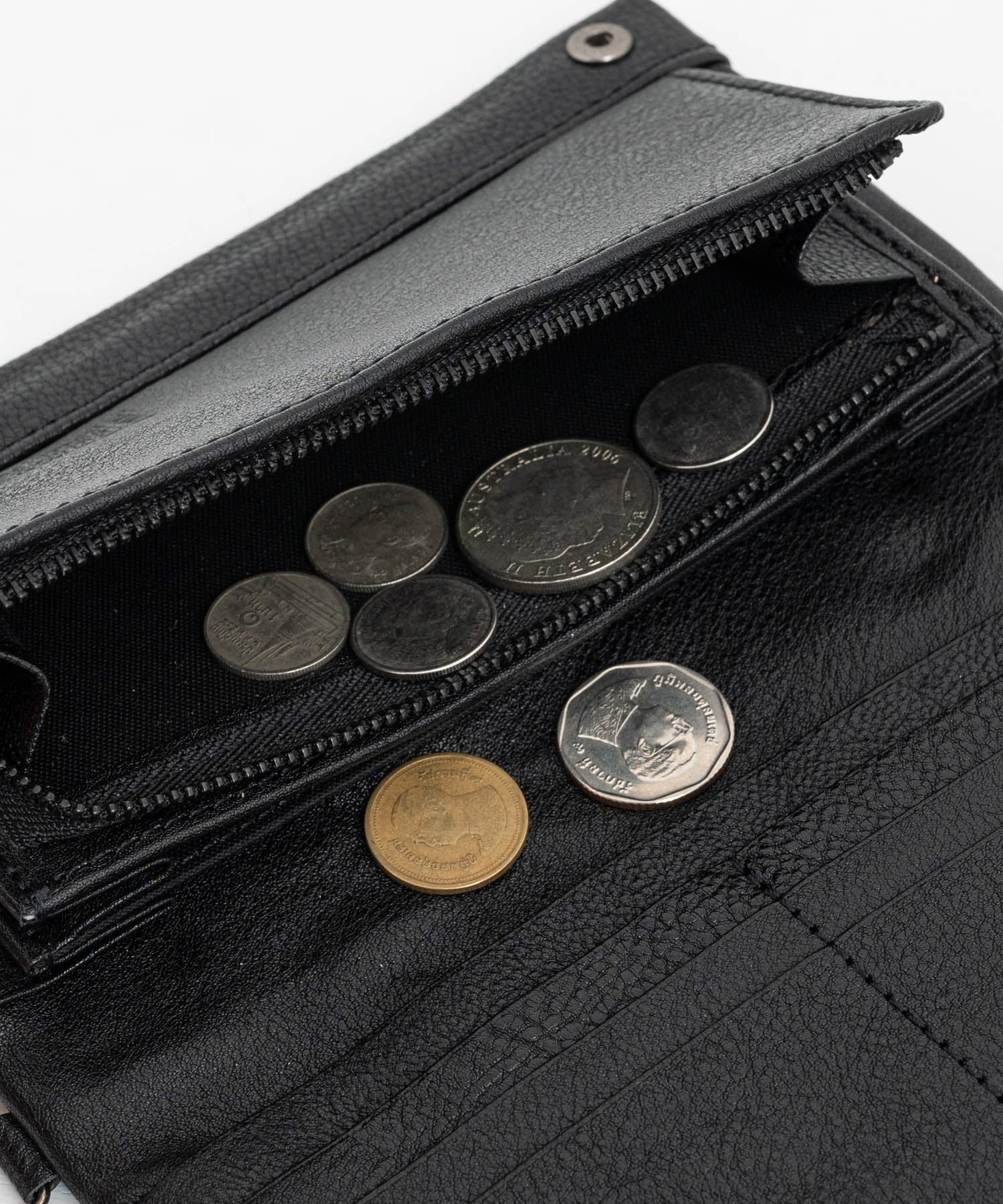 小銭入れは安心のジップ開閉式で、マチがあり大きく開くことができます。