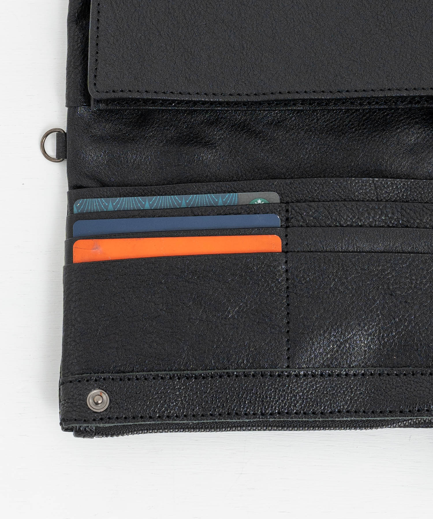 シンプルながら収納力抜群の、牛革を袋縫いにしたロングウォレット。