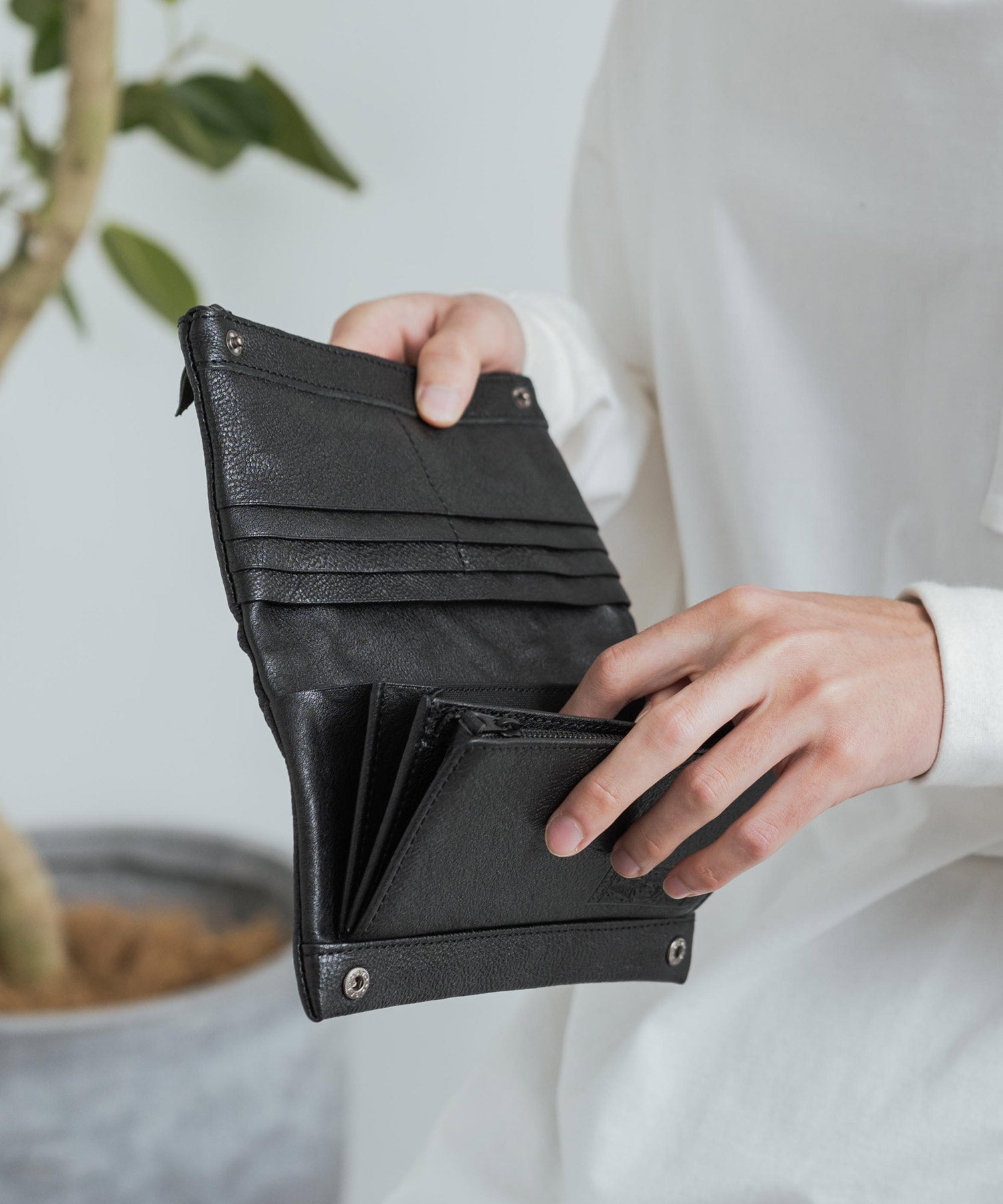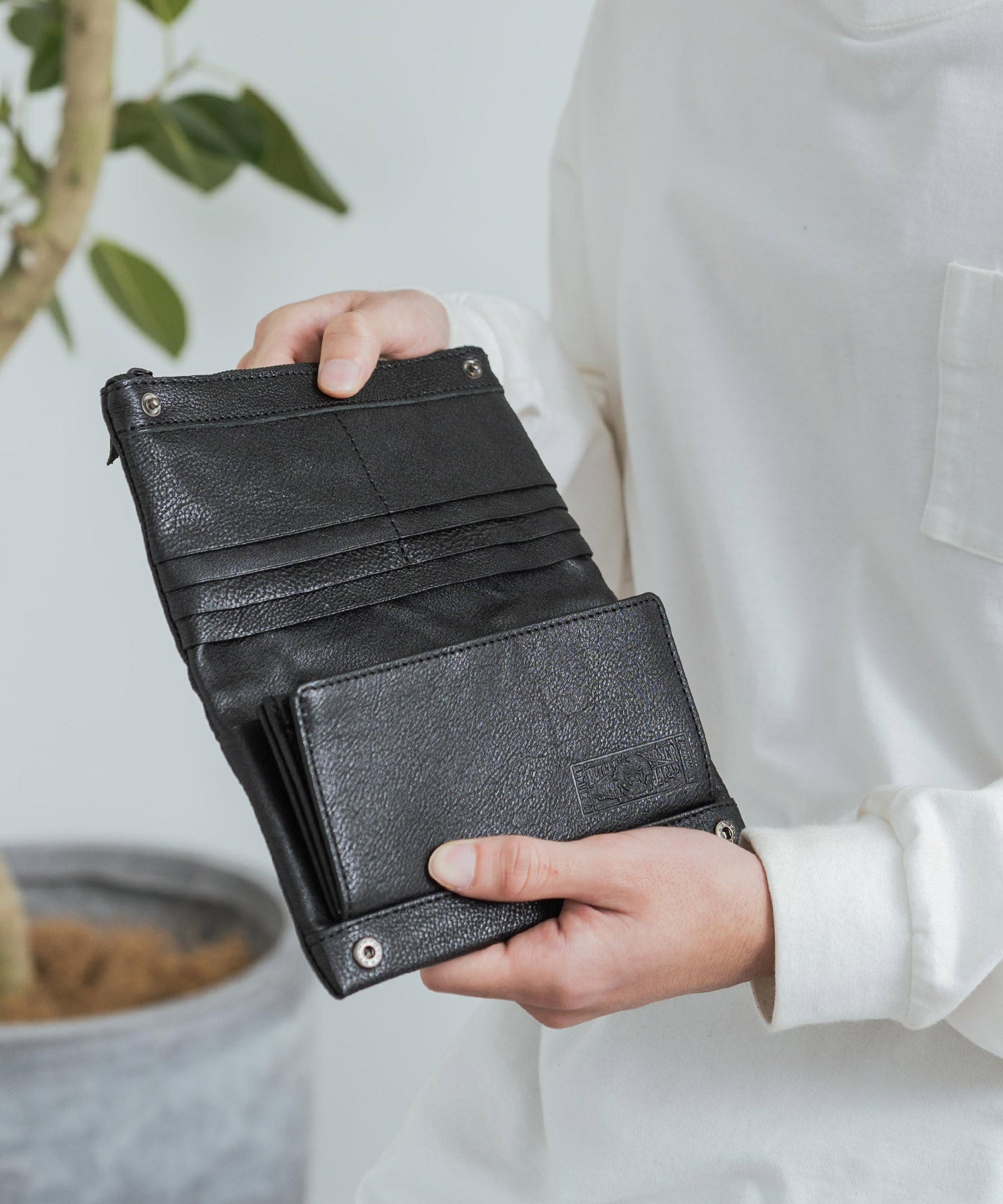 シンプルながら収納力抜群!牛革を袋縫いにした日本製ロングウォレット。