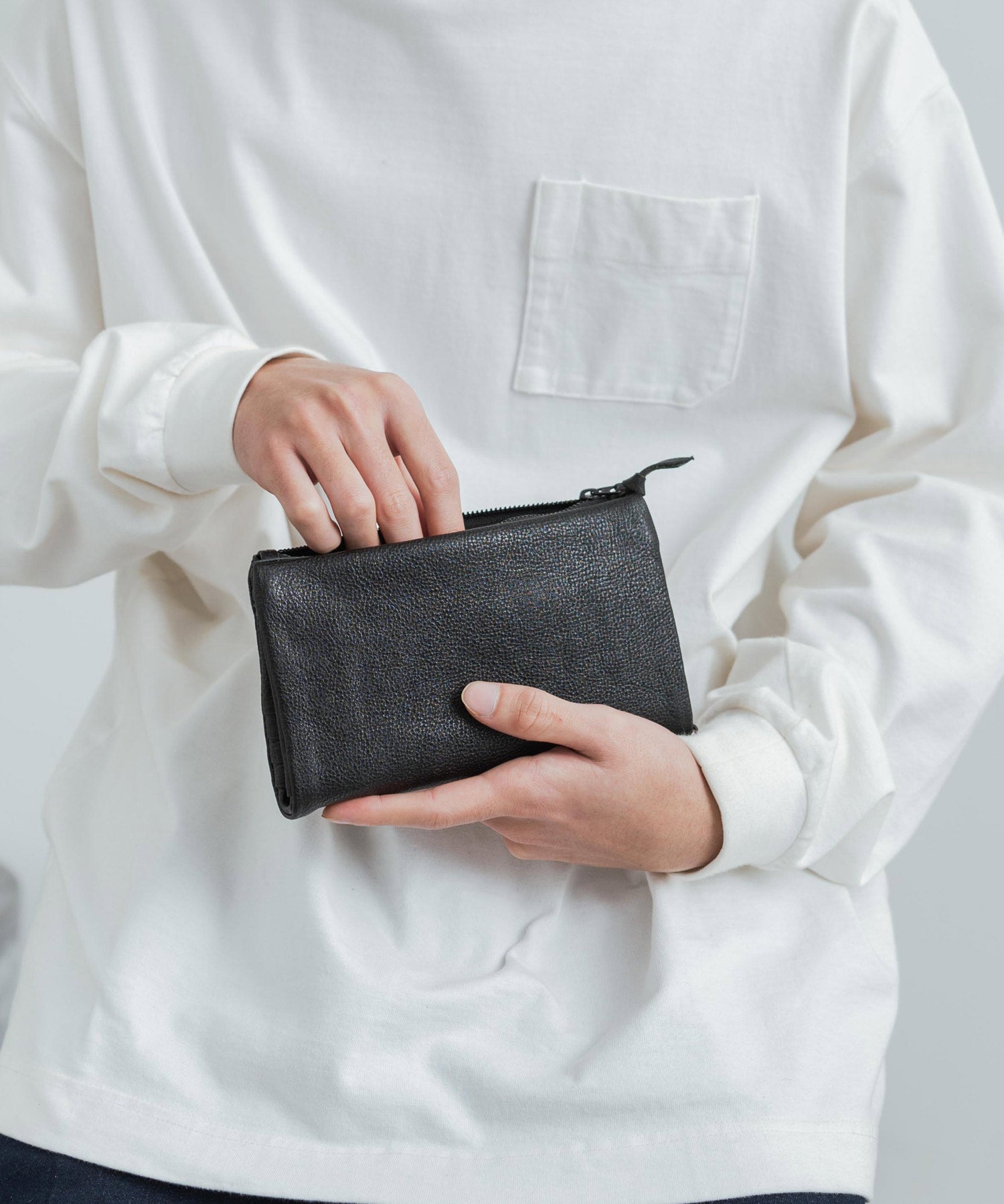 入れるものを変えることで、薄い小型ポーチと言っていいほどの使い方にも◎