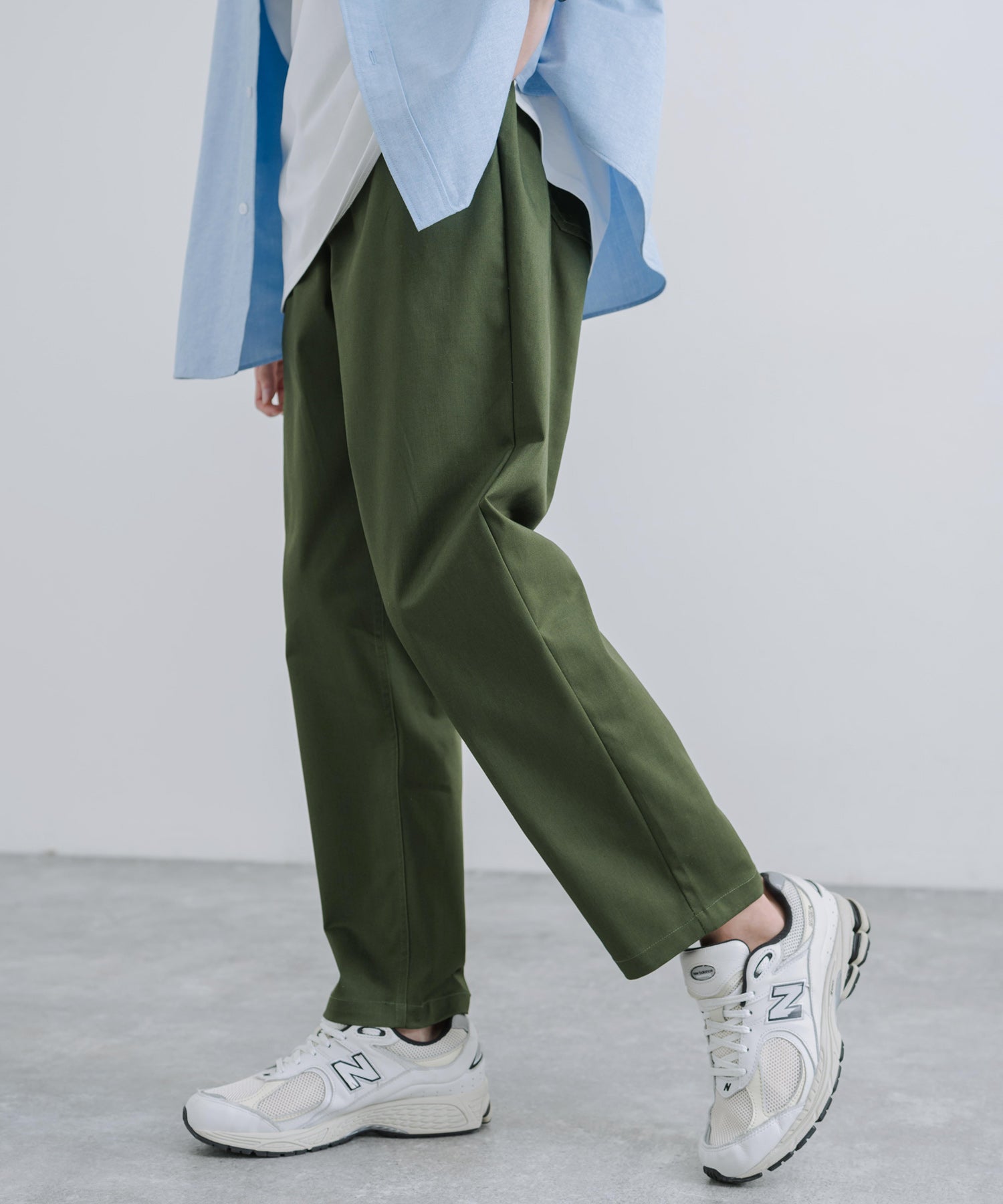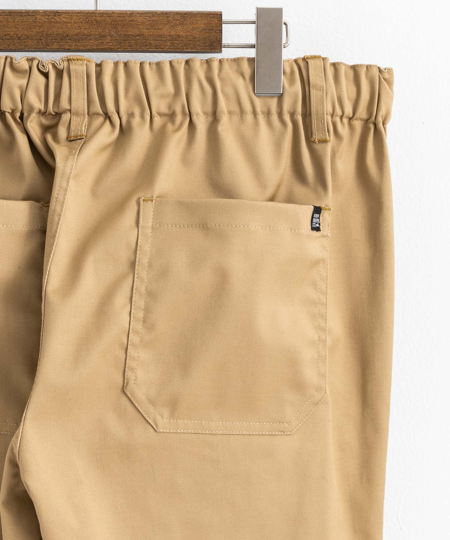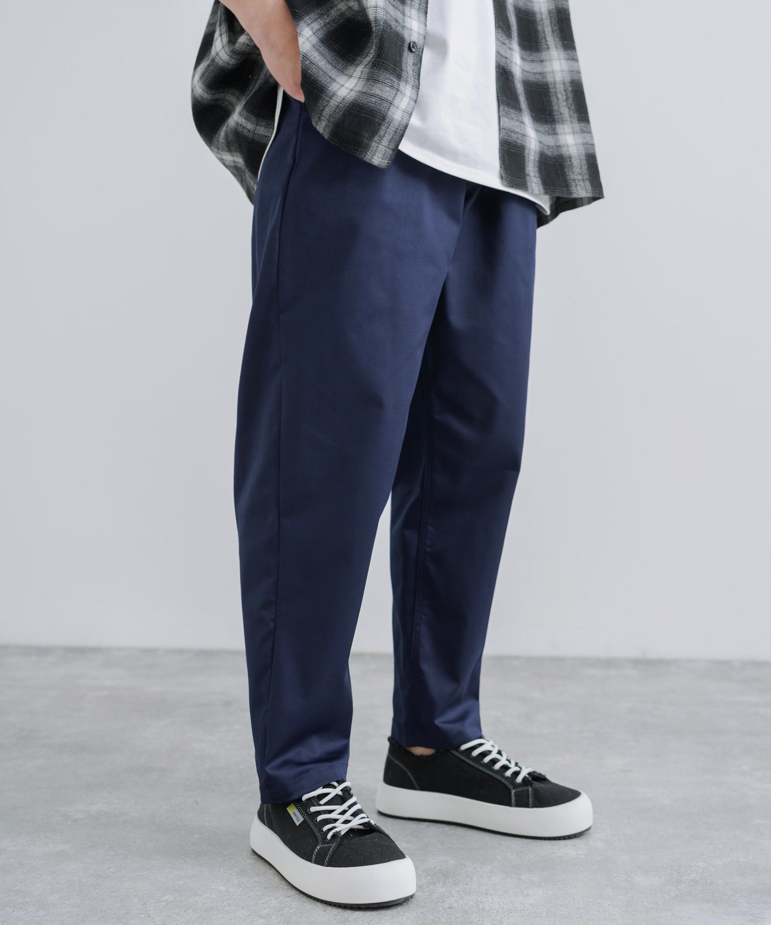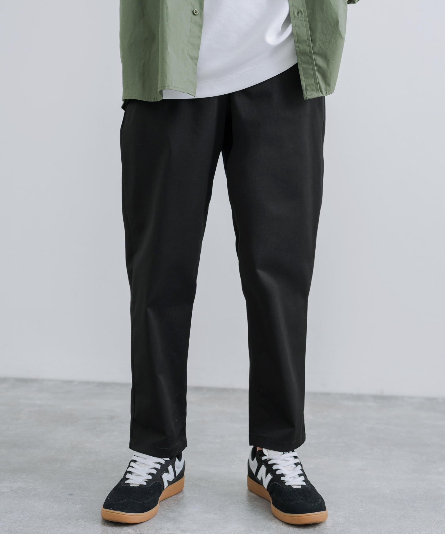 ストレッチツイルを使用したリラックステーパードシルエットイージーパンツ。