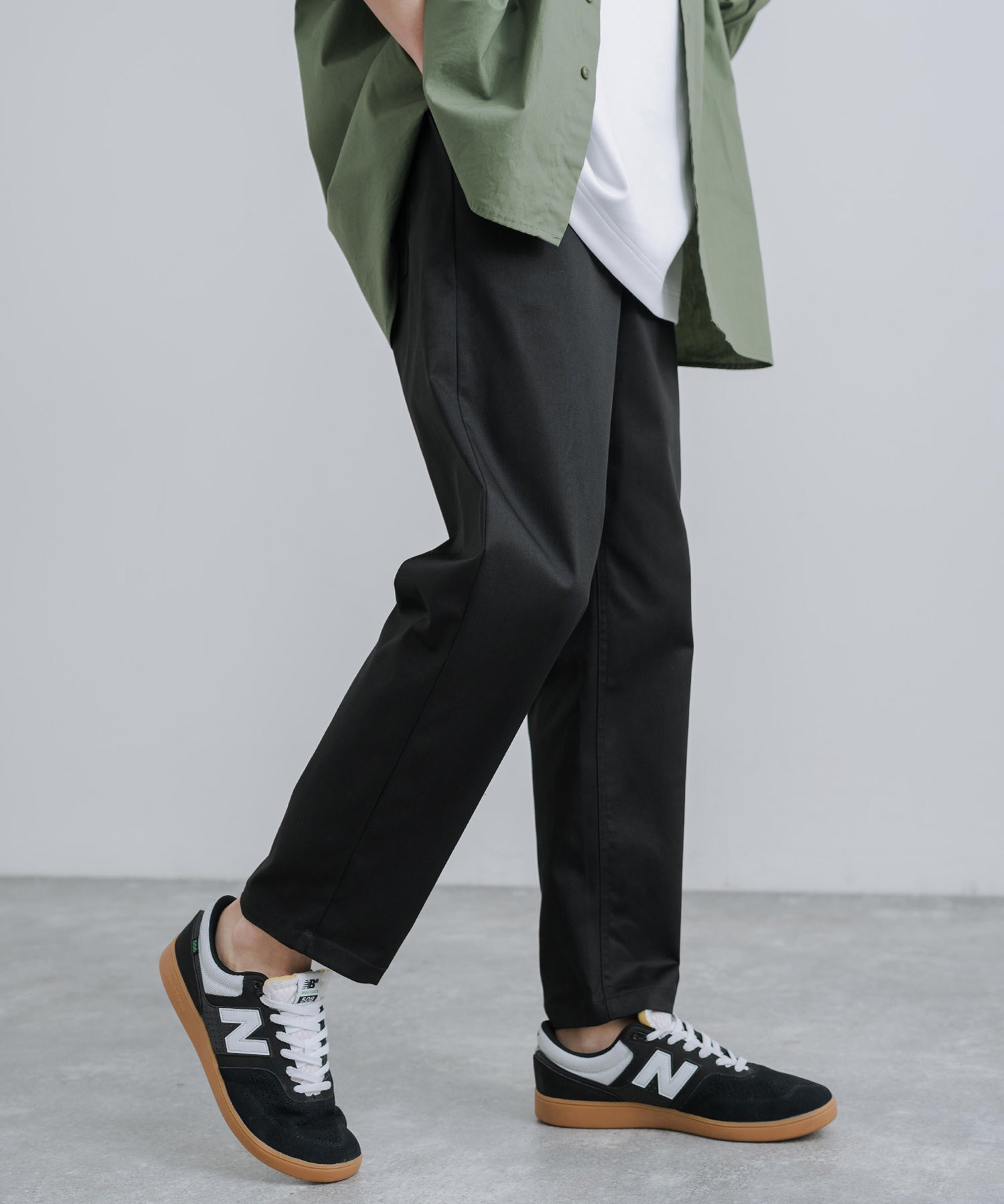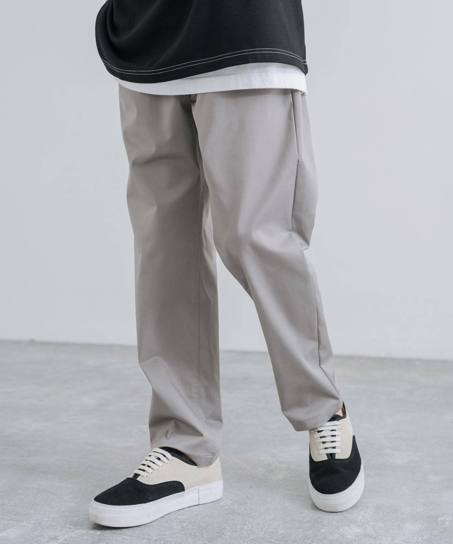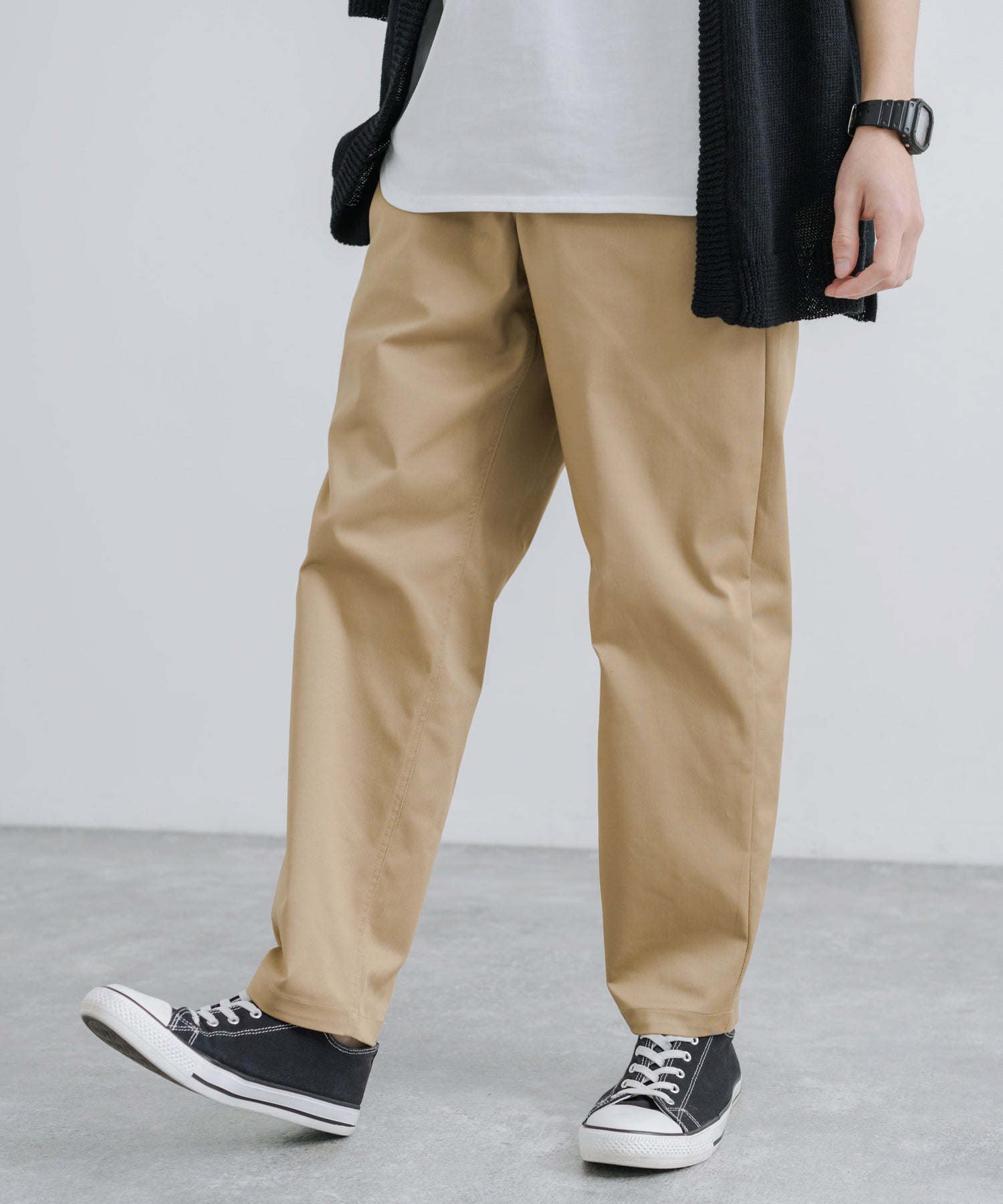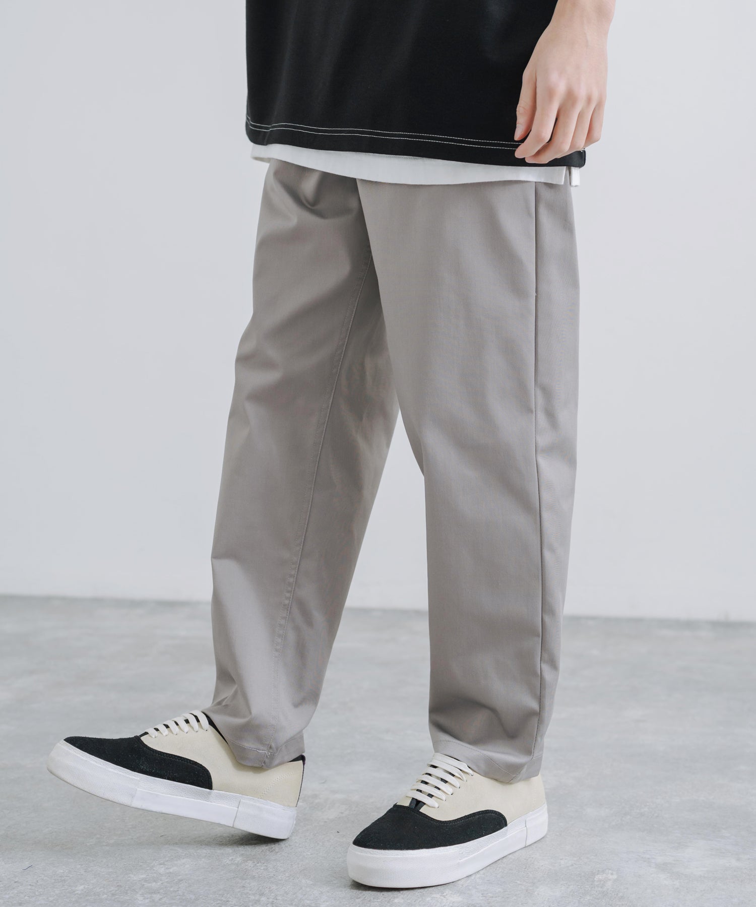 ストレッチツイルを使用したリラックステーパードシルエットイージーパンツ。