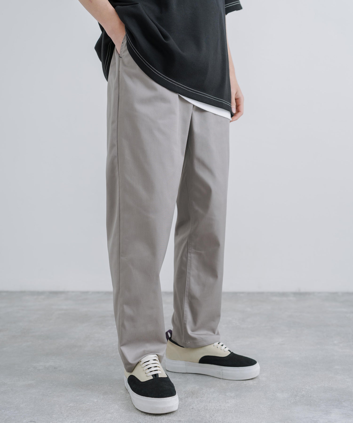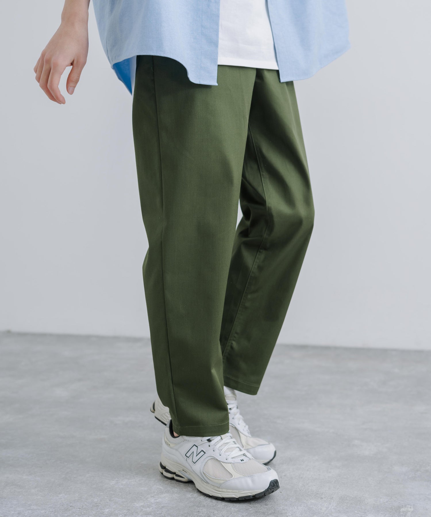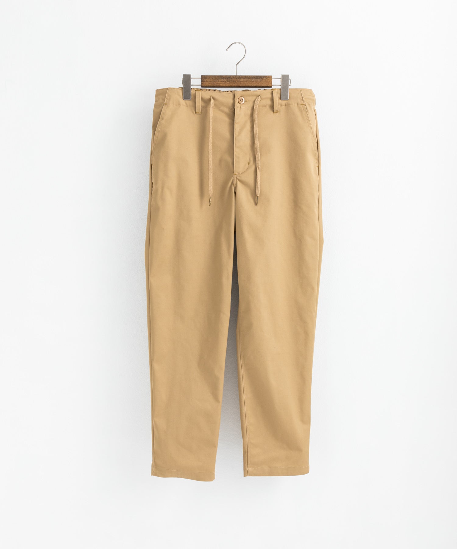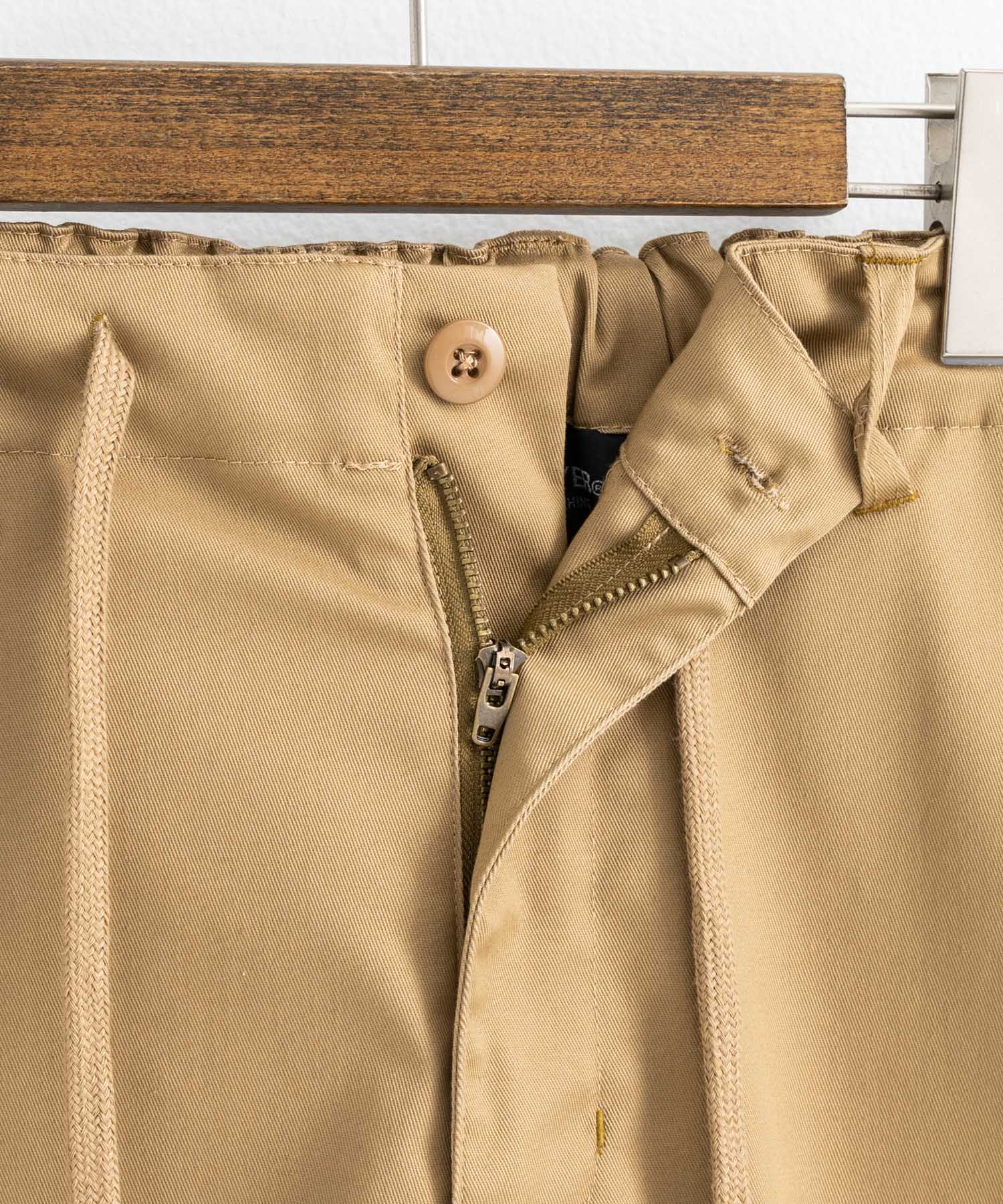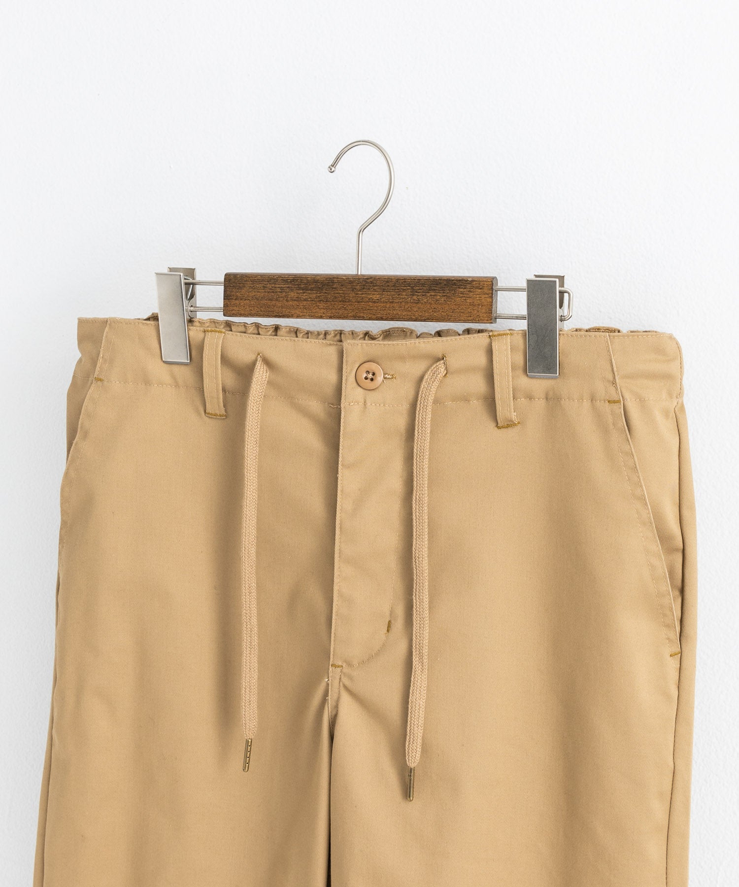 ストレッチツイルを使用したリラックステーパードシルエットイージーパンツ。
