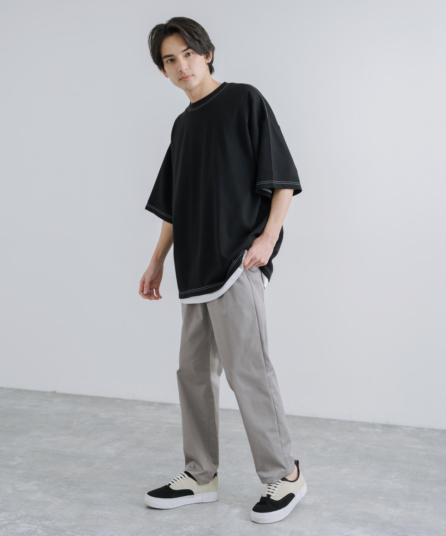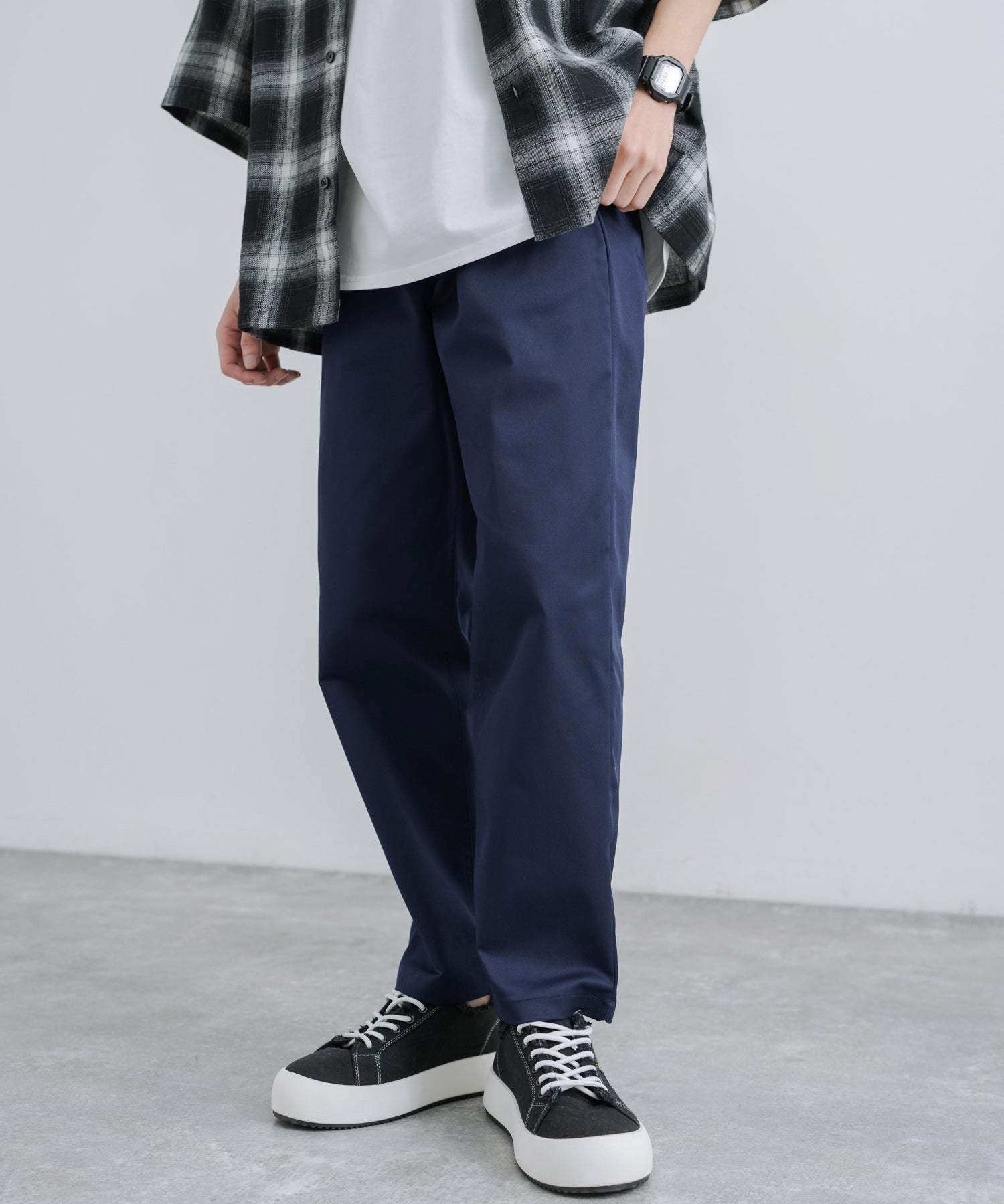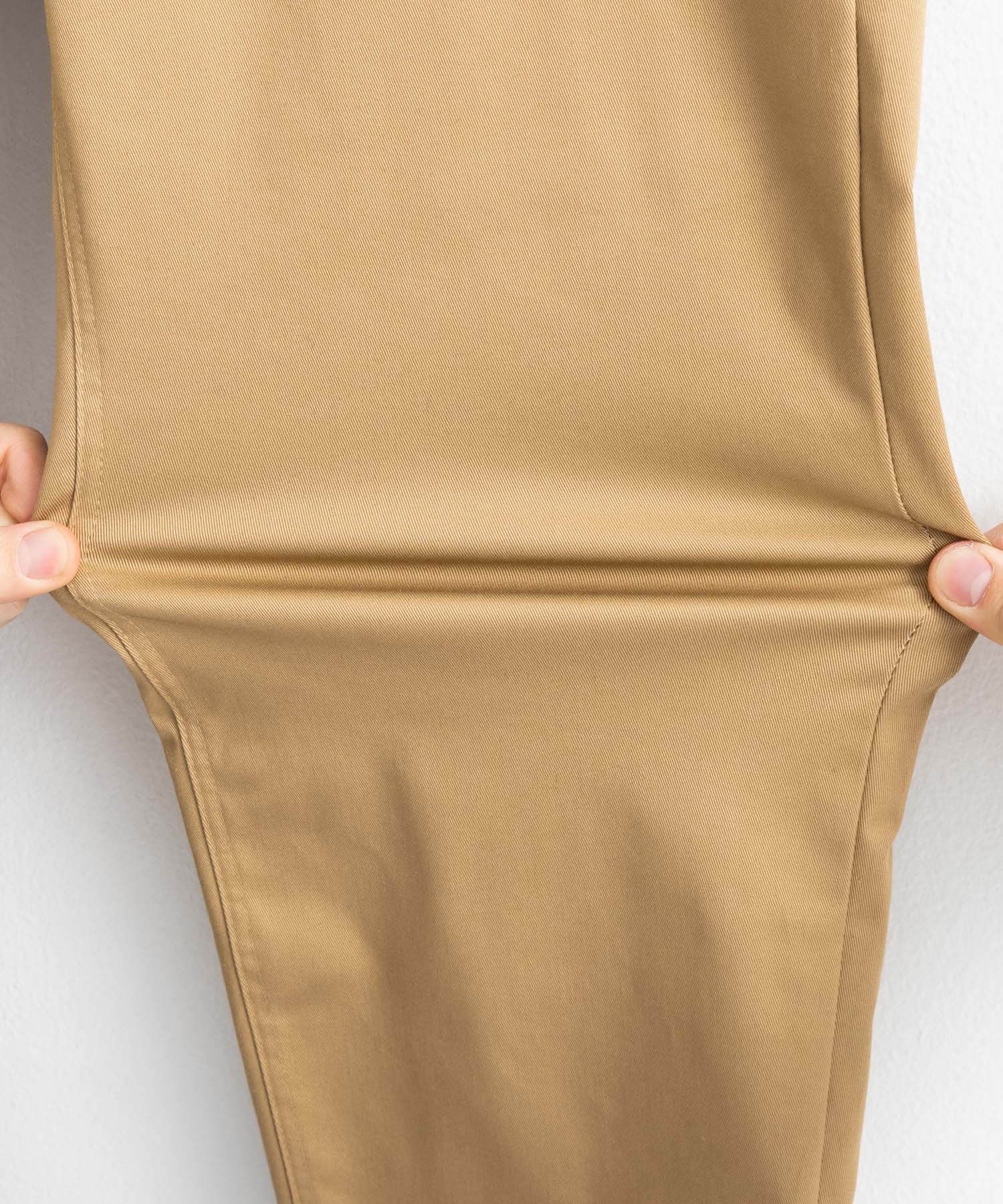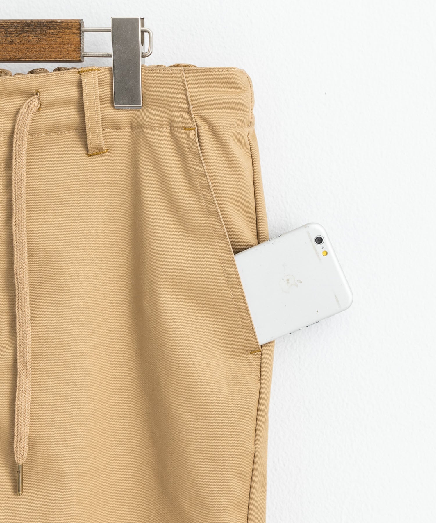 ストレッチツイルを使用したリラックステーパードシルエットイージーパンツ。