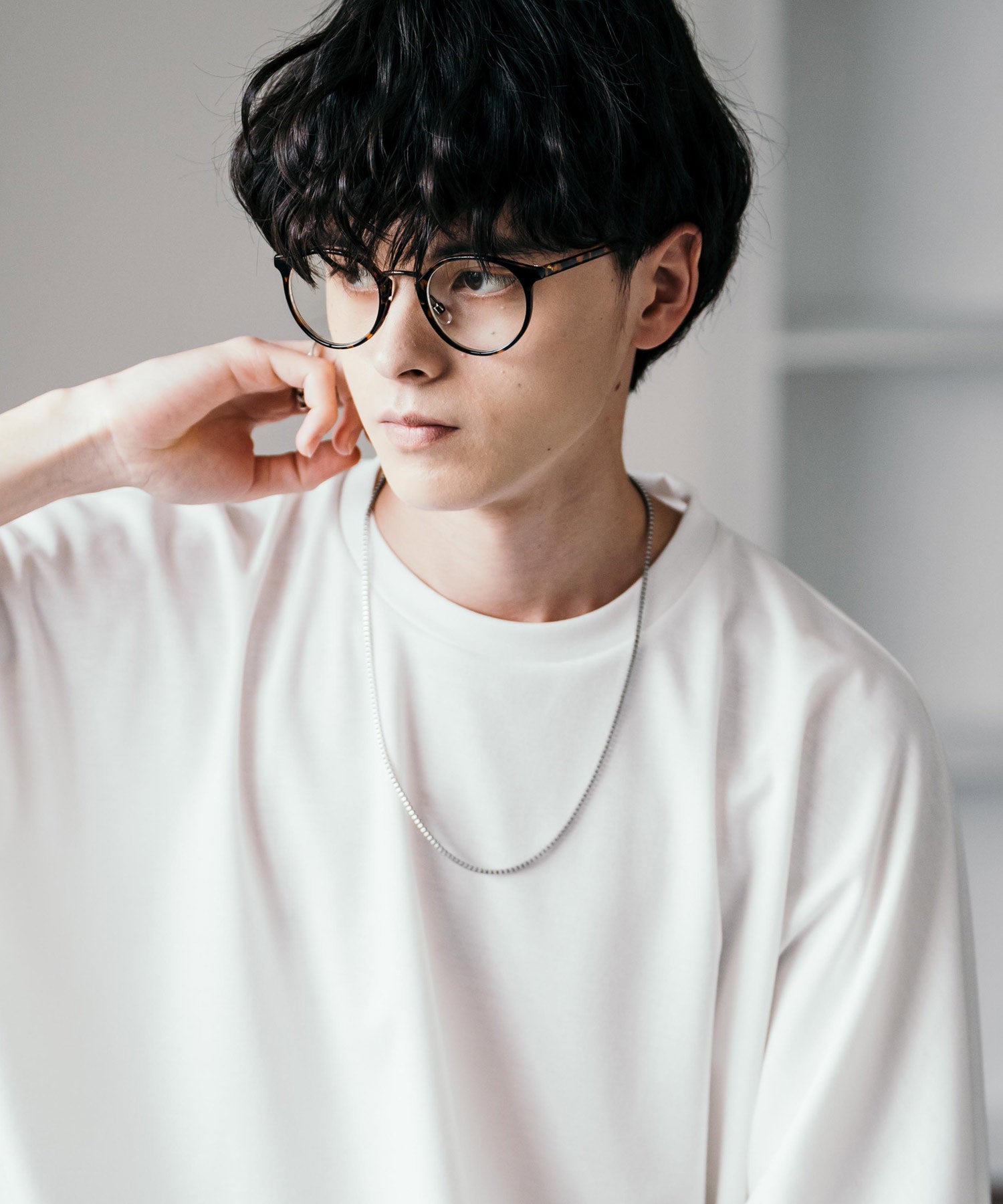 丸みを帯びた逆三角のボストン型で、主張しすぎない厚みのフレーム。